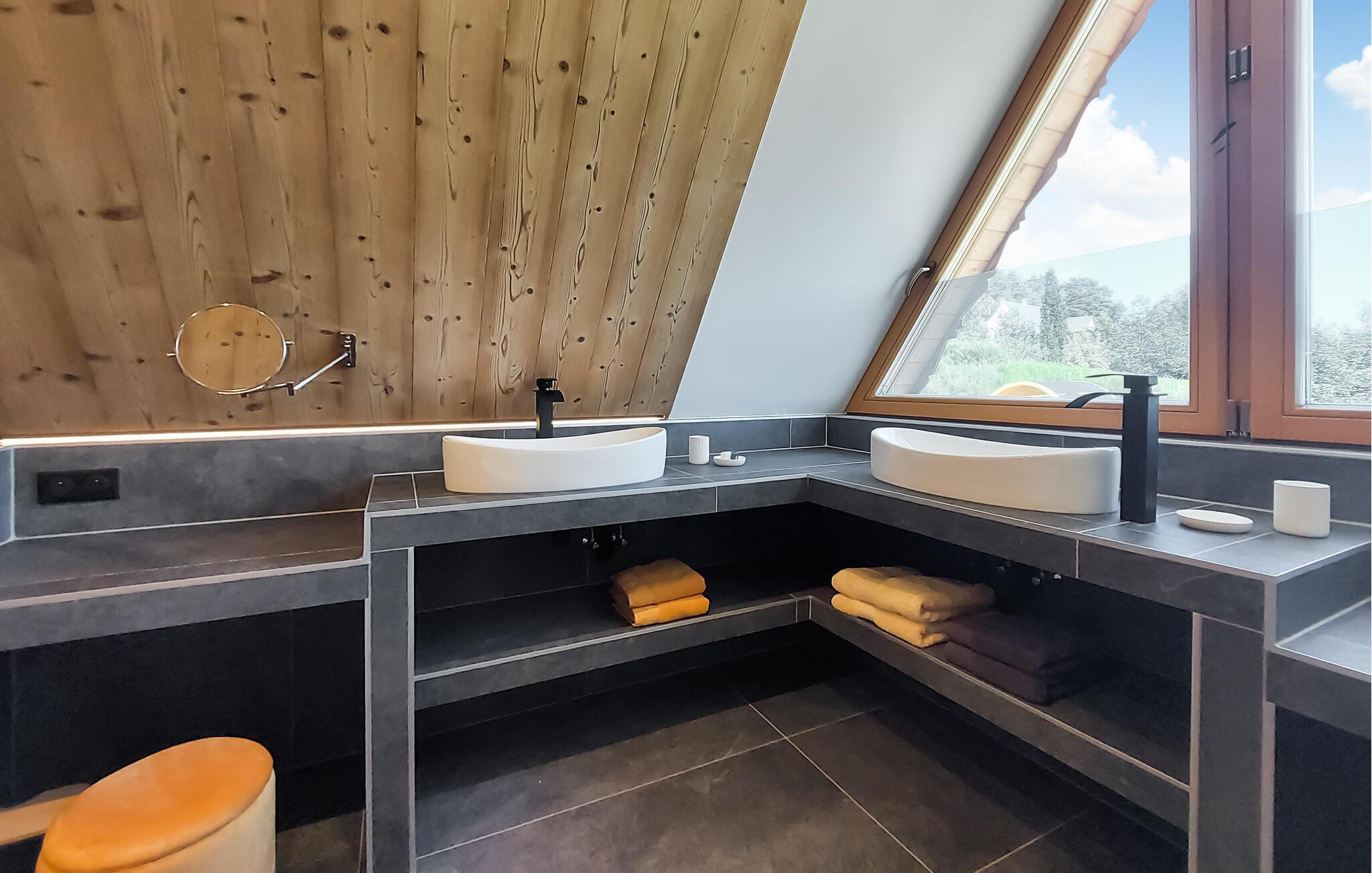In Labaroche, im Herzen des Regionalen Naturparks Ballons des Vosges, begrüßt Sie dieses Chalet, das nach einer traditionellen Bauweise errichtet wurde und die Natur mit modernem Komfort vereint. Genießen Sie entspannte Tage mit der ganzen Familie im gemütlichen Inneren des Chalets oder in der herrlichen Außensauna. Entspannen Sie auch auf der großzügigen Südterrasse, die Ihnen ganztägig Sonnenschein bietet. Atmen Sie die frische Bergluft ein und lassen Sie den Alltagsstress hinter sich.