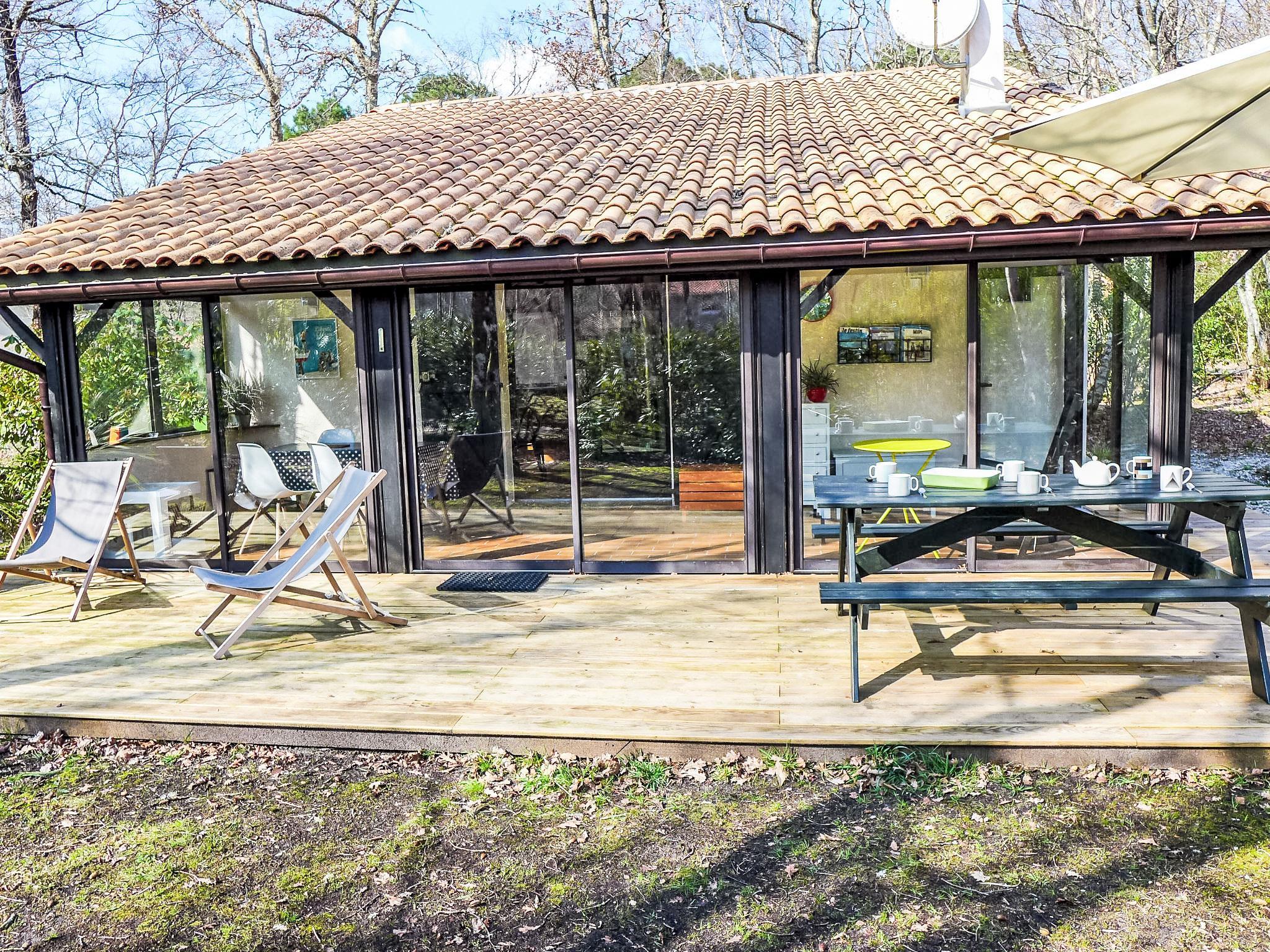 Lacanau-Médoc 11 km from Lacanau-Océan: Single-family house "Marina de Talaris". In the hamlet Marina de Talaris 3 km from the centre of Lacanau-Médoc, 900 m from the lake. For shared use: swimming pool (seasonal availability: 15.Jun. - 15.Sep.). Tennis (01.Jul. - 31.Aug.). Private: natural state property 1'000 m2. Table tennis, parking on the premises. Shop 3 km, supermarket 3 km, restaurant 3 km, bus stop "Marina Talaris" 1.3 km, sandy beach "Lacanau Océan" 11 km, bathing lake "Lac de Lacanau" 2 km. Golf course (18 hole) 8 km, surf school 9 km, tennis 9 km, riding stable 650 m. Nearby attractions: Dune du Pilat 90 m, Bordeaux 60 m, Saint Emilion 98 m, Cap Ferret 48 m. Well-known lakes can easily be reached: Moutchic 4 km, Maubuisson 20 km. Hiking paths: Vélodyssée 10 km. The keys‘ handover takes place by the agency Interhome in Lacanau, 9 km.