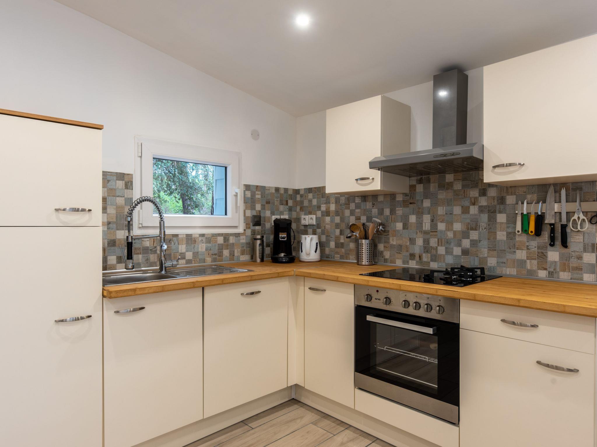 2-room cottage 40 m2. Fully renovated, comfortable and modern furnishings: living/dining room with 1 double sofabed (140 cm, length 190 cm), dining table. Exit to the terrace. 1 open room with 1 bed (160 cm, length 190 cm). Exit to the terrace. Open kitchen (4 hot plates, oven, dishwasher, kettle, electric coffee machine, Capsules for coffee machine (Senseo) extra). Shower/WC. Underfloor heating. Terrace 10 m2, large garden. Terrace furniture, electric barbecue (portable), deck chairs (2). Partial view of the lake. Facilities: washing machine, children's high chair, baby cot, hair dryer. Internet (WiFi, free). Parking (1 car). Please note: non-smoking house. Smoke alarm, fire extinguisher. Offer by a private individual according to Art. 155, IV of CGI.
