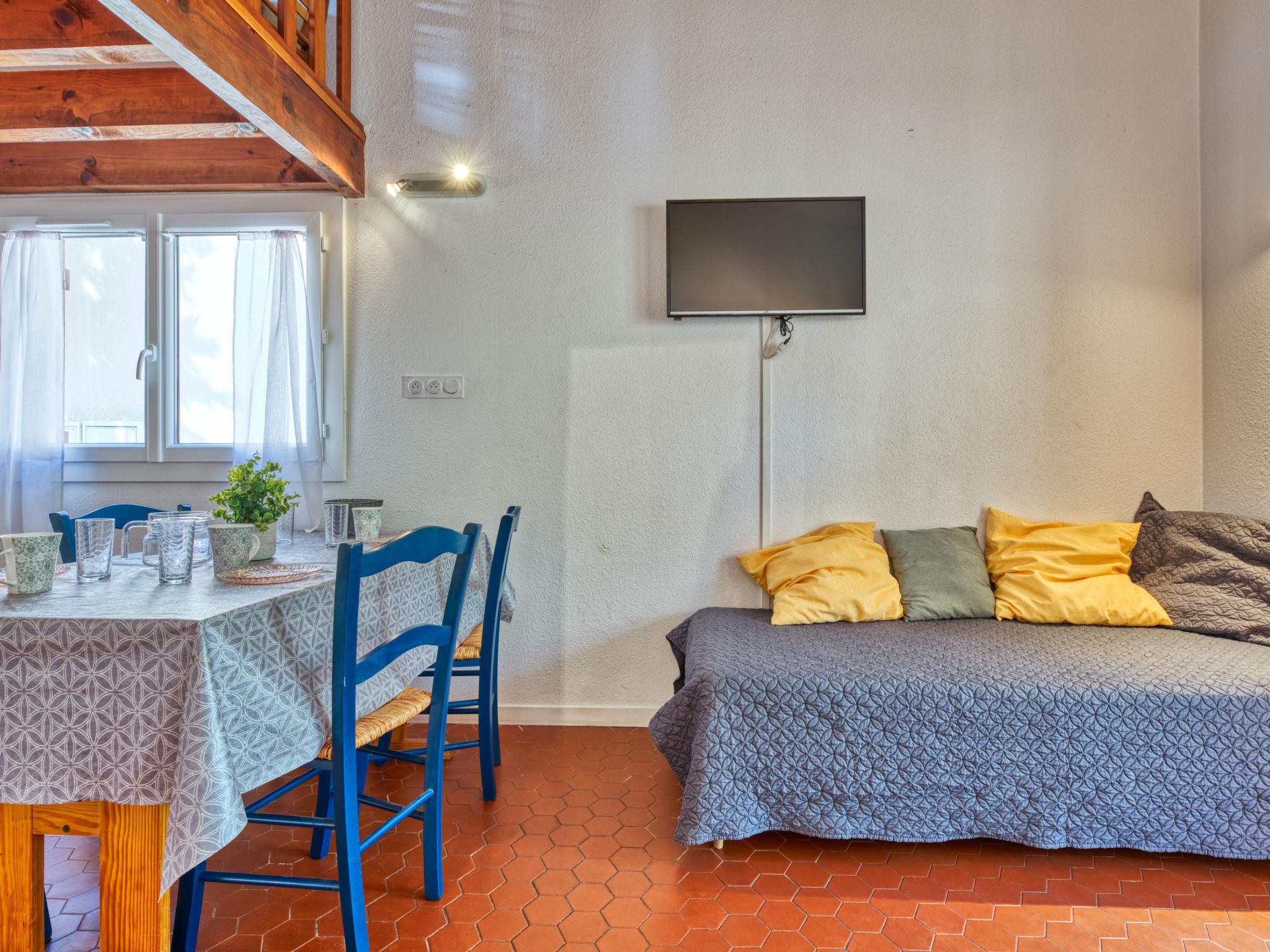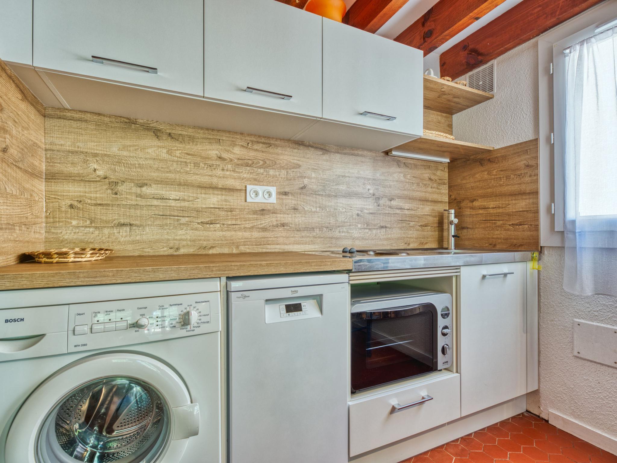 1-room terraced house 40 m2 on 2 levels. Living/dining room with 2 beds (90 cm, length 190 cm), TV. Open kitchen (2 hot plates, oven, dishwasher, toaster, kettle, microwave, electric coffee machine). Shower/WC. Electric heating. Upper floor: gallery with 1 french bed (2 x 80 cm, length 200 cm). Terrace, south-east facing position, patio. Terrace furniture, deck chairs (2). Facilities: washing machine. Internet (WiFi, extra). Parking. Please note: non-smokers only. Smoke alarm. Instead of an enclosed bedroom, some sleeping areas are located in an open-plan area (gallery, alcove, etc.).