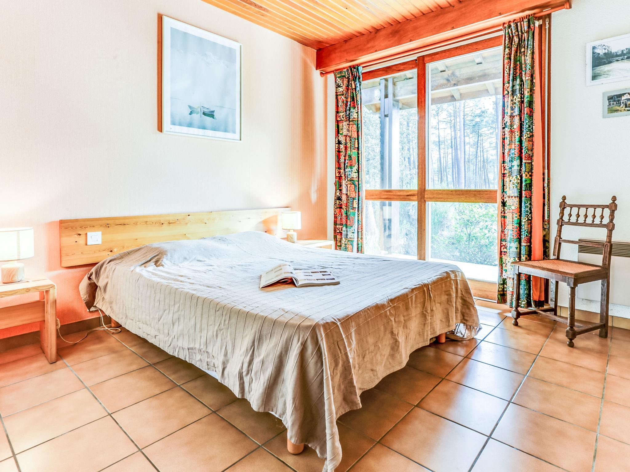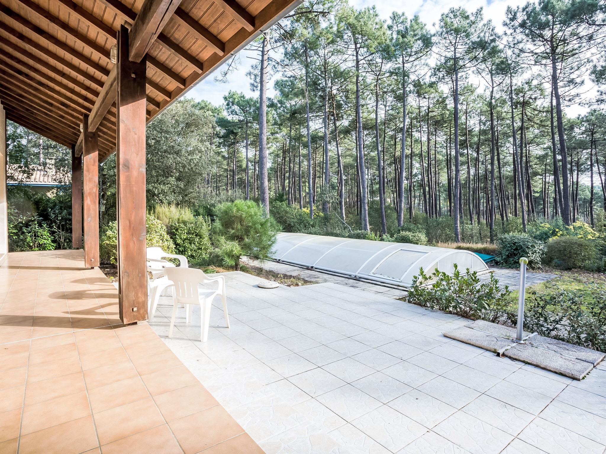 Single-family house "Orée des Greens". Outside the resort, 3.5 km from the centre, in a quiet position in the residential district, 4 km from the sea, 3 km from the lake, 4 km from the beach. Private: natural state property 1'000 m2, swimming pool, indoor pool (4 x 8 m, depth 50 - 190 cm, seasonal availability: 01.Jun. - 30.Sep.). Parking on the premises. Shop 3.5 km, supermarket 4 km, restaurant 3.5 km, bicycle rental 3.5 km, bus stop "Le Huga" 1 km. Golf course (18 hole) 1.2 km, surf school 4 km, tennis 2.9 km, minigolf 3.5 km, cycle lane 1 km. Nearby attractions: Parcours Aventure 4 km. Well-known lakes can easily be reached: Lac de Lacanau 3 km. Groups of teenagers on request only.
