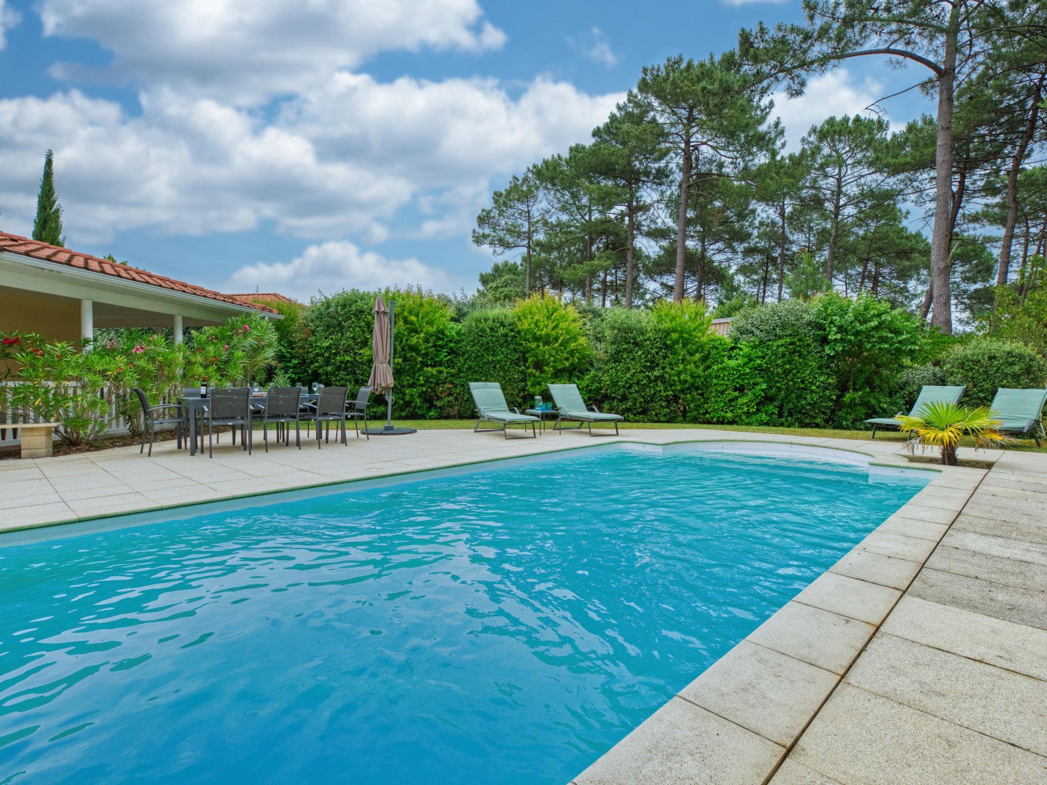 Single-family house "Eden Parc". Outside the resort, 2.5 km from the centre, 3 km from the lake. Private: garden 300 m2 (fenced), swimming pool (8 x 4 m, seasonal availability: 01.Jun. - 30.Sep.) with alarm system. Parking on the premises. Shop 2.5 km, grocery 2.5 km, supermarket 4 km, restaurant 250 m, bus stop "Le Huga" 3.2 km, sandy beach 2.5 km. Golf course (18 hole) 500 m, tennis, indoor tennis centre 750 m, riding stable 15 km. Nearby attractions: Parcours Aventure 1 km, Dune du Pilat 60 km, Bordeaux 60 km, Saint-Emilion 60 km. Well-known lakes can easily be reached: Lac du Moutchic 3 km, Maubuisson 15 km.