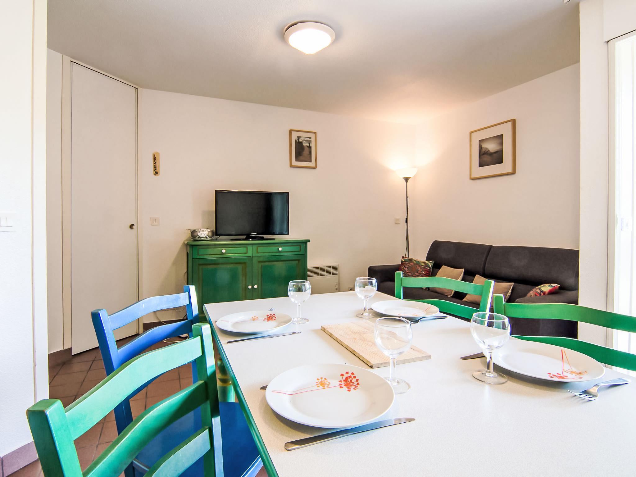2-room apartment 40 m2, on the ground floor. Living/dining room with 1 double sofabed (140 cm, length 190 cm), TV, flat screen and CD-player. Exit to the terrace. 1 room with 2 beds (90 cm). Kitchenette (mini-oven, oven, dishwasher, 2 ceramic glass hob hotplates, toaster, microwave, electric coffee machine). Bathroom, sep. WC. Electric heating. Terrace 6 m2, roofed. Terrace furniture. Facilities: iron, hair dryer. Internet (WiFi, extra). Please note: non-smokers only. Smoke alarm.