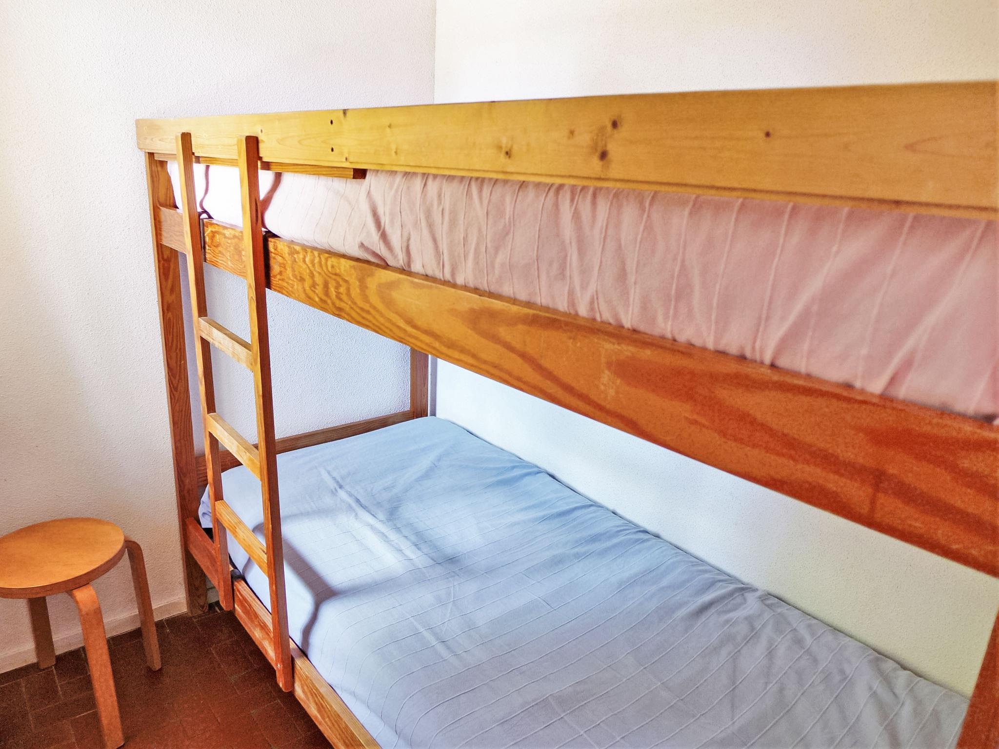 2-room terraced house 32 m2. Living/dining room with TV. Alcove with 1 x 2 bunk beds. 1 room with 1 french bed. Kitchenette (2 hot plates, oven, dishwasher). Shower, sep. WC. No heating option. Terrace, south-east facing position, patio. Terrace furniture. Facilities: washing machine. Internet (WiFi, extra). Parking space n 89. Please note: non-smokers only. Smoke alarm. Instead of an enclosed bedroom, some sleeping areas are located in an open-plan area (gallery, alcove, etc.).