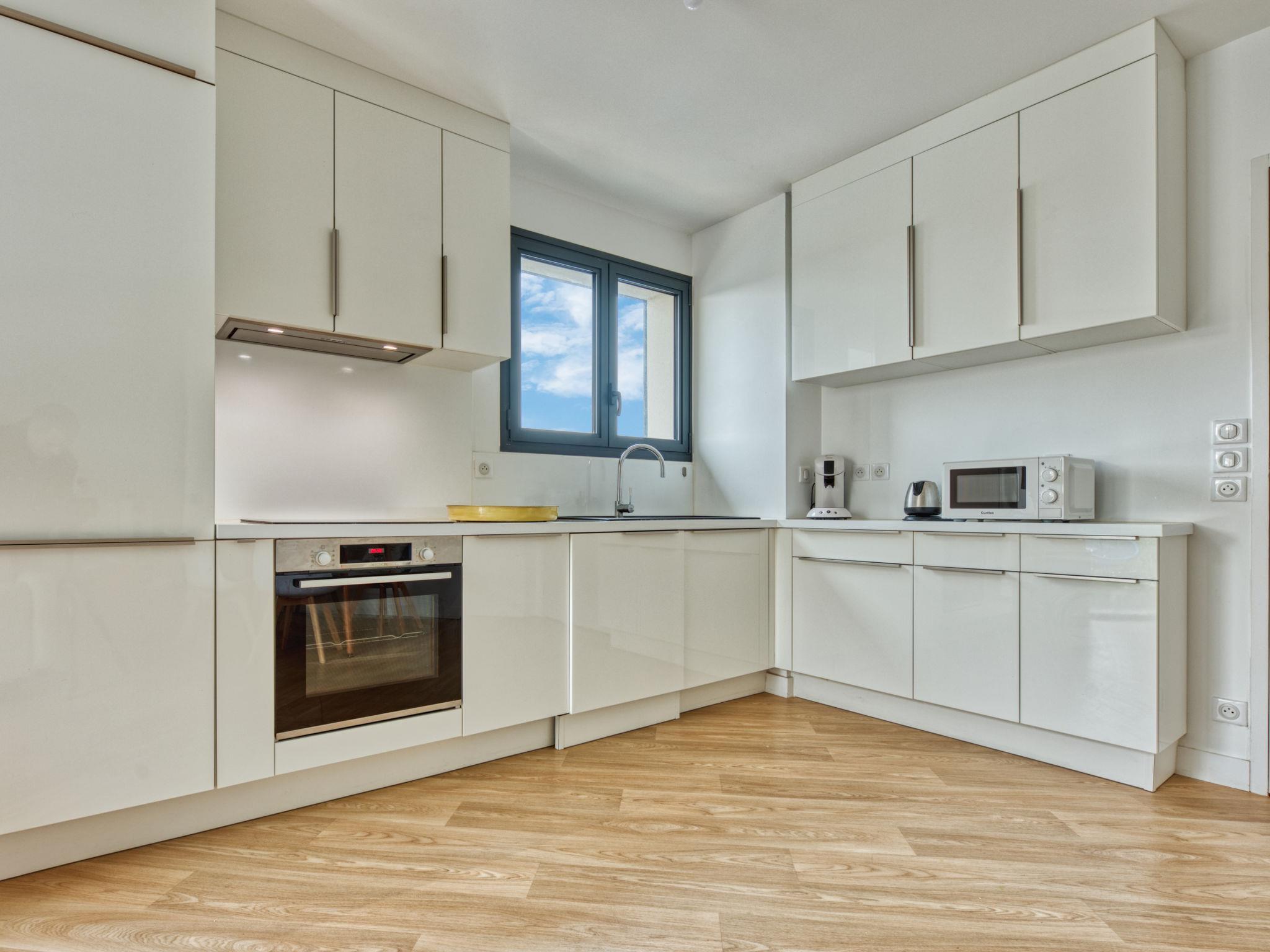 2-room apartment 55 m2 on 3rd floor. Modern furnishings: living/dining room with 1 double sofabed (140 cm, length 190 cm), TV (flat screen). Exit to the balcony. 1 room with 1 french bed (140 cm, length 190 cm). Kitchen (oven, dishwasher, 4 ceramic glass hob hotplates, toaster, kettle, microwave, electric coffee machine) with dining table. Shower/WC, sep. WC. Heating. Balcony 8 m2, south facing position. Balcony furniture, deck chairs. Side view of the ocean. Facilities: washing machine, dryer. Internet (WiFi, free). Parking space n 3B (fenced). Please note: non-smokers only. Offer by a private individual according to Art. 155, IV of CGI.