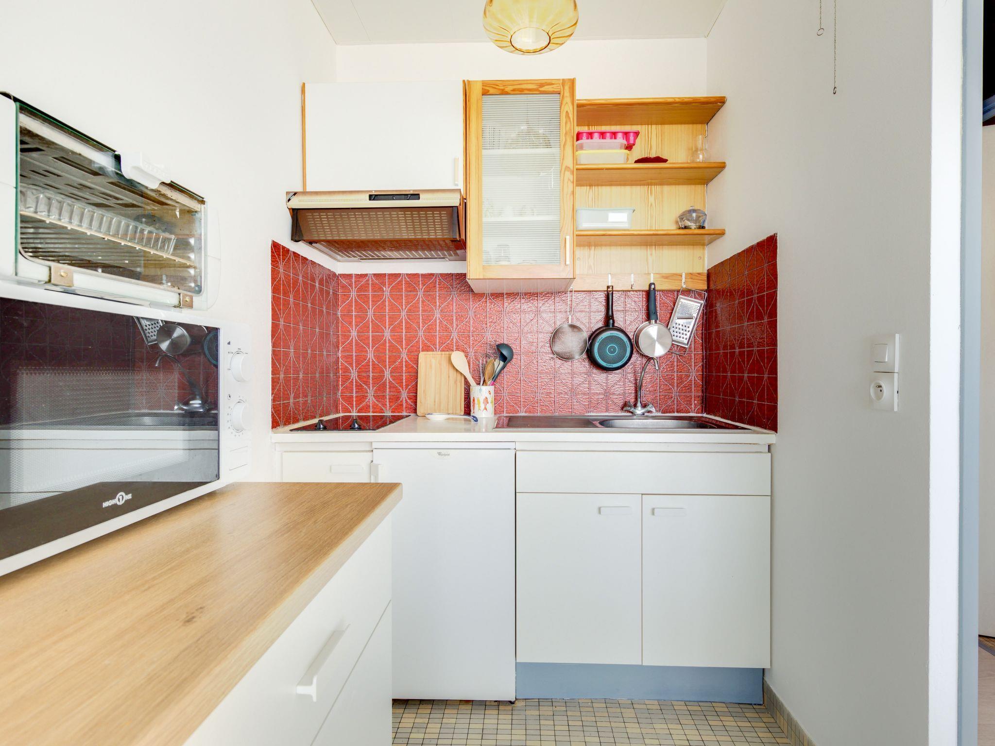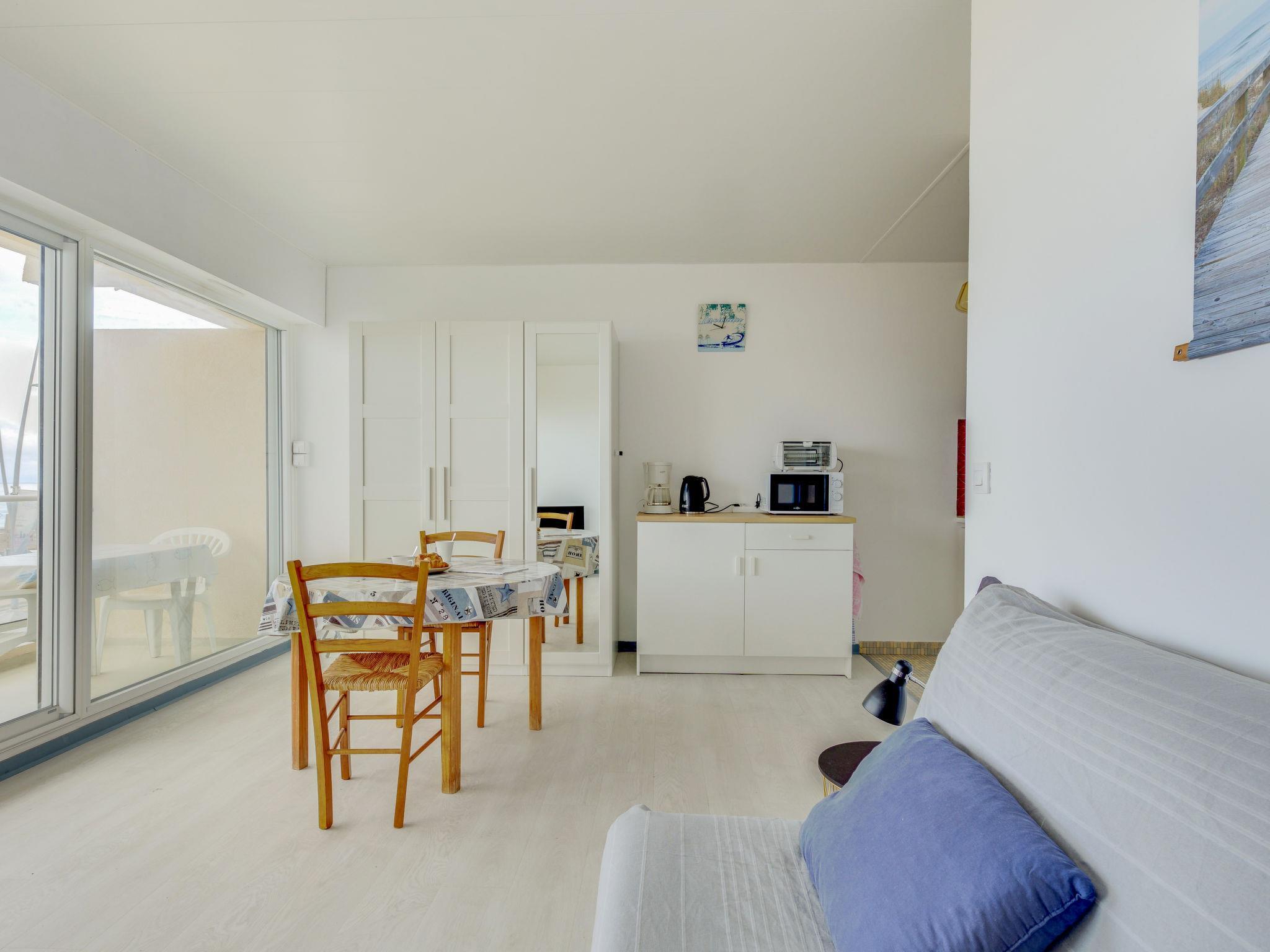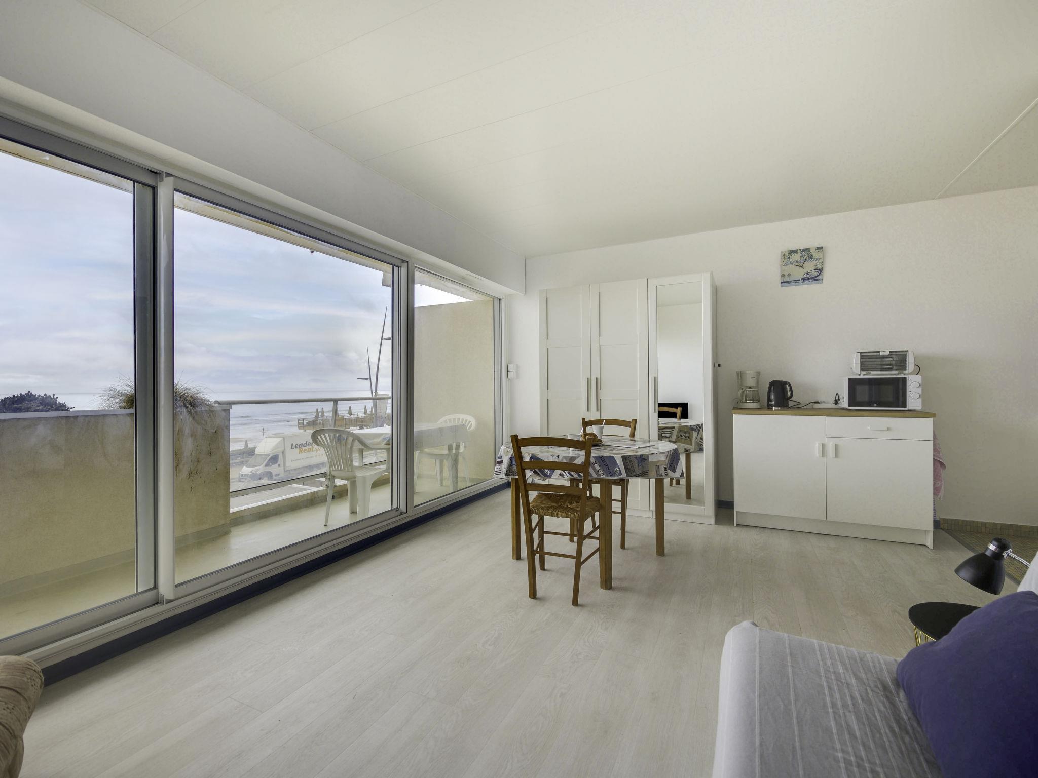 1-room studio 23 m2 on 1st floor. Simple furnishings: living room with 1 double sofabed (140 cm, length 190 cm), TV (flat screen). Exit to the balcony. Open kitchen (mini-oven, 2 ceramic glass hob hotplates, kettle, microwave, electric coffee machine) with dining table. Shower/WC. No heating option. Large balcony 6 m2, west facing position. Balcony furniture. Marvellous view of the ocean. Facilities: Internet (WiFi, extra). Garage space n 78. Please note: non-smokers only. Smoke alarm. Offer by a private individual according to Art. 155, IV of CGI.