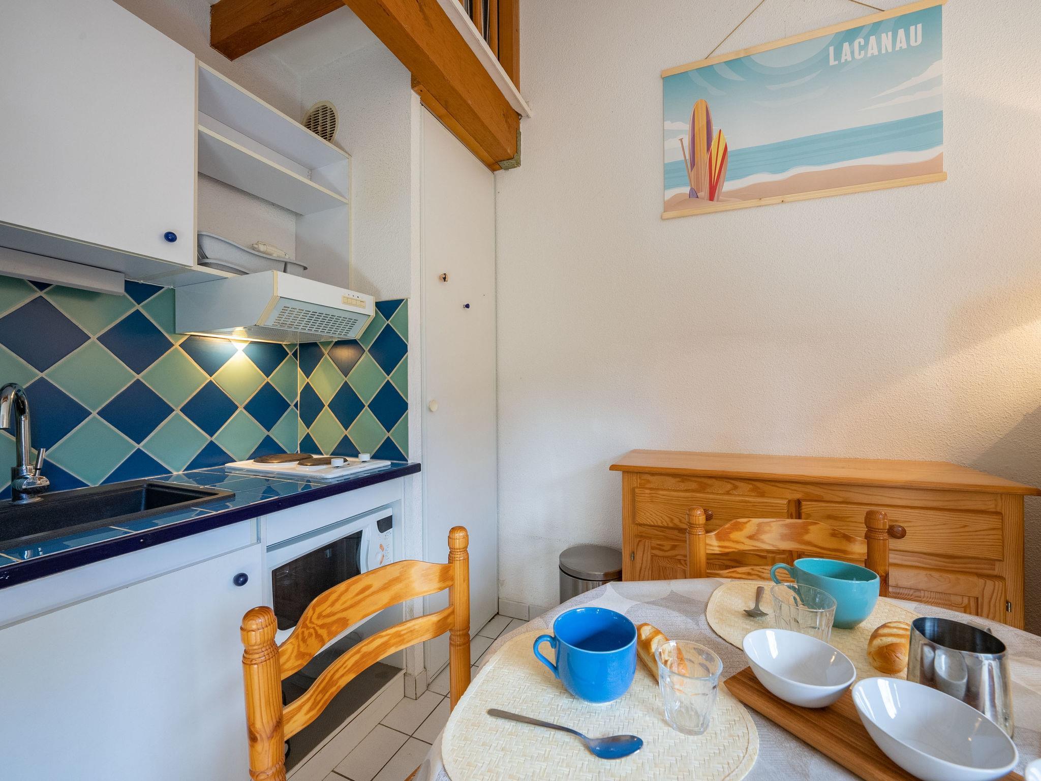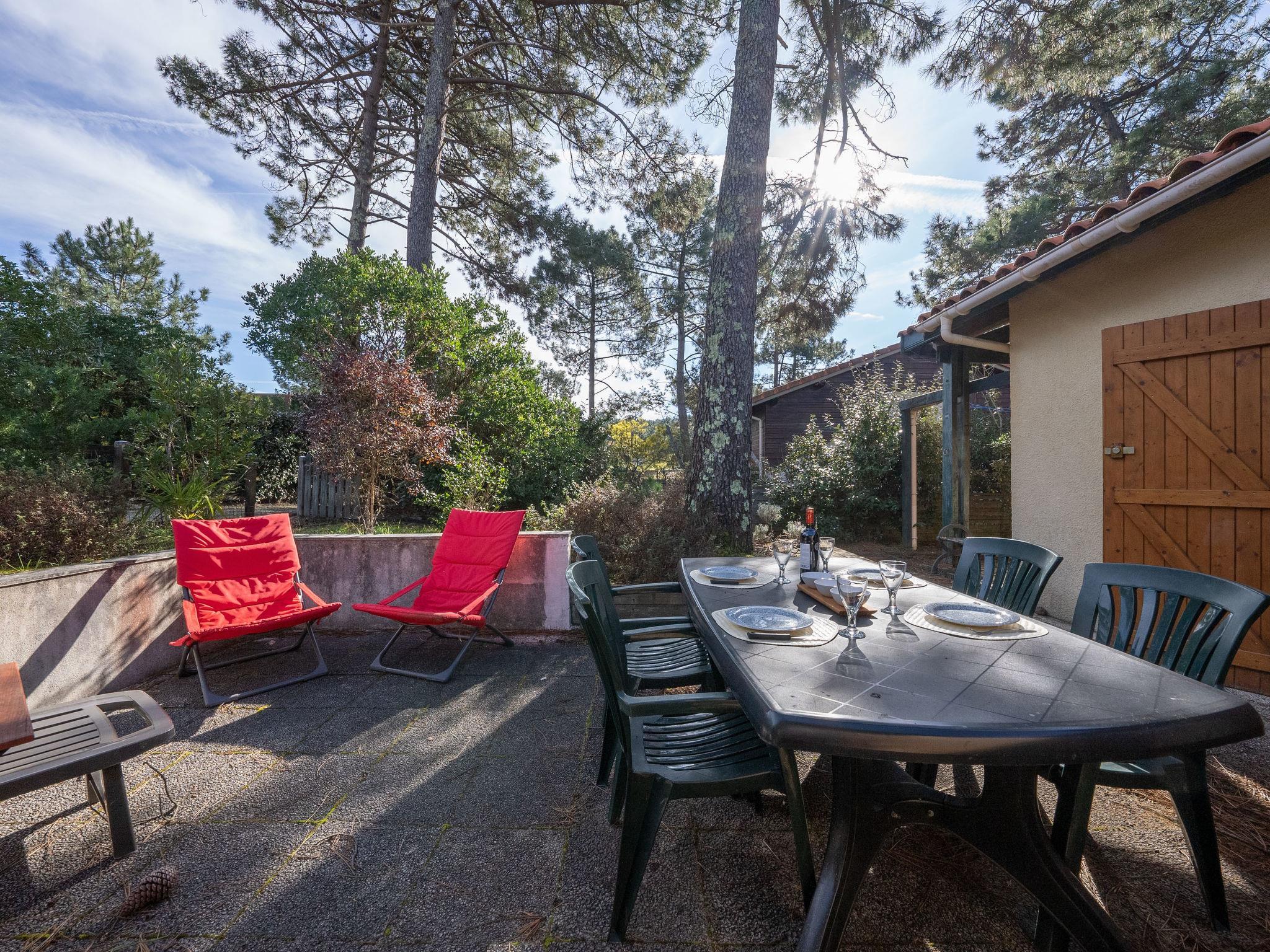 Residence "Jardins de la Pinède". 1.7 km from the centre, 5 km from the lake. For shared use: swimming pool (12 x 6 m, depth 150 cm, seasonal availability: 15.Jun. - 15.Sep.). Parking. Shop 1.7 km, supermarket 1.7 km, restaurant 1.7 km, bus stop "Marie Curie" 1.1 km, sandy beach 1.7 km. Golf course (18 hole) 800 m, tennis 300 m, riding stable 15 km.