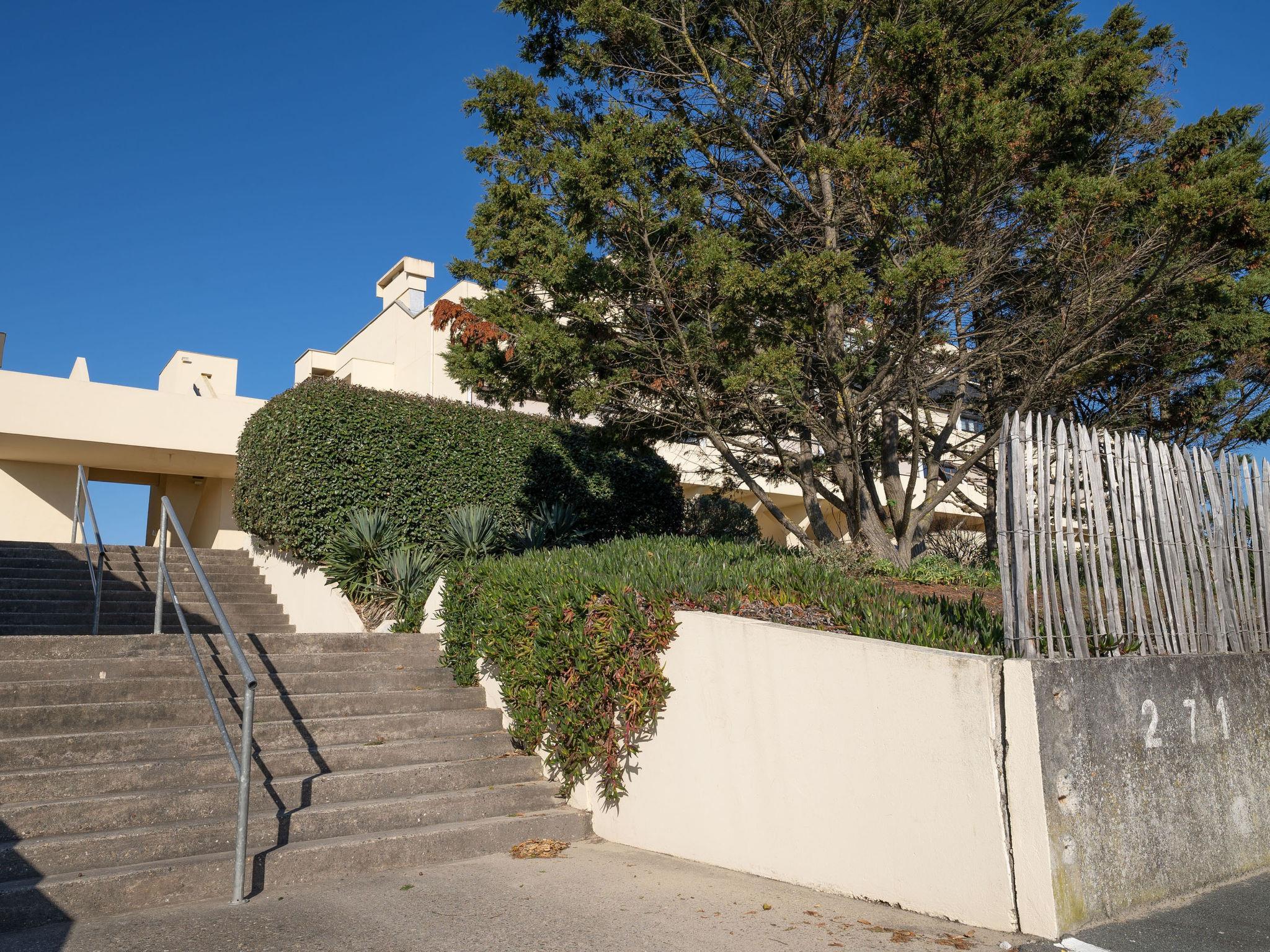 Lacanau-Ocean: Residence "Les Océanides", 4 storeys. 300 m from the centre, 20 m from the sea, 6 km from the lake, 20 m from the beach, direct access to the beach. Shop 300 m, grocery 50 m, supermarket 300 m, restaurant 50 m, bar 200 m, bakery 100 m, pedestrian zone 200 m, bicycle rental 500 m, bus stop "Salle l'Escoure Océan" 700 m, sandy beach "Plage sud" 20 m, bathing lake "Moutchic" 6 km. Golf course (18 hole) 4 km, sailing school 10 km, tennis 2 km, riding stable 15 km. Nearby attractions: Bordeaux 60 km, Dune du Pilat 80 km, Arcachon 80 km, Saint Emilion 80 km, Lacanau Ville 10 km. Well-known lakes can easily be reached: Lac du moutchic 10 km, Lac de Maubuisson 20 km. Hiking paths: Chemin de Saint Jacques de Compostelle 500 m.