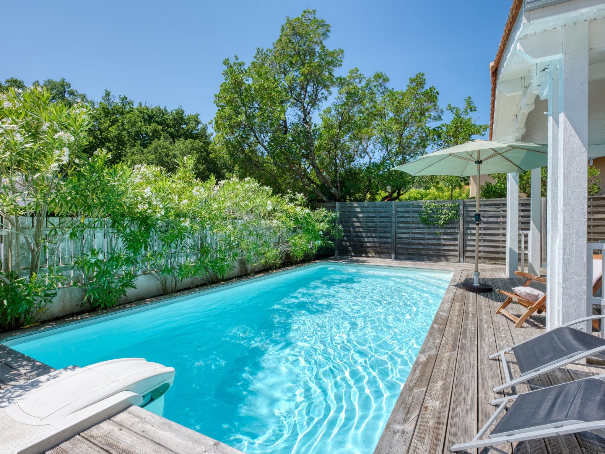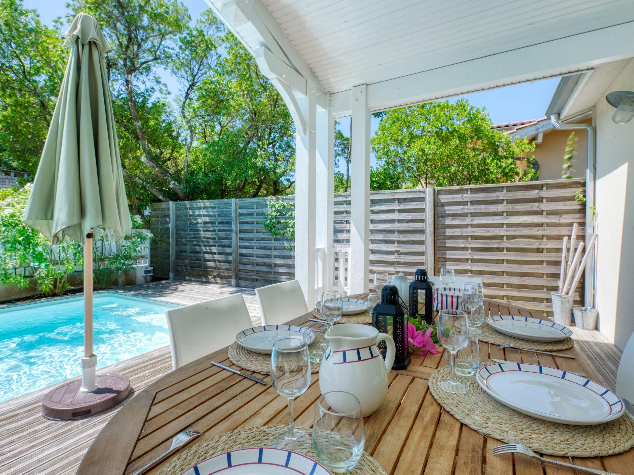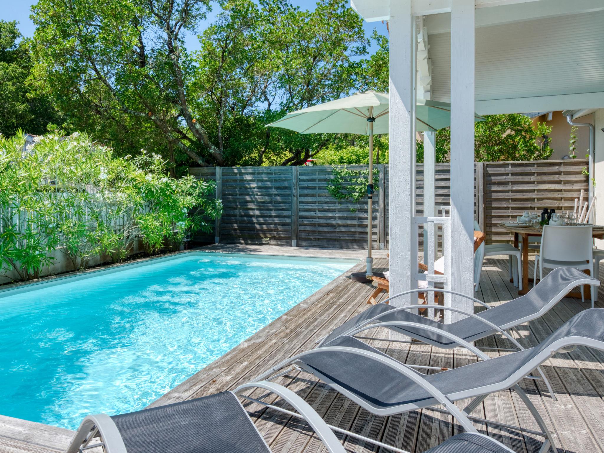 Villa "du Lac", built in 2014. In the hamlet Les Bainasses 5 km from the centre of Lacanau-Ville, 7 km from the centre of Lacanau-Océan, 52 km from the centre of Bordeaux, 100 m from the lake, 7 km from the beach, in a cul-de-sac. Private: well-kept garden 300 m2 (fenced) with wildlife garden, swimming pool (7 x 3 m, seasonal availability: 25.Apr. - 26.Sep.) with internal staircase. Outdoor shower, terrace, parking (for 2 cars) at the house on the premises. Shop 5 km, bus stop "Le huga" 4 km, sandy beach "Lacanau-Océan" 7 km, bathing lake "Etang de Lacanau" 400 m. Golf course (18 hole) 4 km.