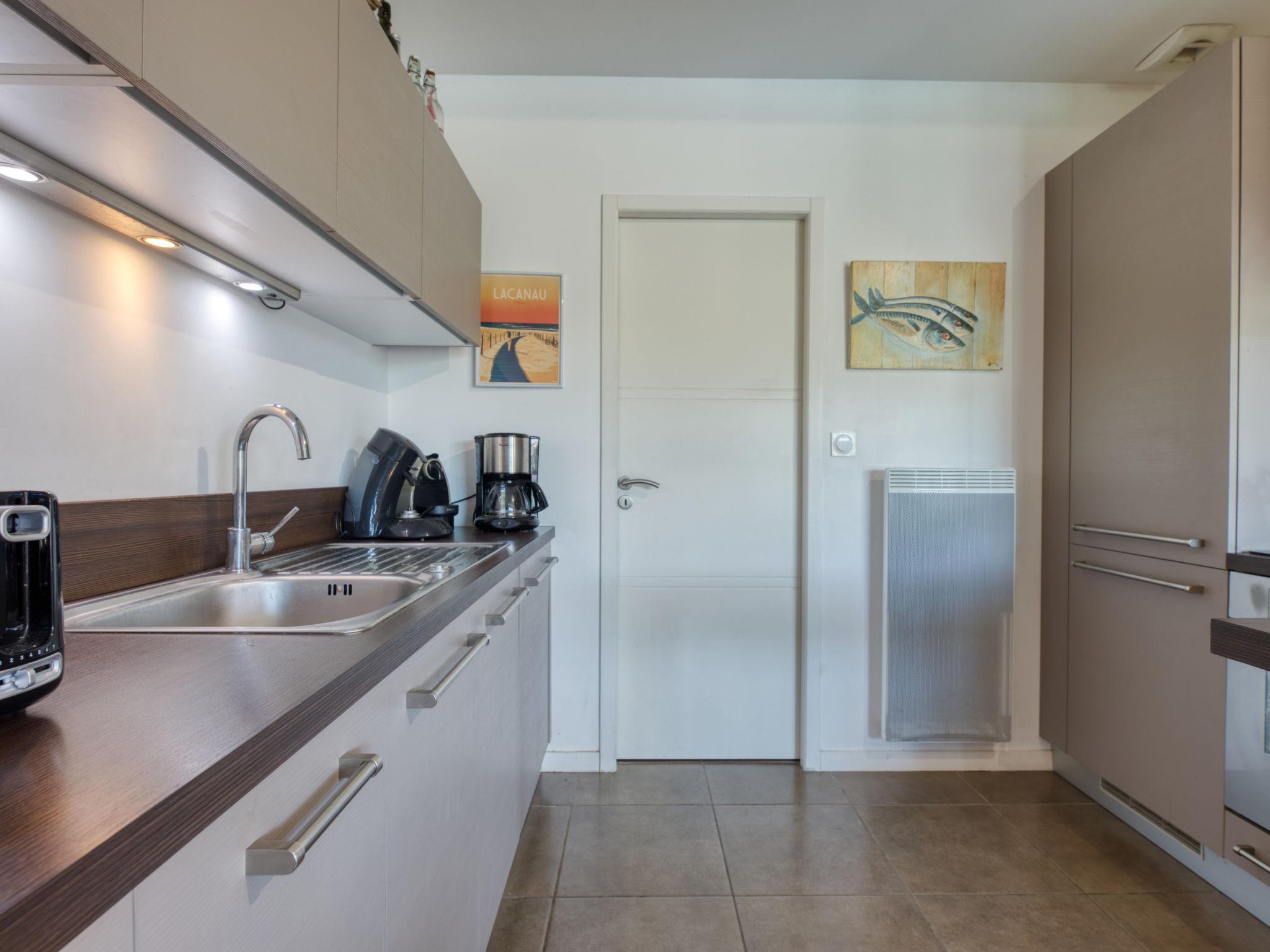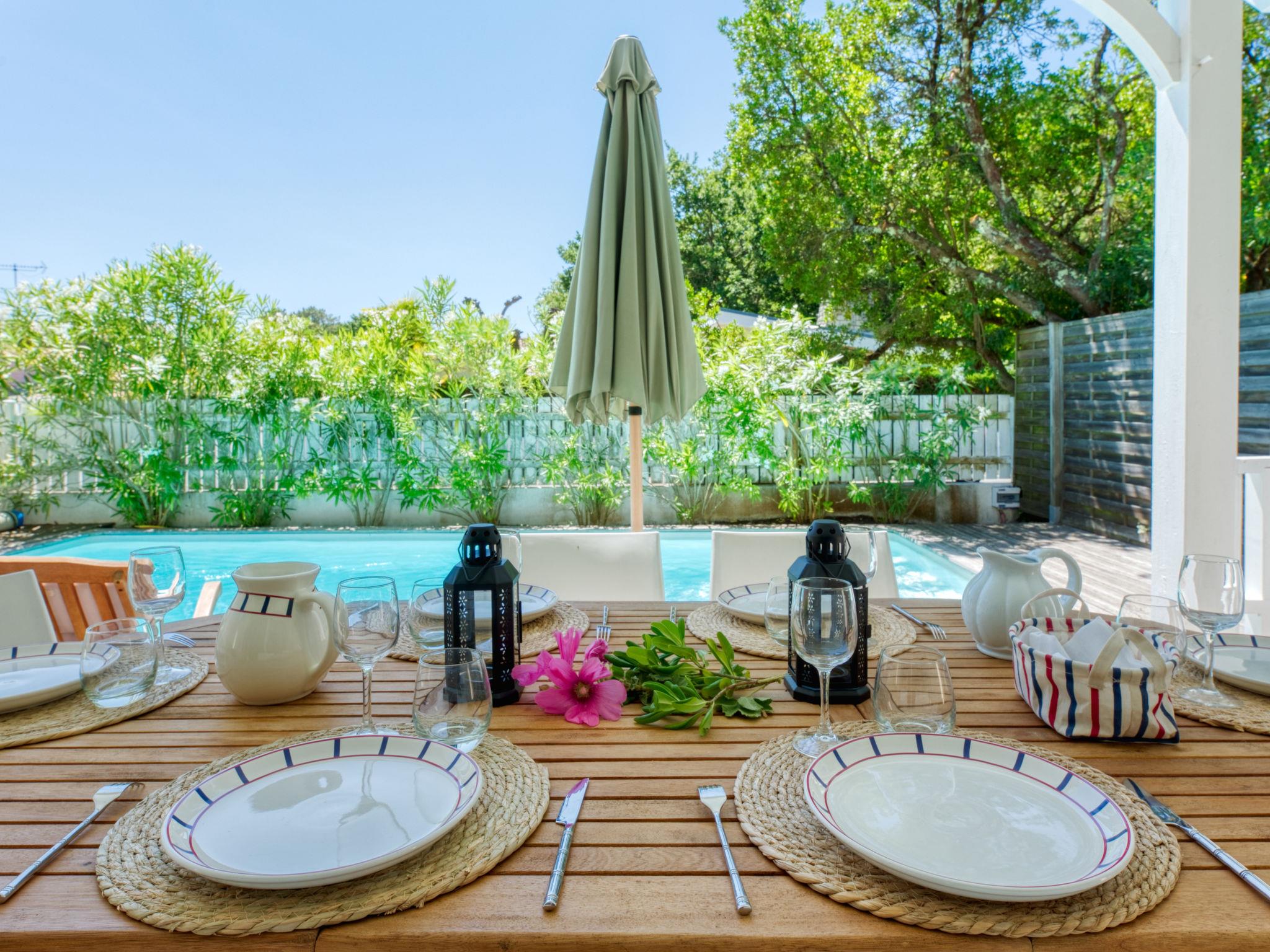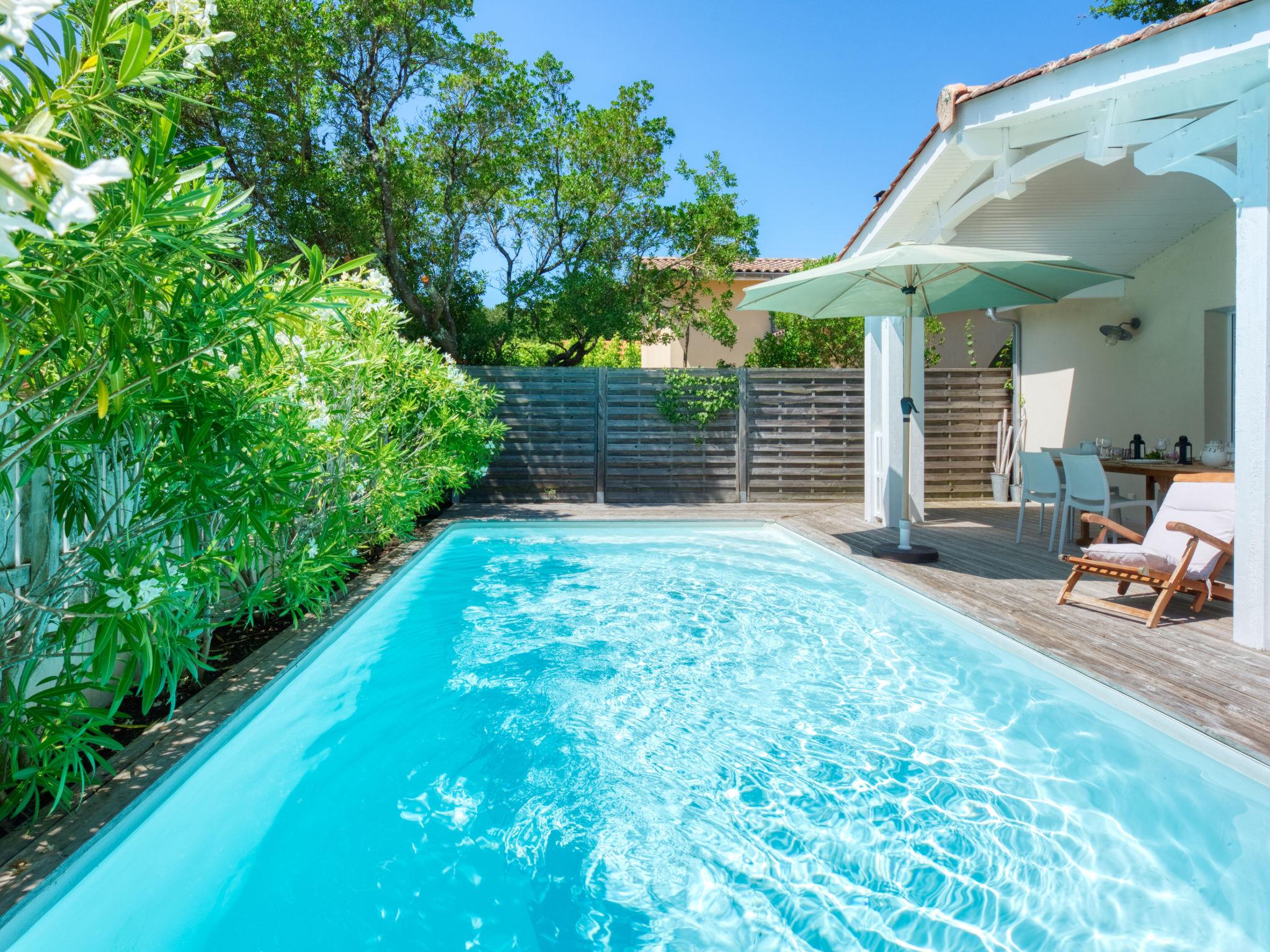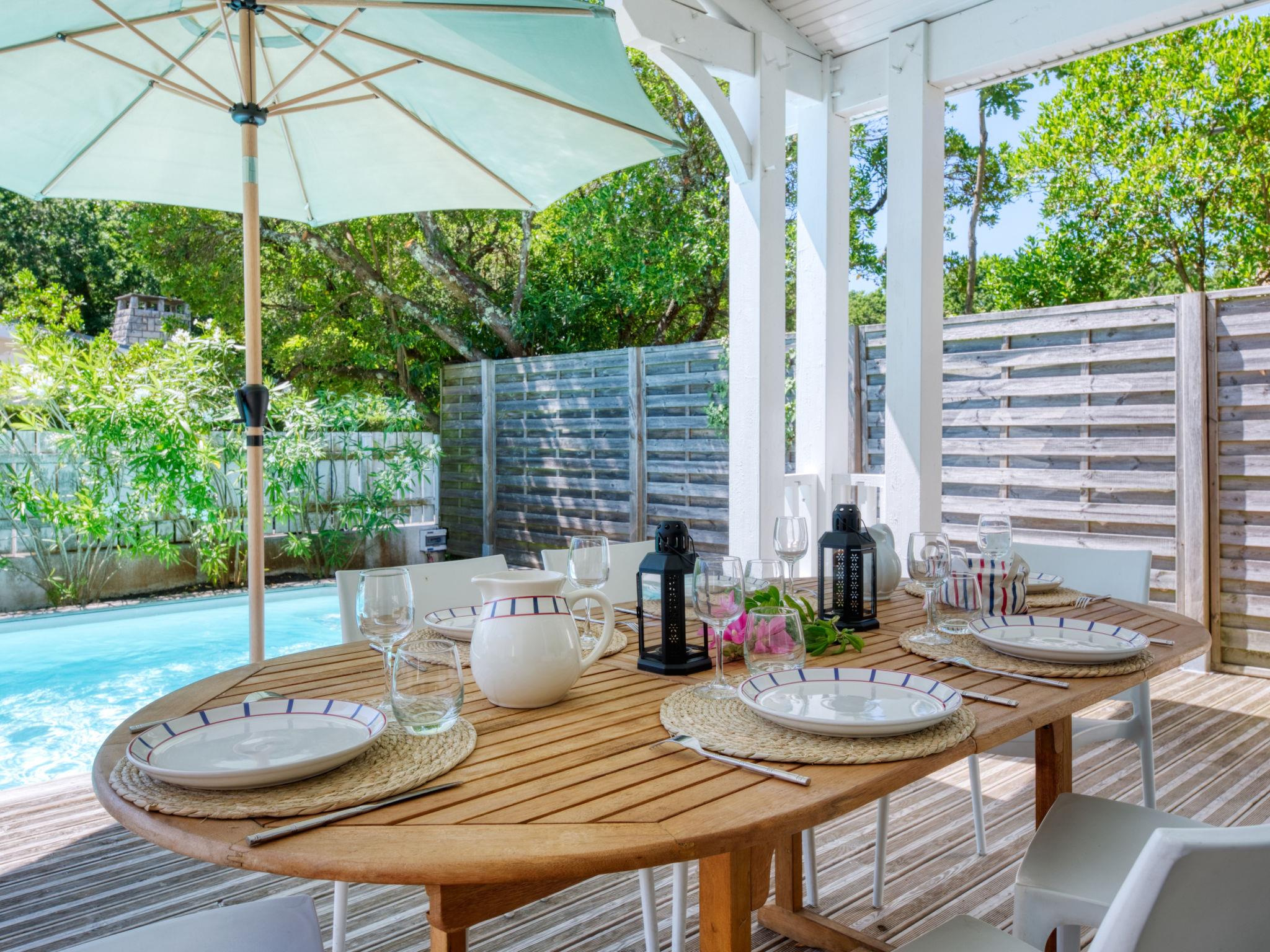 Villa "du Lac", built in 2014. In the hamlet Les Bainasses 5 km from the centre of Lacanau-Ville, 7 km from the centre of Lacanau-Océan, 52 km from the centre of Bordeaux, 100 m from the lake, 7 km from the beach, in a cul-de-sac. Private: well-kept garden 300 m2 (fenced) with wildlife garden, swimming pool (7 x 3 m, seasonal availability: 25.Apr. - 26.Sep.) with internal staircase. Outdoor shower, terrace, parking (for 2 cars) at the house on the premises. Shop 5 km, bus stop "Le huga" 4 km, sandy beach "Lacanau-Océan" 7 km, bathing lake "Etang de Lacanau" 400 m. Golf course (18 hole) 4 km.