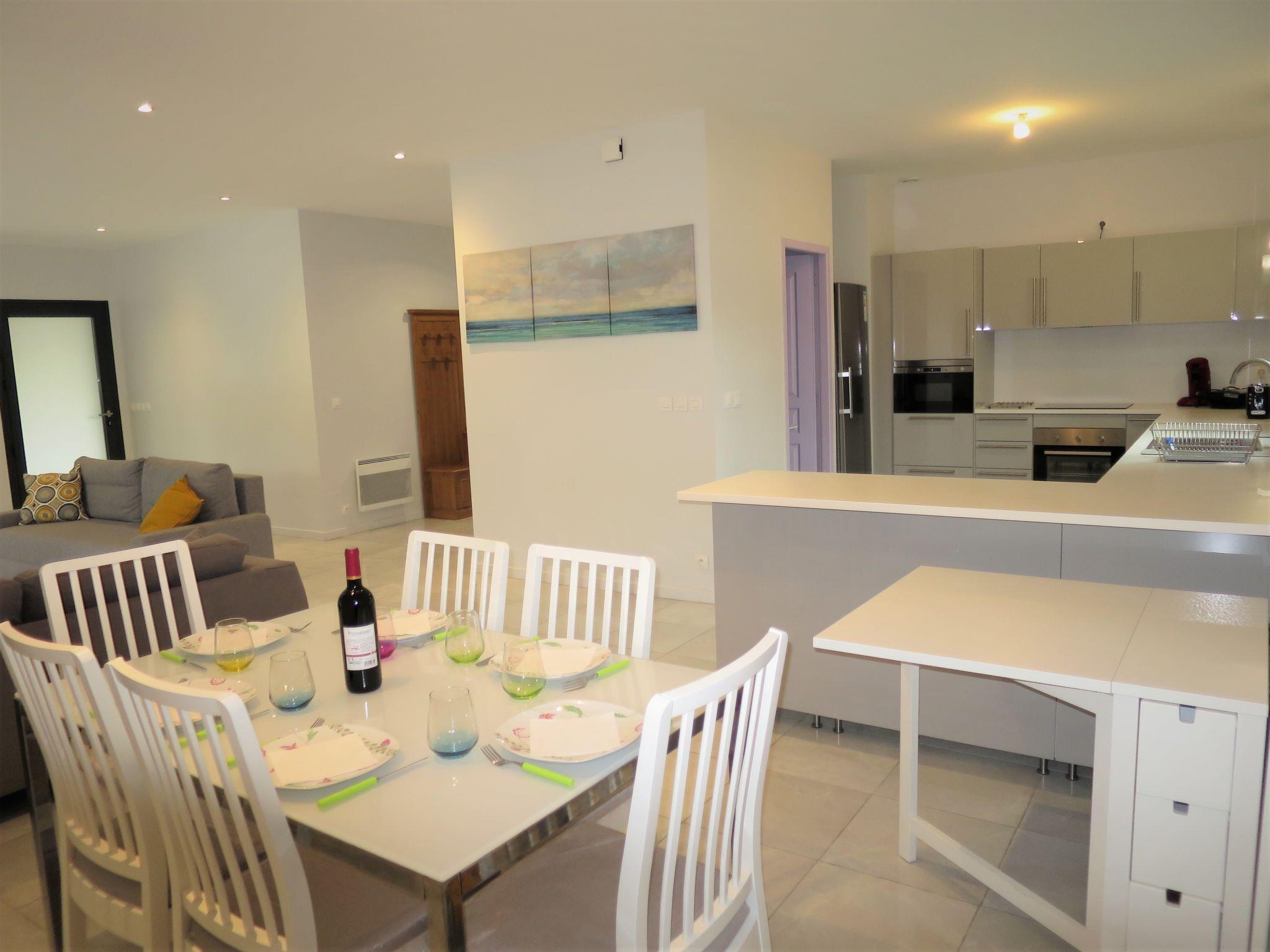 Beautiful house "Yara", built in 2018. 3 km from the centre of Lacanau Océan, 10 km from the centre of Lacanau Ville, 55 km from the centre of Bordeaux, in the residential district, 3 km from the sea, 3 km from the lake. Private: well-kept garden 400 m2 (fenced) with wildlife garden and trees, parking at the house on the premises. Supermarket 3 km, bus stop "Le Huga" 260 m, sandy beach "Plage Centrale Lacanau" 3 km. Golf course (18 hole) 1 km, surf school 3.5 km, riding stable 7 km. Please note: main road 20 m from the property.