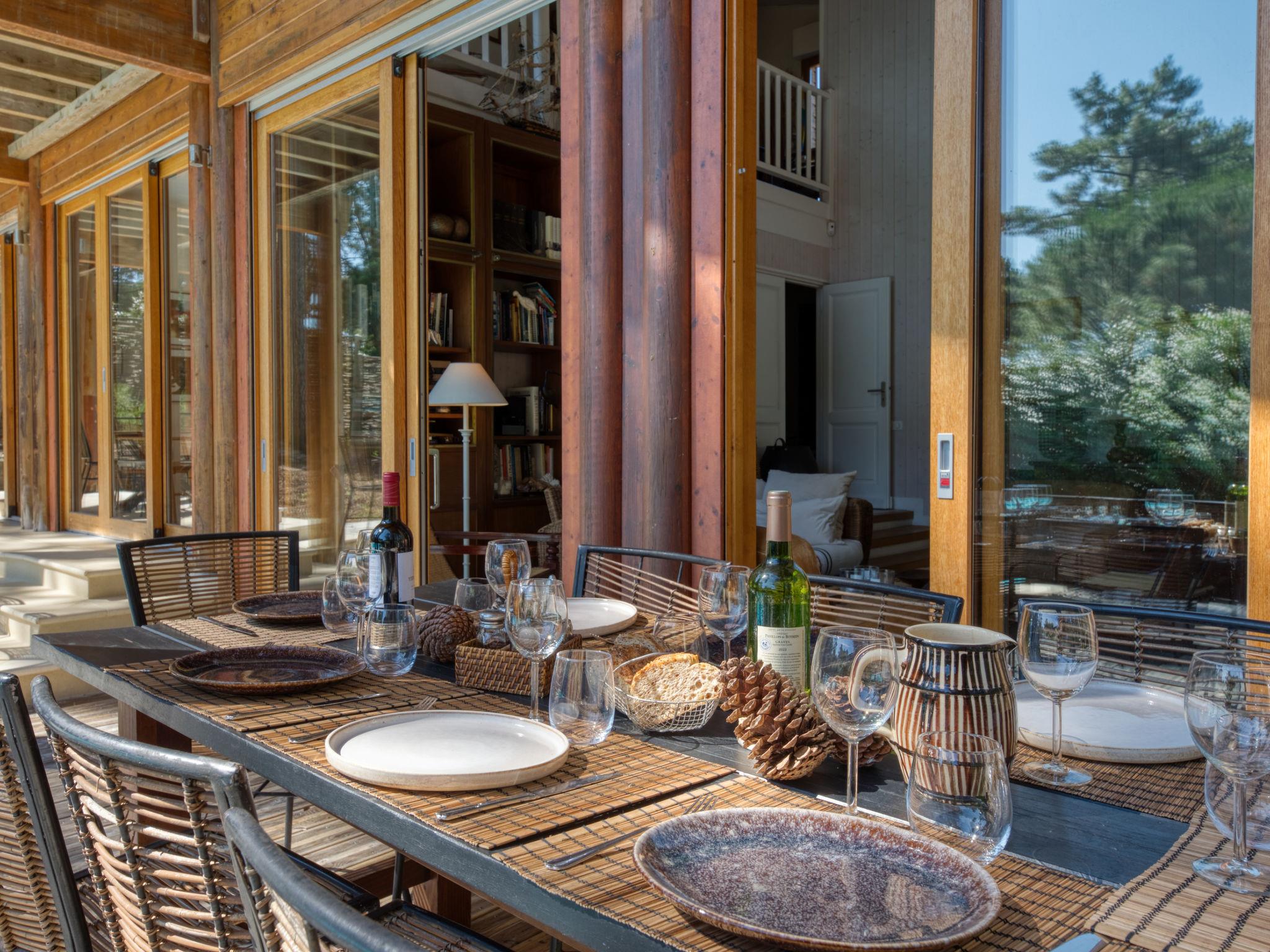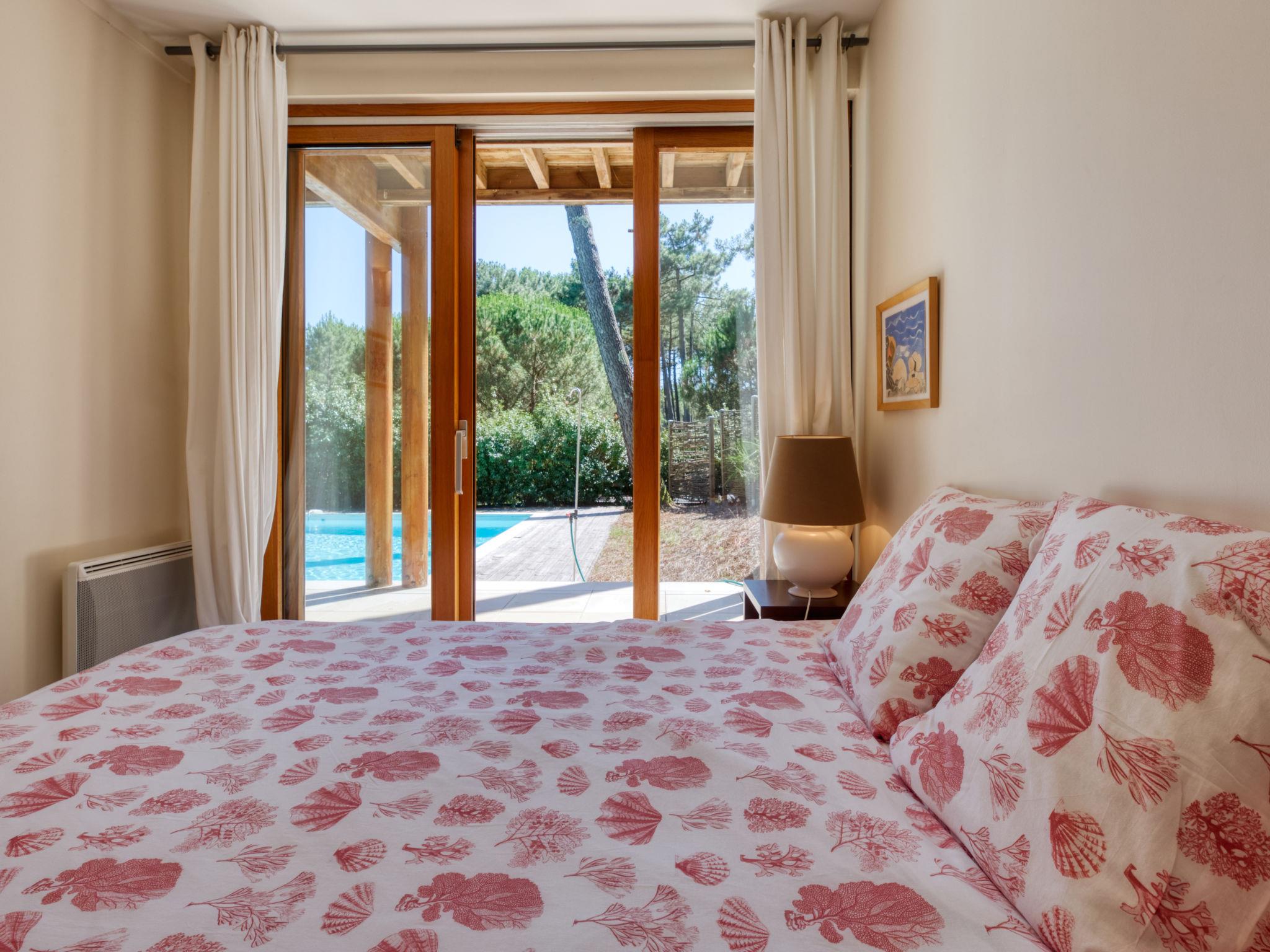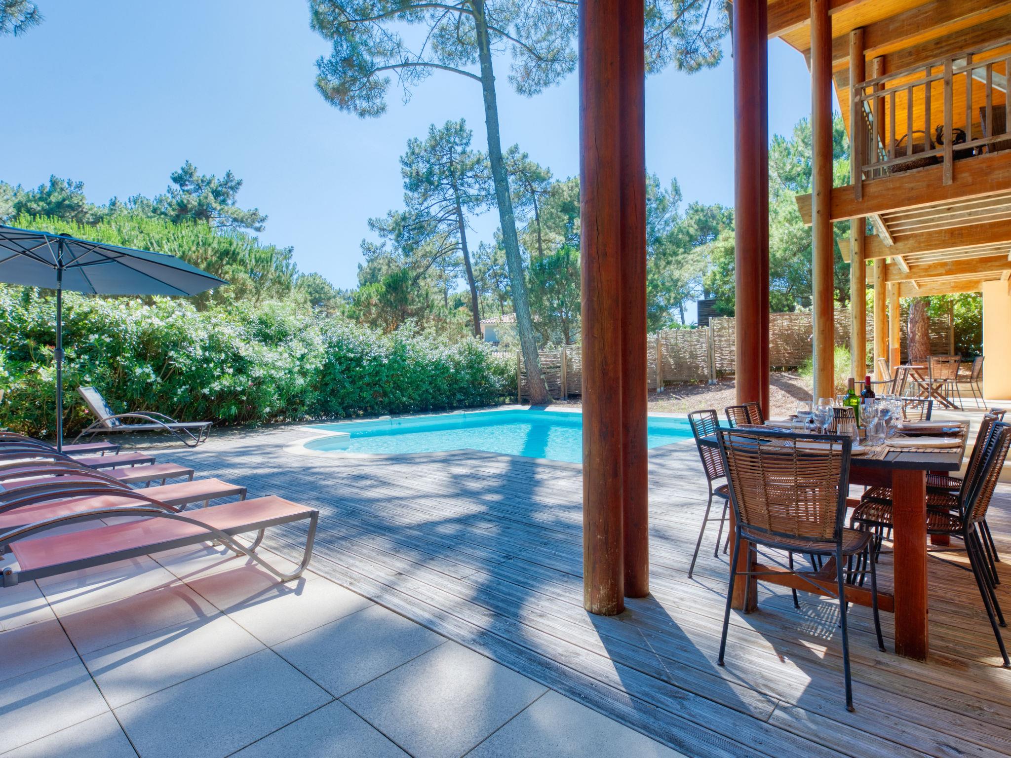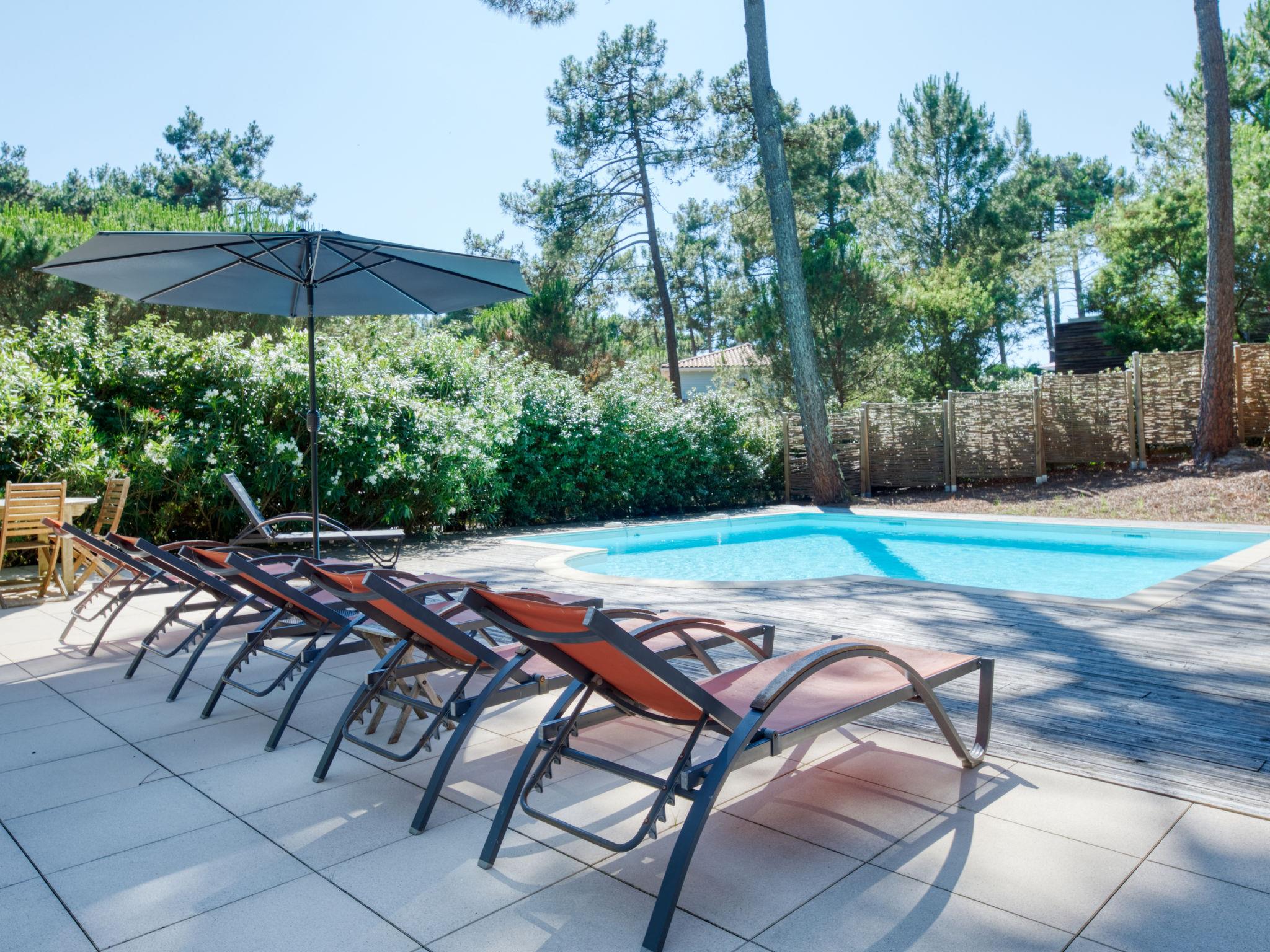 Large, beautiful villa "La Lisière des Pins", built in 2013. 2.5 km from the centre of Lacanau-Océan, 12 km from the centre of Lacanau-Ville, 55 km from the centre of Bordeaux, in the residential district, 2 km from the sea, 2 km from the beach, in a cul-de-sac. Private: natural state property 850 m2 (fenced) with trees, swimming pool (7 x 7 m, depth 160 - 200 cm, seasonal availability: 25.Apr. - 26.Sep.) with internal staircase and alarm system. Outdoor shower, terrace, garden furniture. In the house: table tennis, table football. Parking (for 2 cars) at the house on the premises. Supermarket 2 km, bus stop "Marie curie" 800 m, sandy beach "Plage Lacanau Sud" 2 km, bathing lake "Lacanau Le Moutchic" 5.5 km. Golf course (18 hole) 2 km, surf school 2 km, riding stable 1 km. The owner does not accept any groups. The owner does not accept any youth groups. Neighbourhood highly sensitive to noise. Quietness and good behaviour expected.