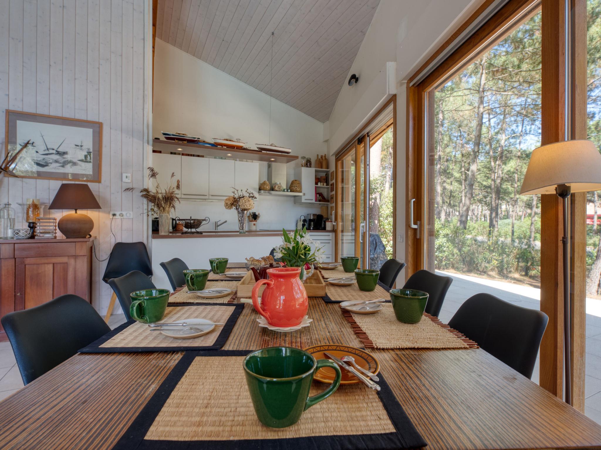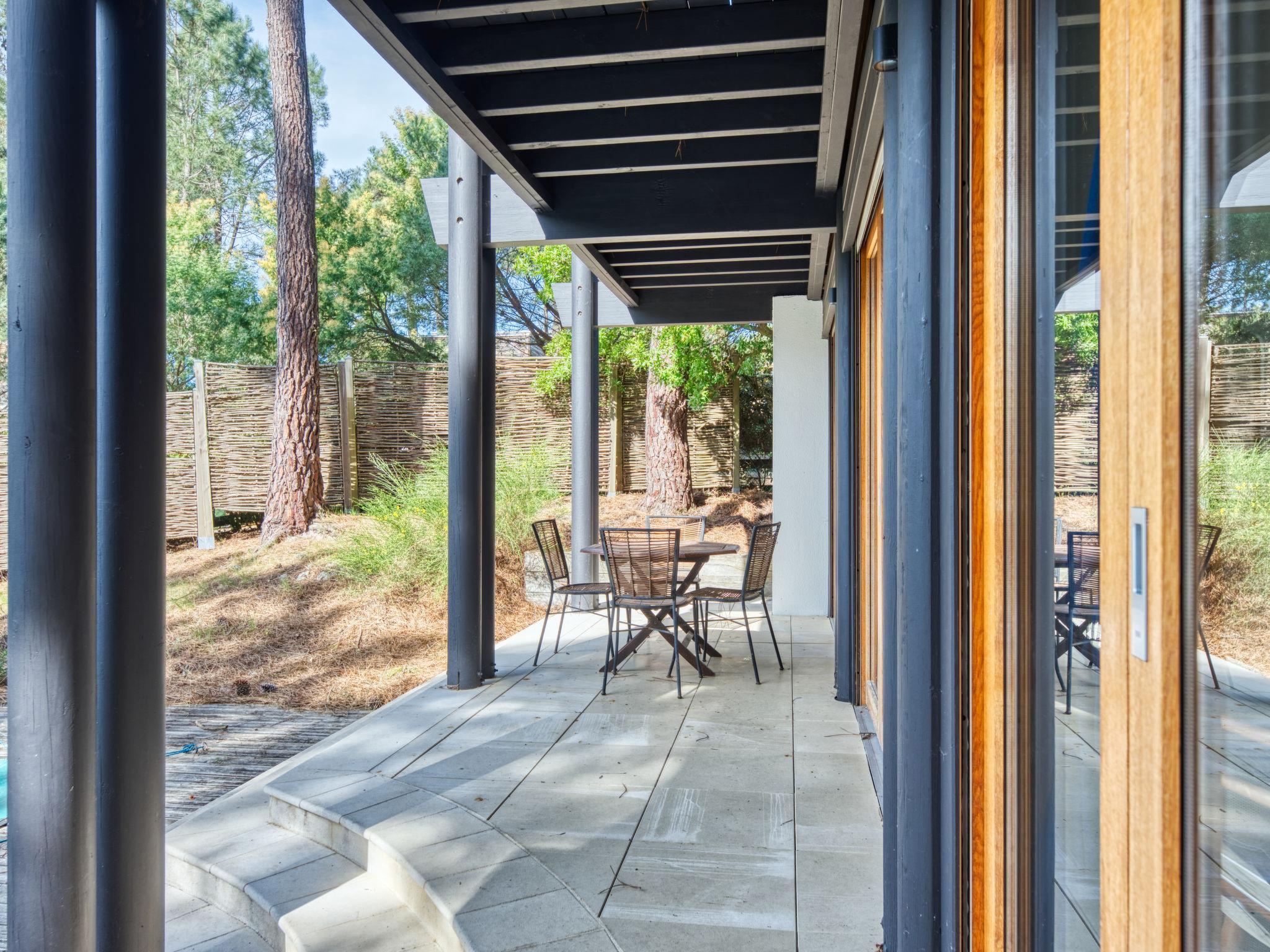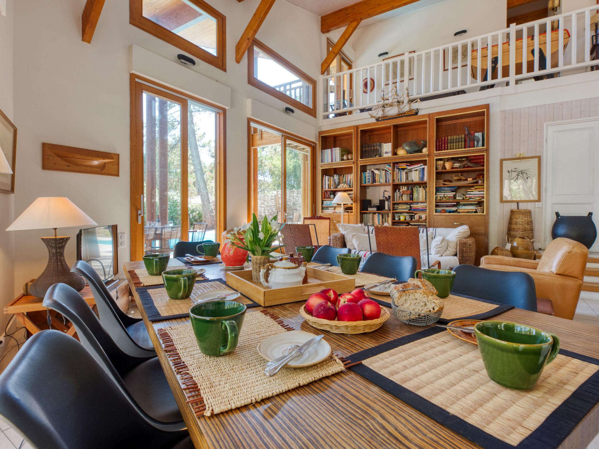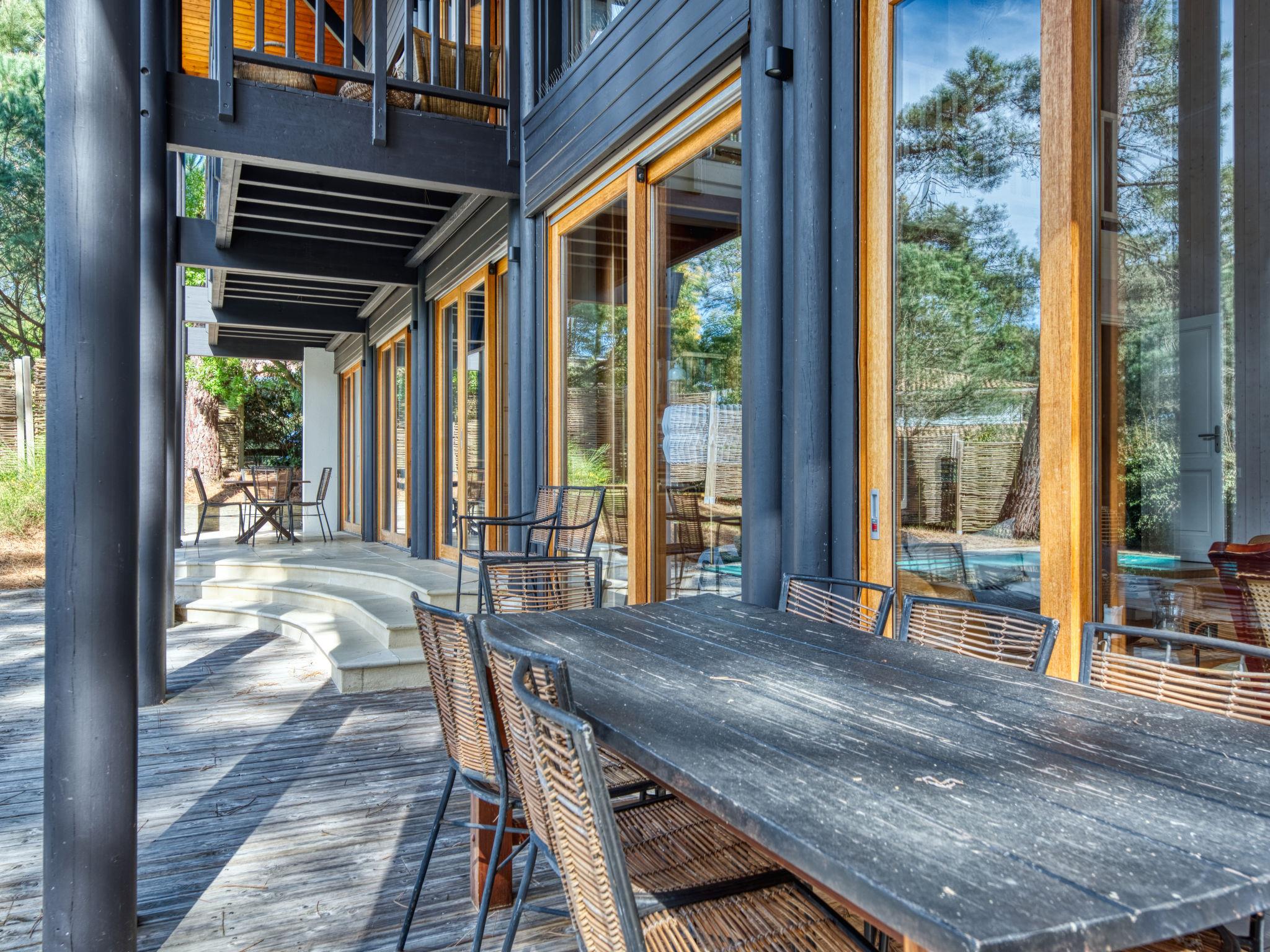 Large, beautiful villa "La Lisière des Pins", built in 2013. 2.5 km from the centre of Lacanau-Océan, 12 km from the centre of Lacanau-Ville, 55 km from the centre of Bordeaux, in the residential district, 2 km from the sea, 2 km from the beach, in a cul-de-sac. Private: natural state property 850 m2 (fenced) with trees, swimming pool (7 x 7 m, depth 160 - 200 cm, seasonal availability: 25.Apr. - 26.Sep.) with internal staircase and alarm system. Outdoor shower, terrace, garden furniture. In the house: table tennis, table football. Parking (for 2 cars) at the house on the premises. Supermarket 2 km, bus stop "Marie curie" 800 m, sandy beach "Plage Lacanau Sud" 2 km, bathing lake "Lacanau Le Moutchic" 5.5 km. Golf course (18 hole) 2 km, surf school 2 km, riding stable 1 km. The owner does not accept any groups. The owner does not accept any youth groups. Neighbourhood highly sensitive to noise. Quietness and good behaviour expected.