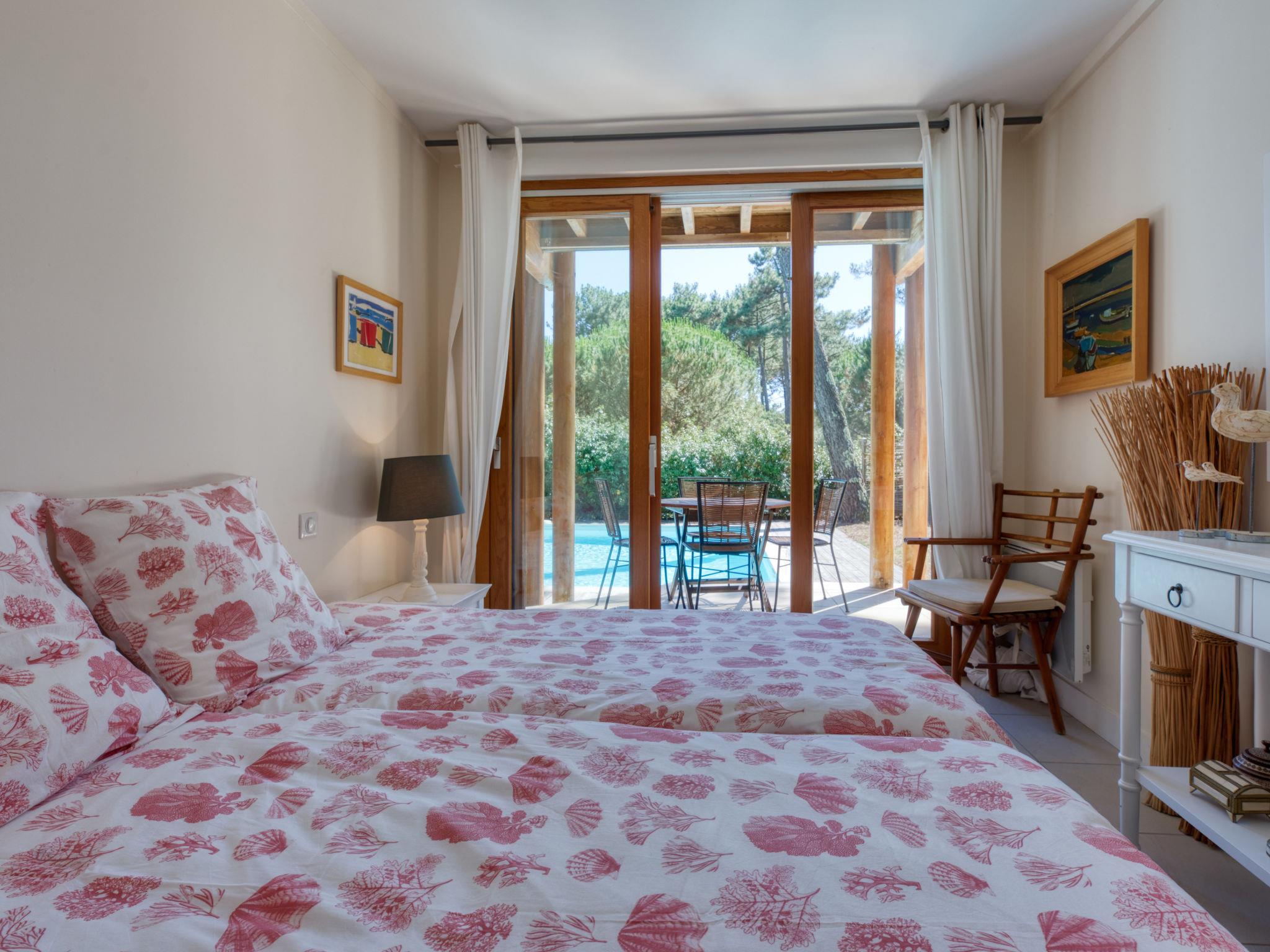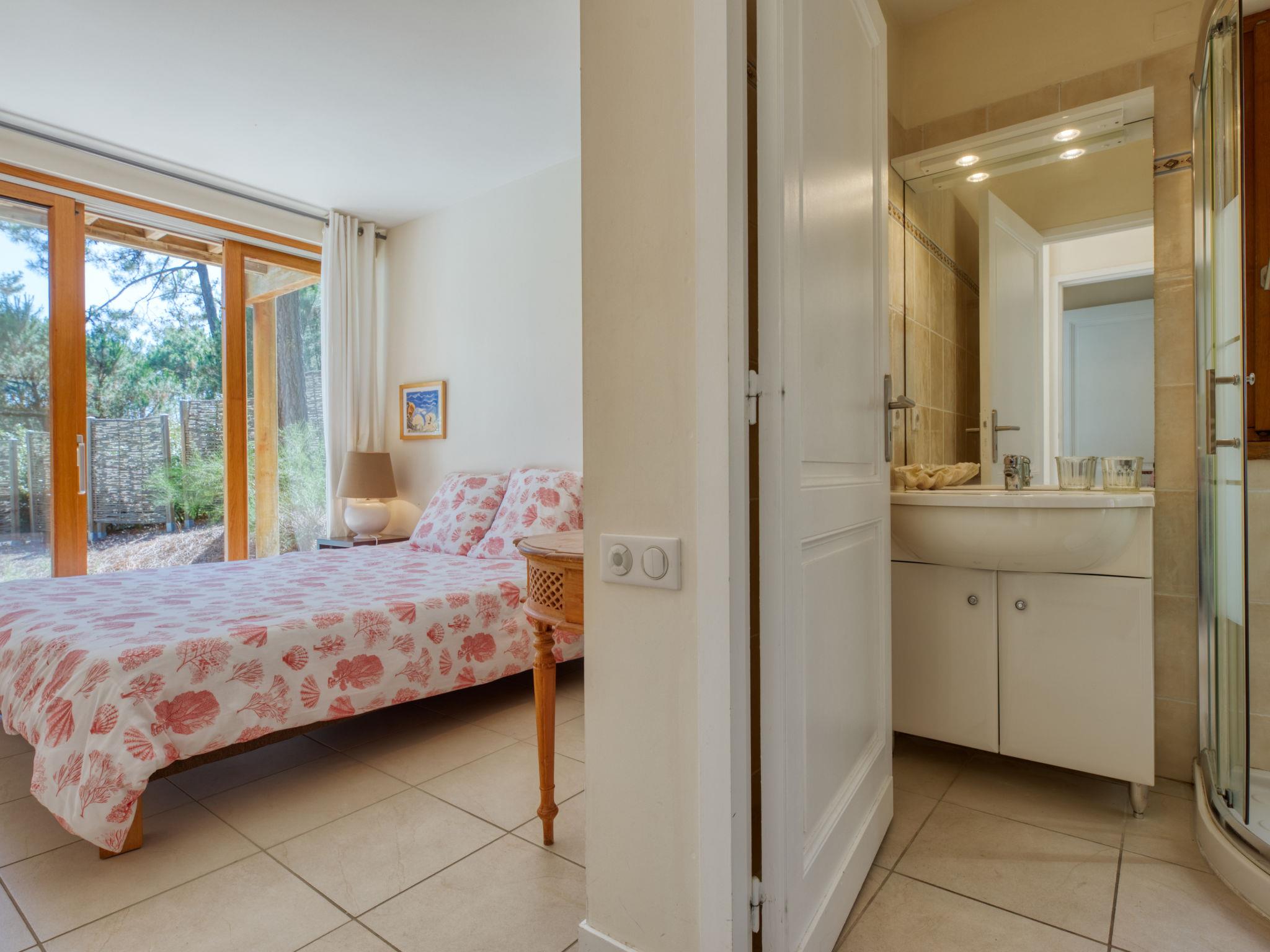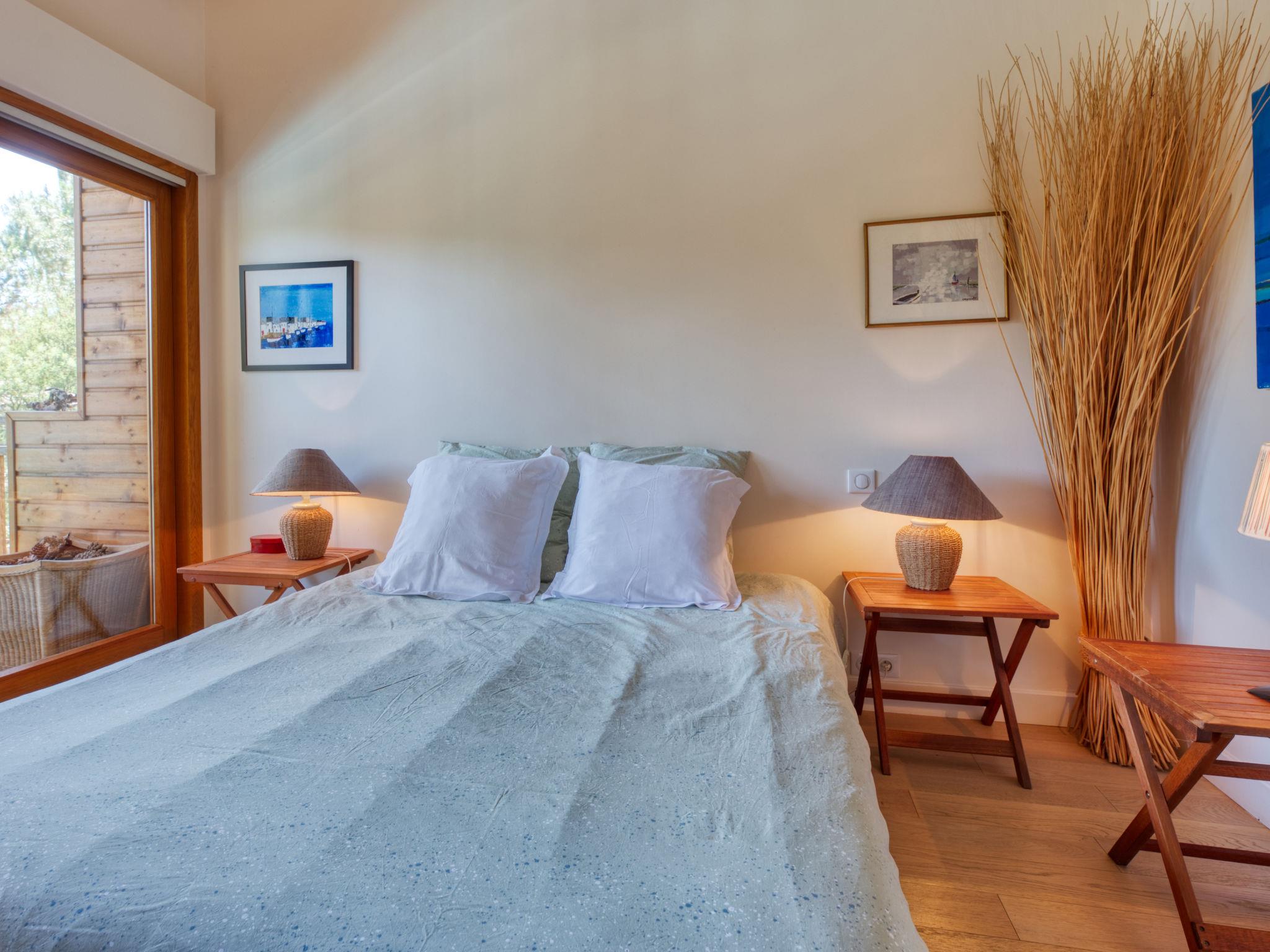 "Villa La Lisière des Pins", 6-room house 170 m2 on 2 levels. Spacious and bright, comfortable and tasteful furnishings: large living/dining room with dining table and satellite TV (flat screen), hi-fi system and DVD. Exit to the terrace. 1 room with 1 french bed (160 cm, length 200 cm), shower. Exit to the terrace. 2 rooms, each room with 2 beds (90 cm, length 200 cm). Exit to the terrace. Open kitchen (oven, dishwasher, 4 ceramic glass hob hotplates, toaster, kettle, microwave, freezer, electric coffee machine, Capsules for coffee machine (Senseo / Nespresso) extra). Exit to the terrace. Shower, sep. WC, double hand-basin. Upper floor: 1 room with Dressing room with 1 french bed (160 cm, length 200 cm), bathroom and double hand-basin. Exit to the balcony. 1 room with 2 beds (90 cm, length 200 cm). Exit to the balcony. Bathroom, sep. WC. Electric heating. Large terrace partly roofed. Terrace furniture, barbecue (portable), deck chairs (8). Facilities: washing machine, dryer, children's high chair, baby cot. Internet (WiFi, free). Please note: suitable for families. Non-smoking house. Maximum 2 pets/ dogs allowed. Smoke alarm. Offer by a private individual according to Art. 155, IV of CGI.