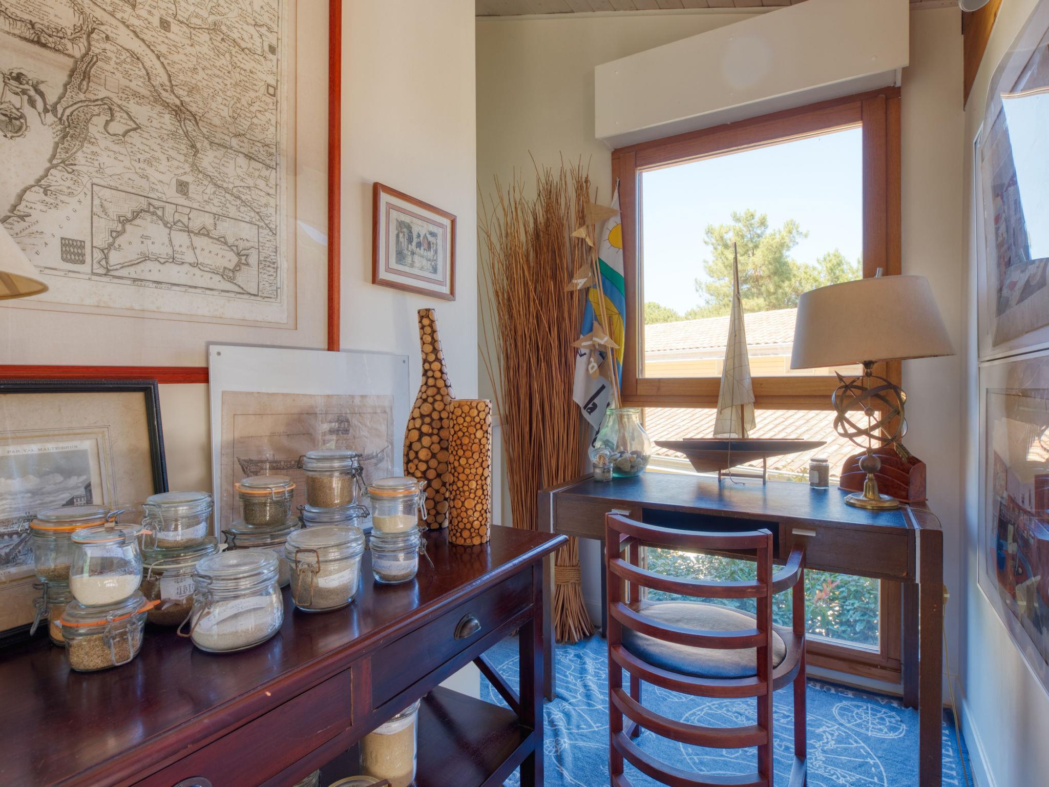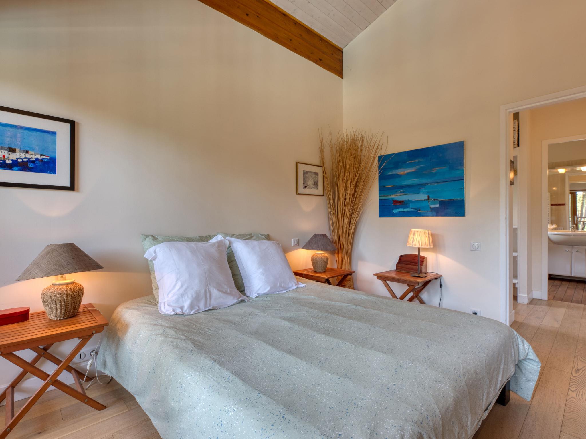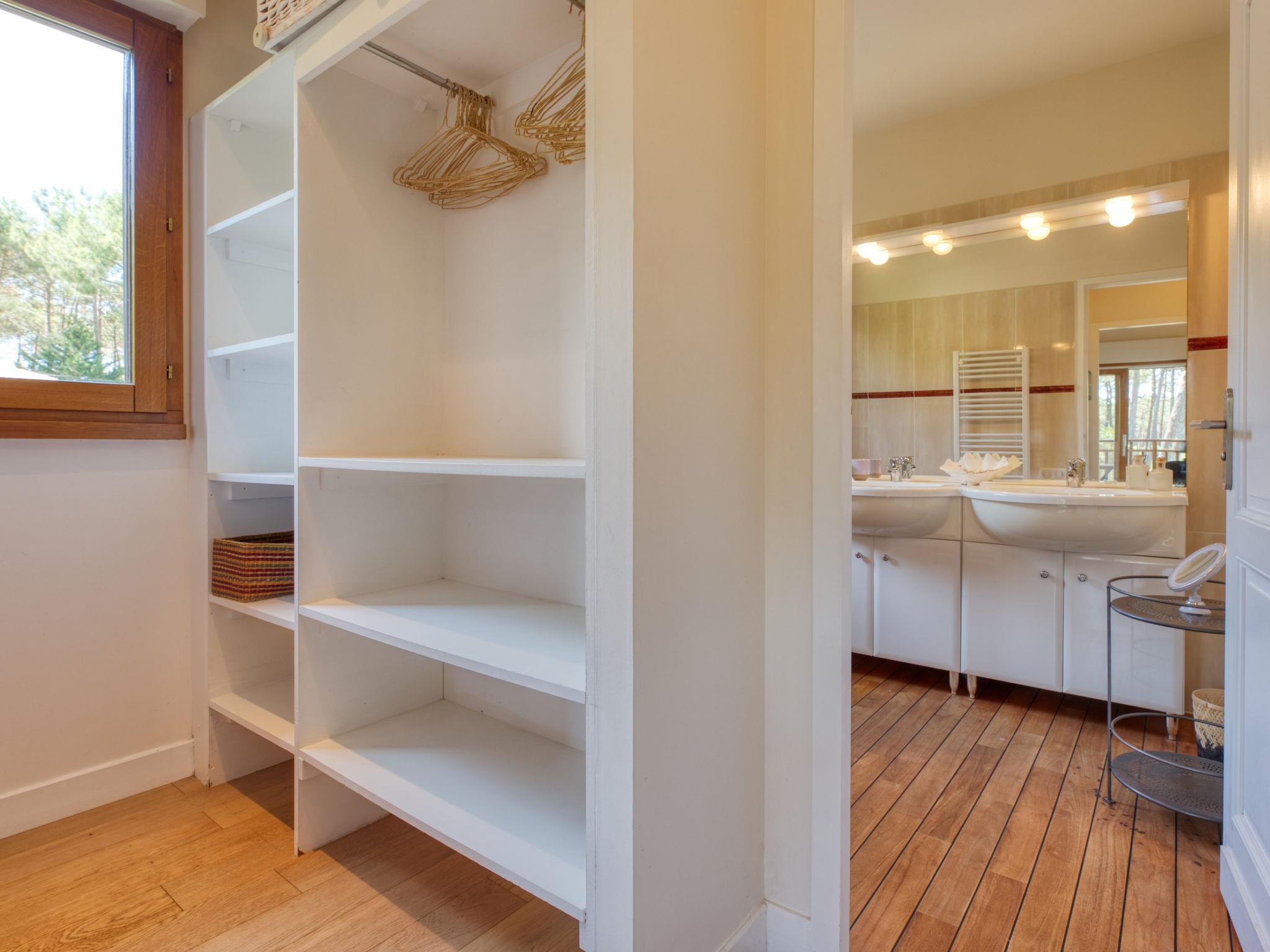 "Villa La Lisière des Pins", 6-room house 170 m2 on 2 levels. Spacious and bright, comfortable and tasteful furnishings: large living/dining room with dining table and satellite TV (flat screen), hi-fi system and DVD. Exit to the terrace. 1 room with 1 french bed (160 cm, length 200 cm), shower. Exit to the terrace. 2 rooms, each room with 2 beds (90 cm, length 200 cm). Exit to the terrace. Open kitchen (oven, dishwasher, 4 ceramic glass hob hotplates, toaster, kettle, microwave, freezer, electric coffee machine, Capsules for coffee machine (Senseo / Nespresso) extra). Exit to the terrace. Shower, sep. WC, double hand-basin. Upper floor: 1 room with Dressing room with 1 french bed (160 cm, length 200 cm), bathroom and double hand-basin. Exit to the balcony. 1 room with 2 beds (90 cm, length 200 cm). Exit to the balcony. Bathroom, sep. WC. Electric heating. Large terrace partly roofed. Terrace furniture, barbecue (portable), deck chairs (8). Facilities: washing machine, dryer, children's high chair, baby cot. Internet (WiFi, free). Please note: suitable for families. Non-smoking house. Maximum 2 pets/ dogs allowed. Smoke alarm. Offer by a private individual according to Art. 155, IV of CGI.