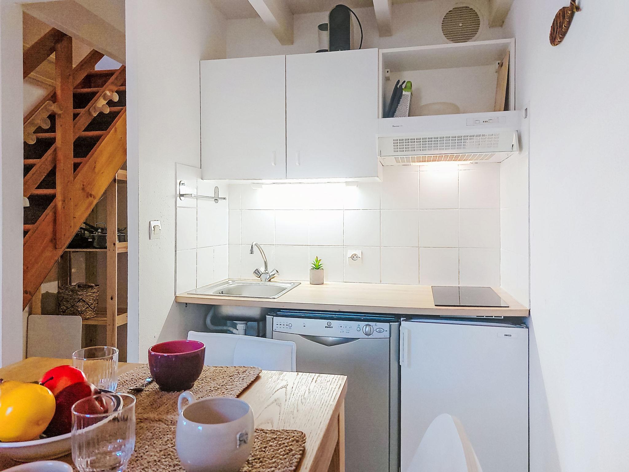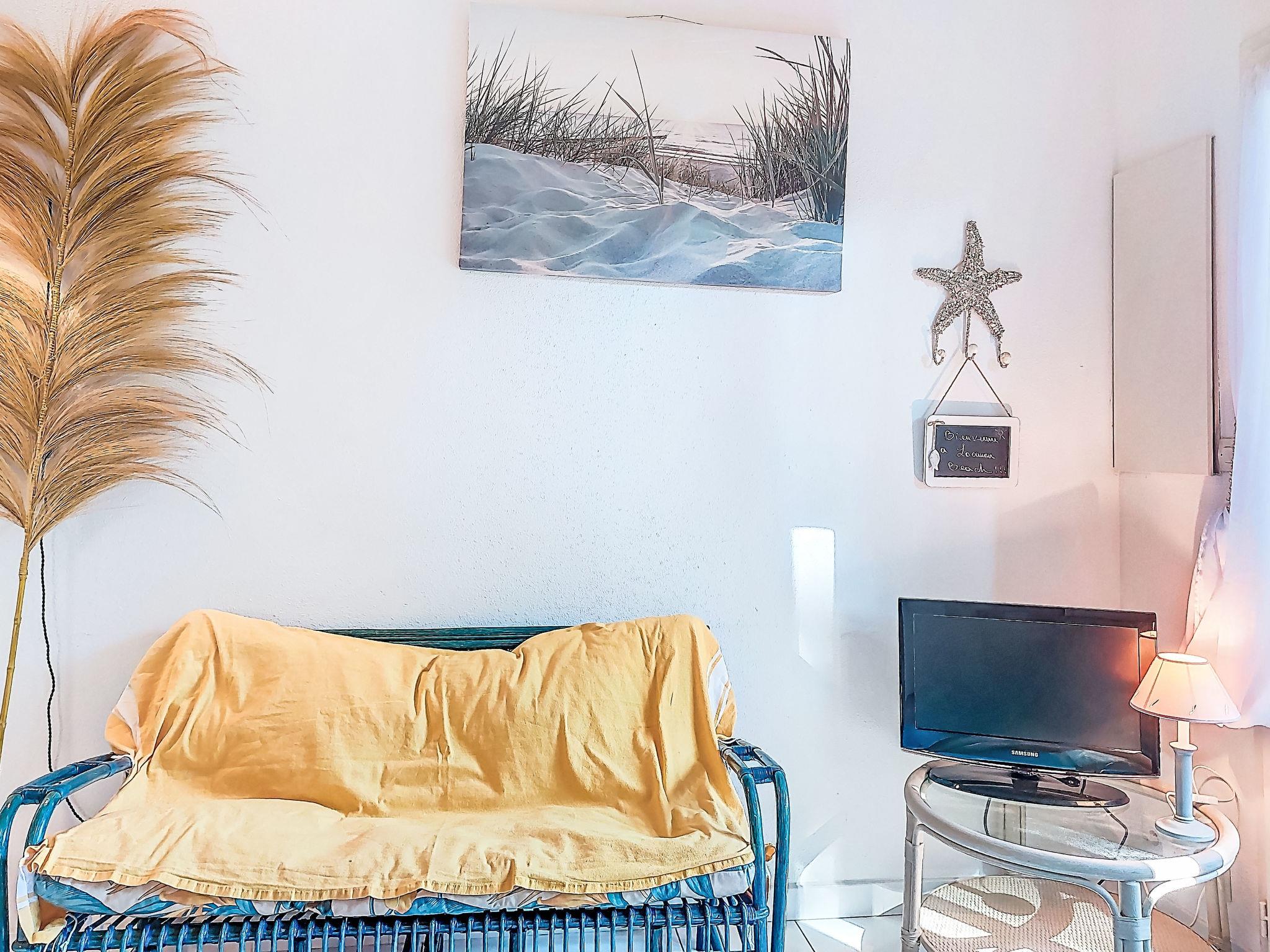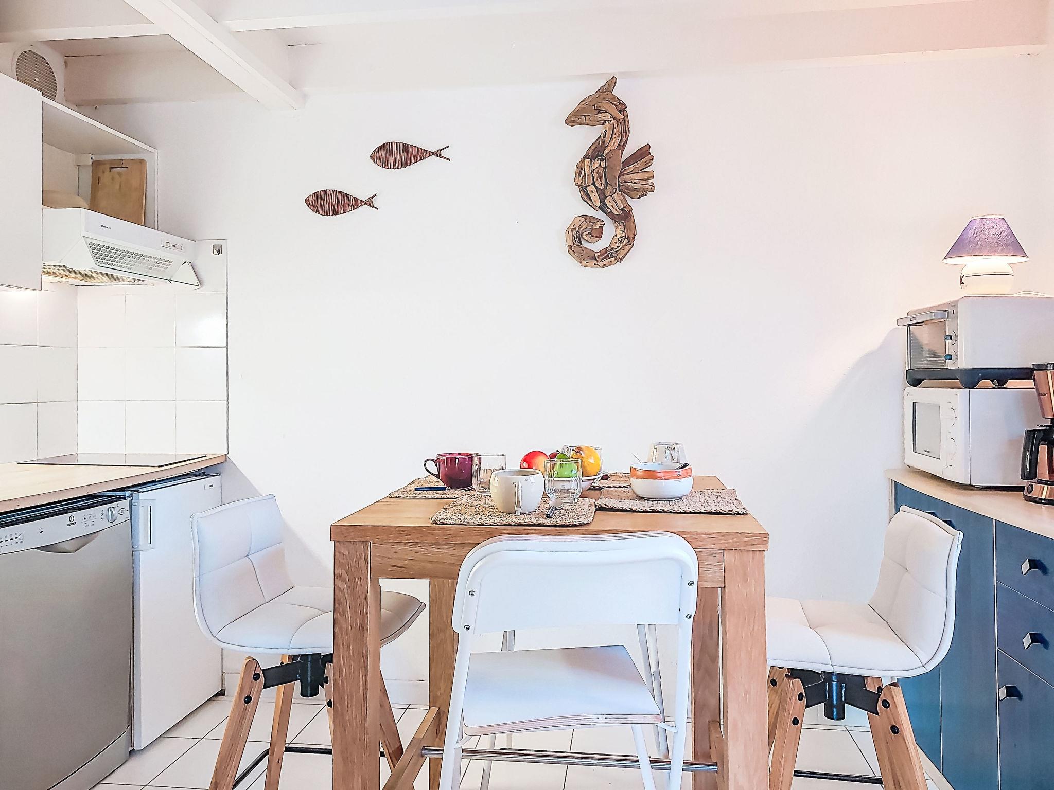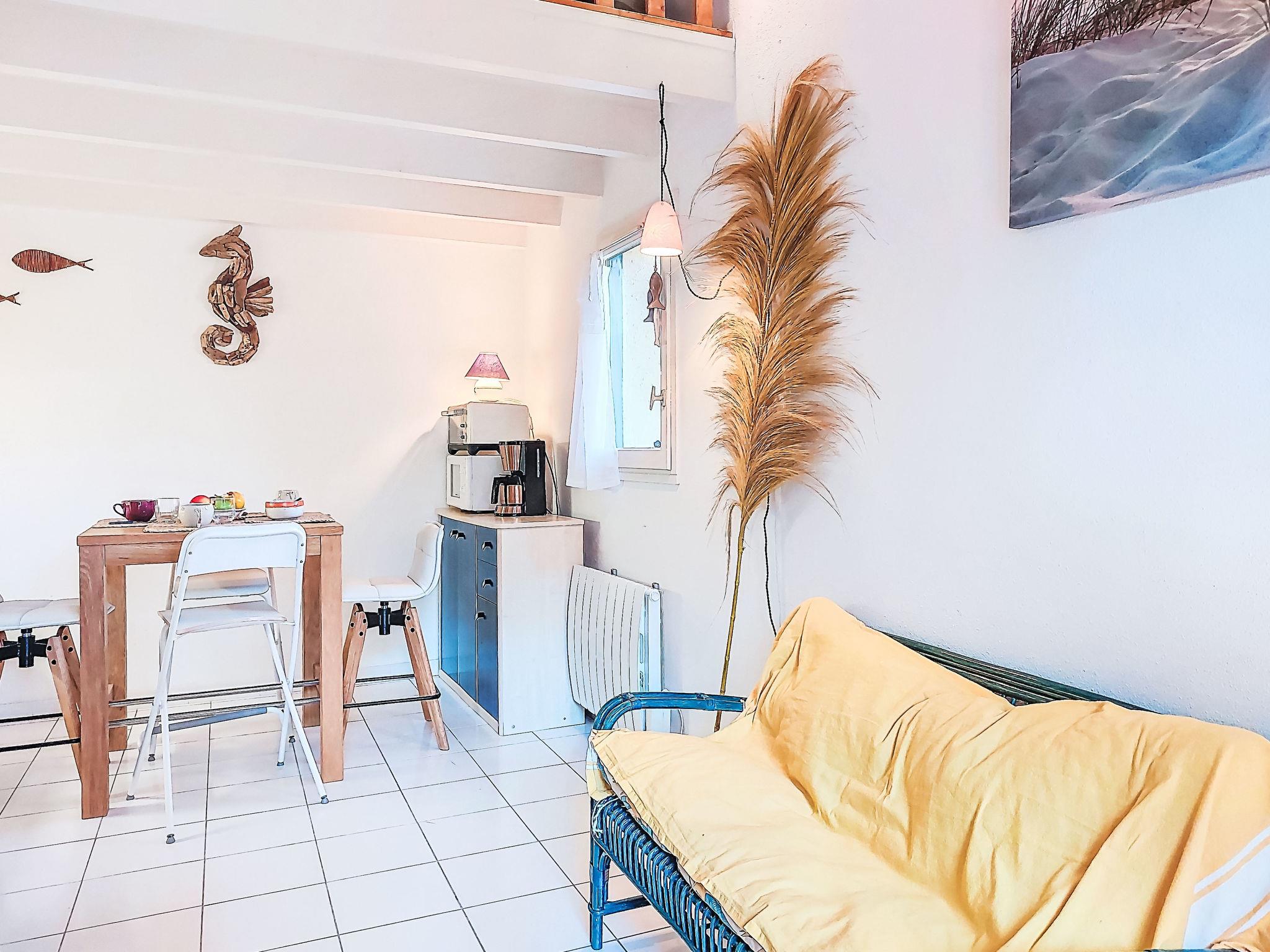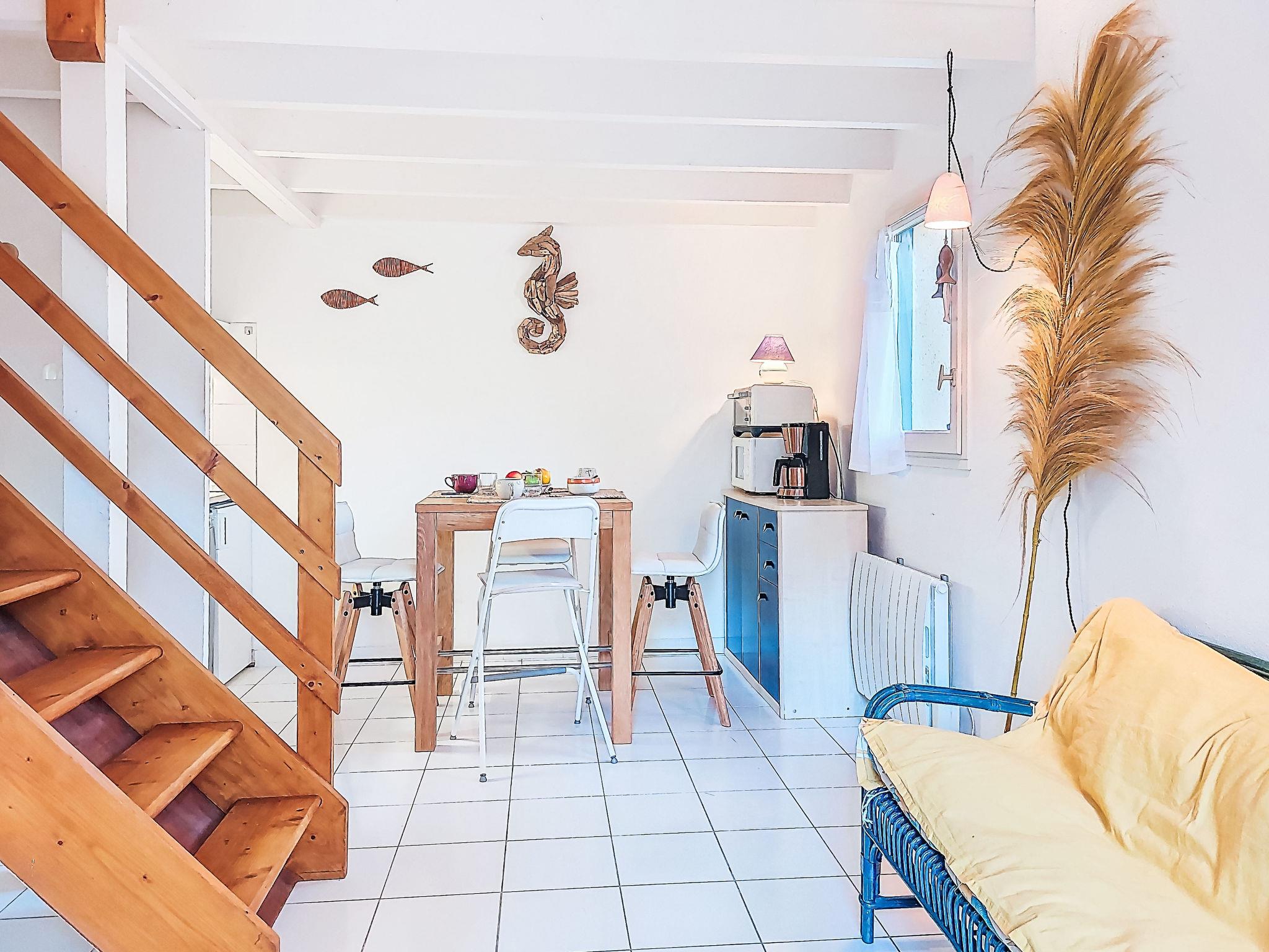 3-room terraced house 37 m2 on 2 levels. Living/dining room with flat screen. 1 room with 1 french bed (140 cm, length 190 cm). Kitchenette (mini-oven, oven, dishwasher, 2 ceramic glass hob hotplates, toaster, kettle, electric coffee machine). Shower, sep. WC. Upper floor: 1 room with 1 french bed (140 cm, length 190 cm). Gallery with 1 french bed (140 cm, length 190 cm). Electric heating. Terrace, patio 100 m2. Terrace furniture, deck chairs. Facilities: Internet (WiFi, extra). Parking. Please note: smoke alarm. Offer by a private individual according to Art. 155, IV of CGI.