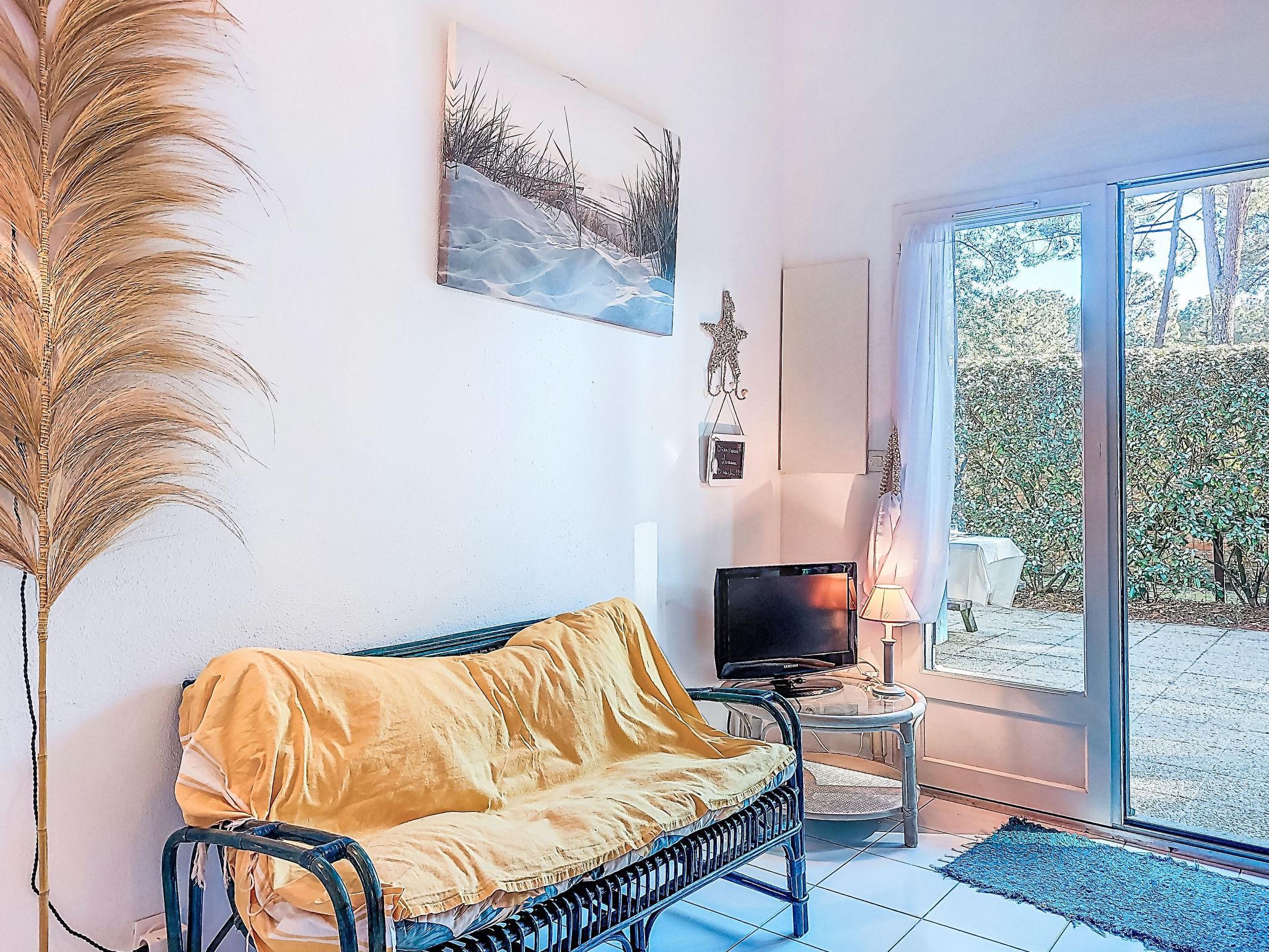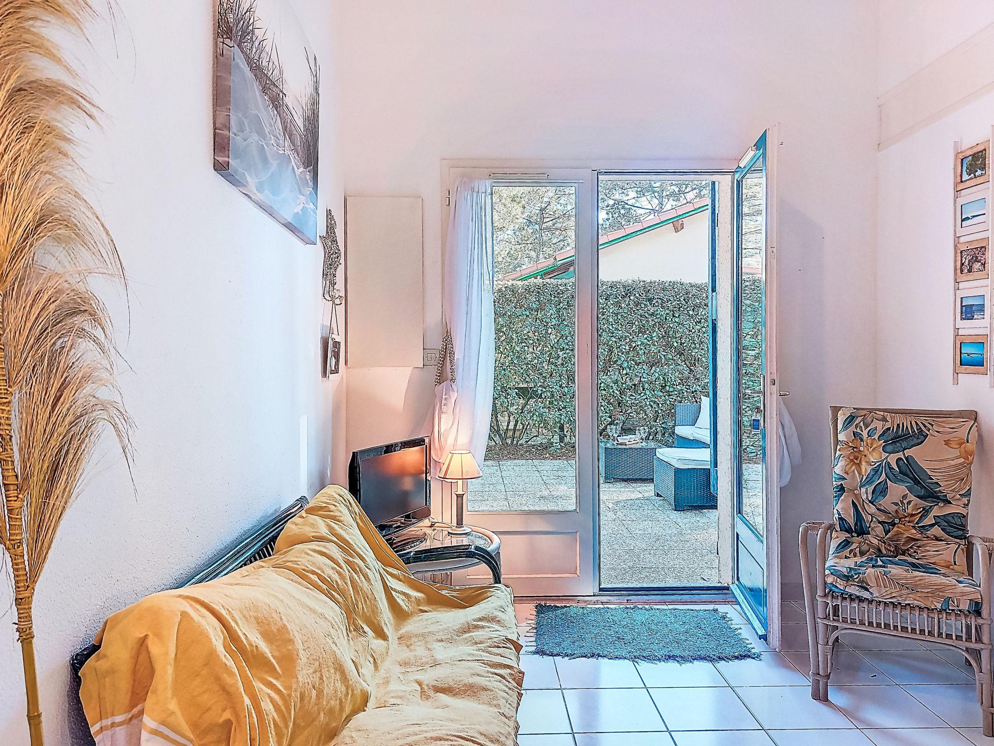 Residence "Les Jardins de Lacanau". Outside the resort, 1.5 km from the centre of Lacanau-Océan, 4 km from the lake. For shared use: garden (fenced), parking. Shop 1.5 km, supermarket 1.5 km, restaurant 1.5 km, sandy beach 1.5 km. Golf course 500 m, tennis 200 m, riding stable 15 km.