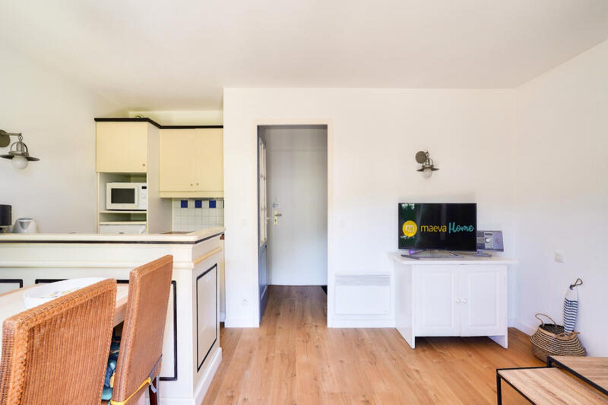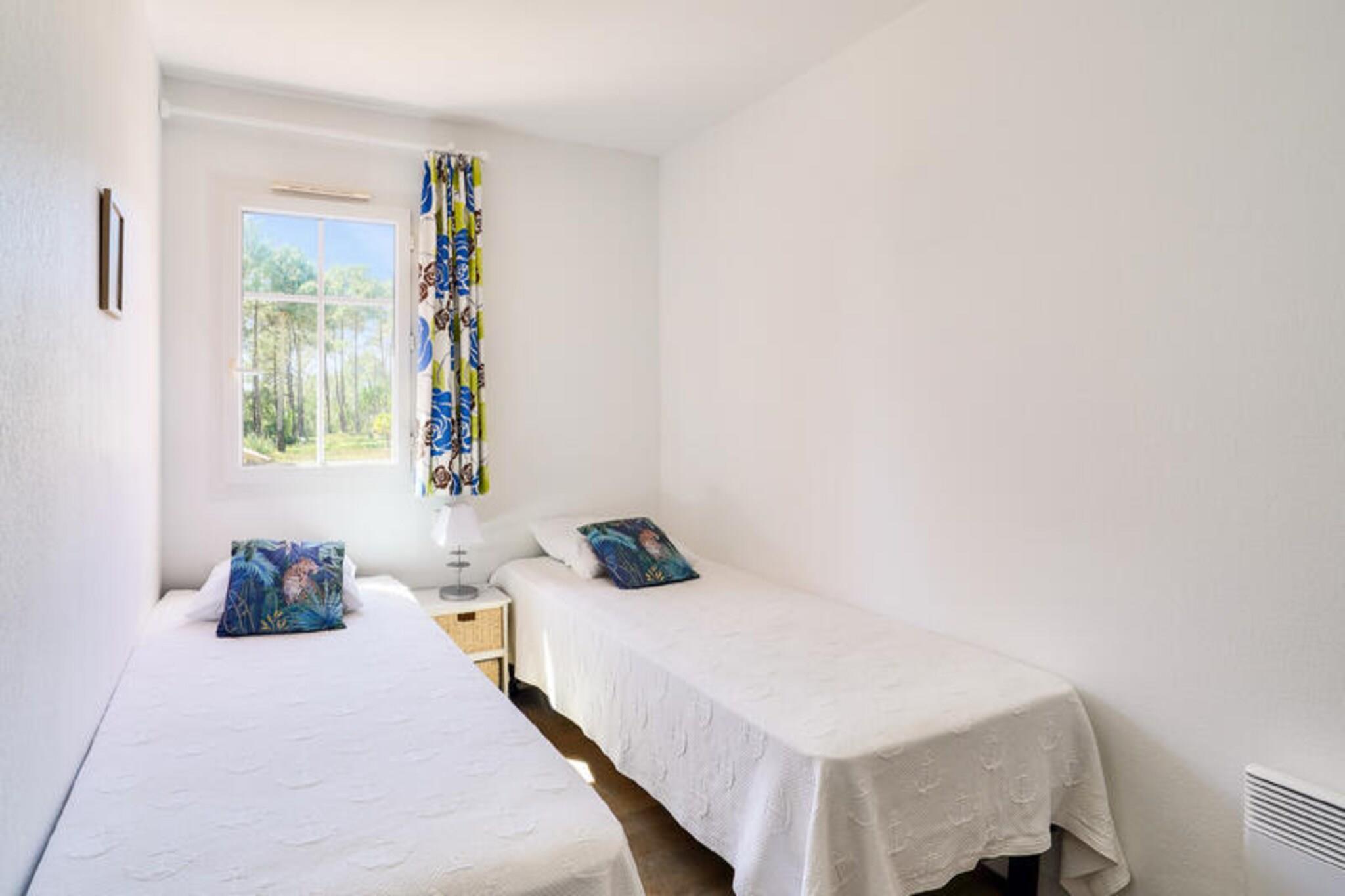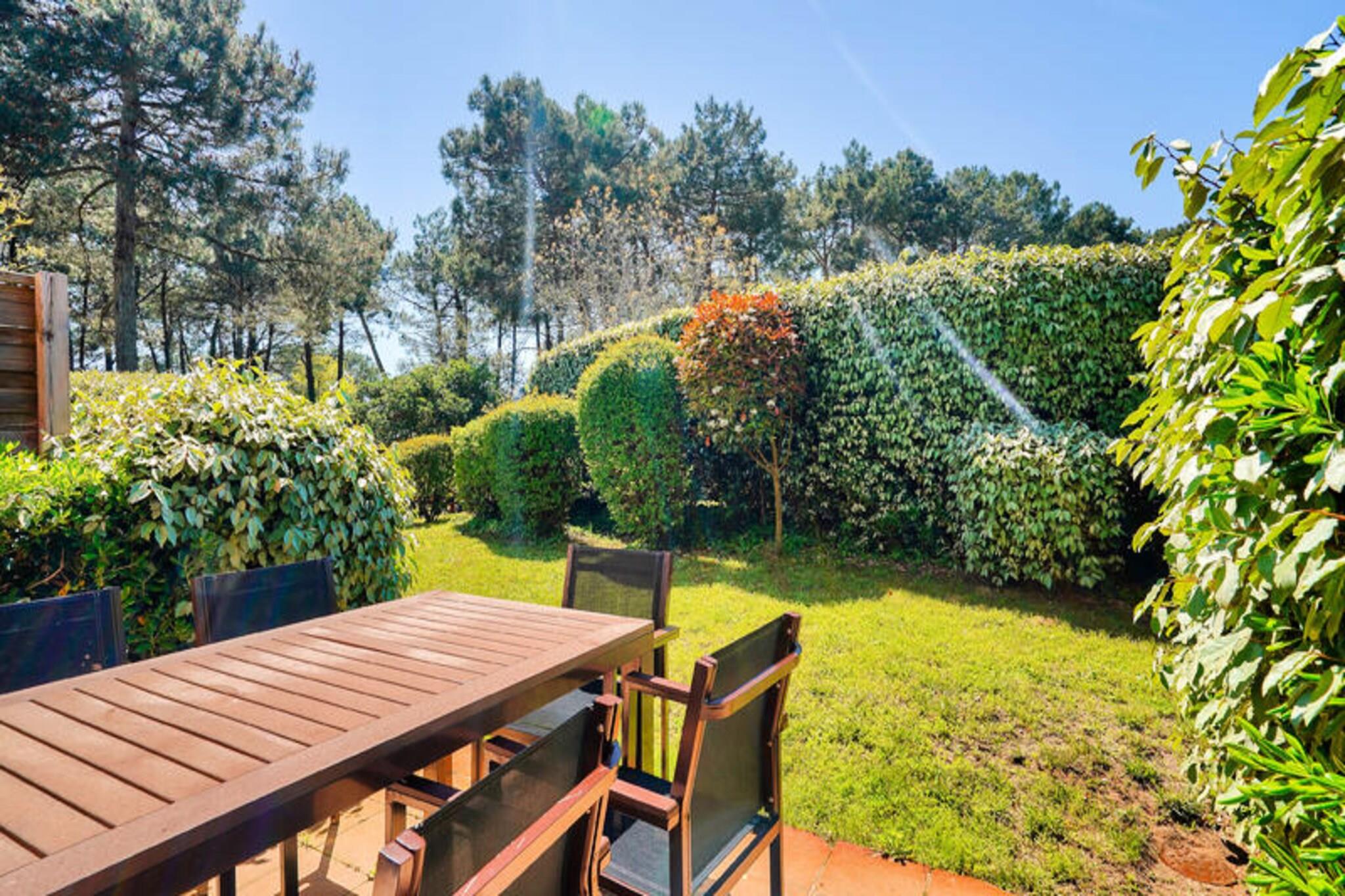 Located in the heart of a beautiful 4.6-hectare pine forest, this charming duplex holiday home offers a cozy retreat for families or groups. It features a comfortable living room with a sofa bed, a fully equipped kitchen, two bedrooms—one with a double bed and the other with two single beds—and a bathroom with a bathtub. The property is pet-friendly, allowing pets for an additional charge, making it an ideal choice for those traveling with their furry companions. The outdoor space includes a private garden, terrace, and parking, all facing southwest for plenty of sunlight. The location is perfect for exploring the region, with the beaches just 2 km away, offering a variety of activities including surfing. Guests can also enjoy nearby golf courses and cycling along scenic routes. The village offers various cafes and markets, providing a relaxed atmosphere to enjoy the local culture. The property also has access to an aquatic area with a swimming pool, paddling pool, and a range of sports facilities, including a beach volleyball court and multi-sport court. Inside, the apartment features an American-style kitchen, equipped with all the essentials for self-catering, and a separate toilet for added convenience. Guests can also enjoy the outdoor space with a garden and a terrace perfect for relaxation. The property is well-maintained with quality equipment, ensuring a comfortable stay.