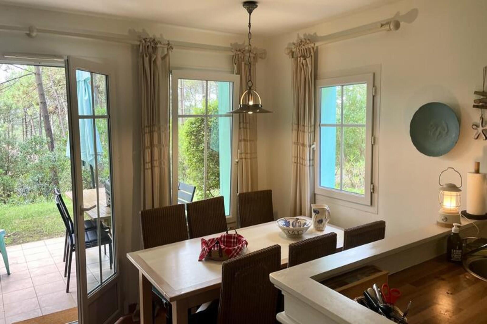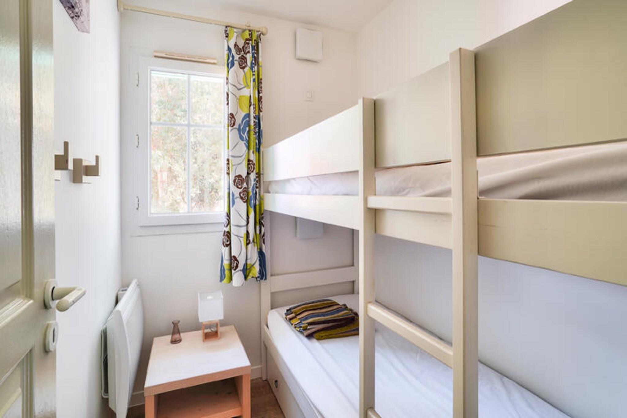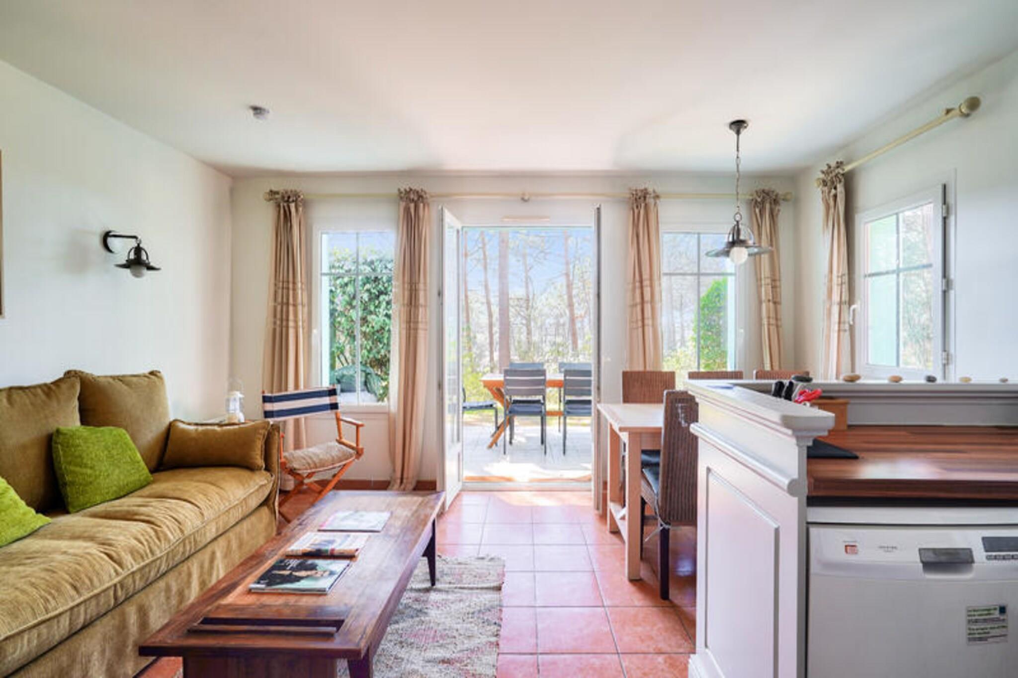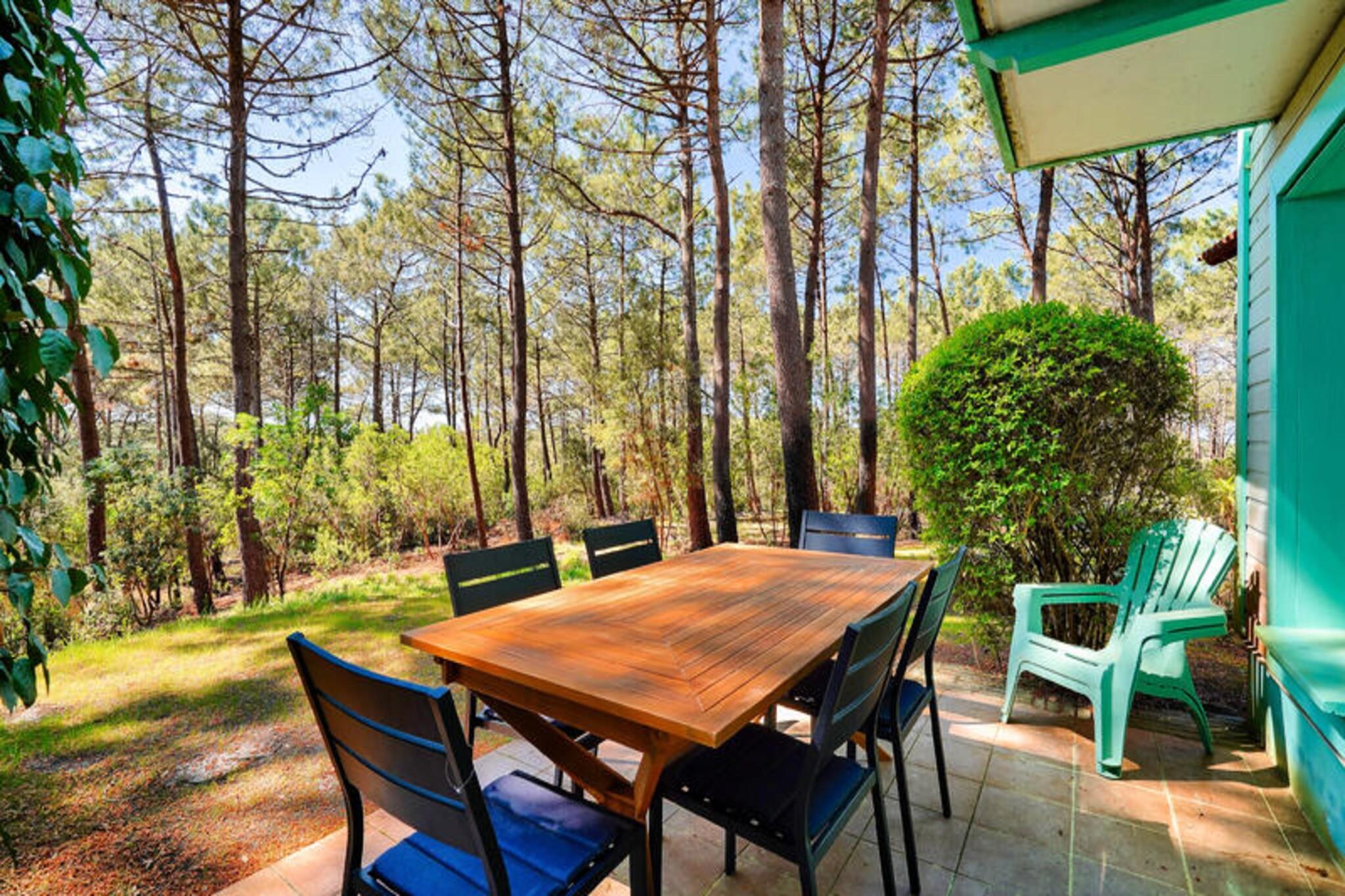 Nestled amidst a 4.6-hectare pine forest, this charming two-bedroom holiday home in Lacanau Les Pins offers a relaxing retreat just 2km from the beach. Part of Village Lacanau, the property boasts colorful architecture characteristic of the Landes region. Guests can enjoy free access to the on-site aquatic area (swimming pool + paddling pool), a beach volleyball court, a multi-sport court, and more. Bicy'cool offers bike rentals and Evolution 2 provides activities for all ages, from yoga to swimming classes. The area is a paradise for cyclists, with long stretches of beaches ideal for surfing. Lacanau town itself is also within easy reach. For an additional fee, guests can access the spa area at a partner facility, which includes discounts on massages and a free glass of champagne with dinner. This tastefully renovated duplex features a living room with a sofa bed, a well-equipped kitchen, two bedrooms, two bathrooms, a separate toilet, a terrace, a garden, and parking. The south-facing property offers beautiful forest views. The master bedroom has a double bed, the second bedroom has two single beds, and a cabin area with bunk beds provides additional sleeping space. In-bathroom amenities include a shower, bathtub, electric towel dryer, and hairdryer. Please note that Wi-Fi, bed linens, towels, and end-of-stay cleaning are all available for an additional charge.