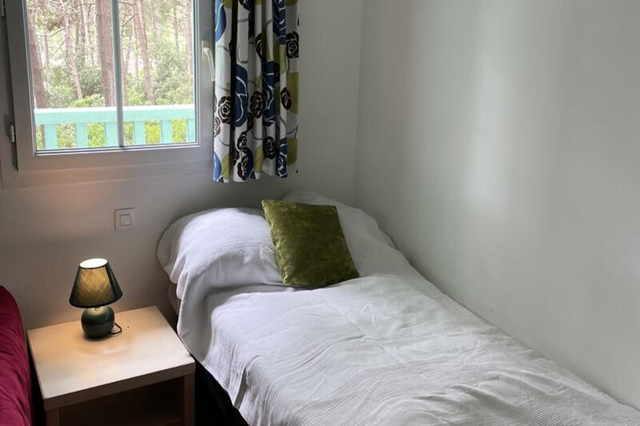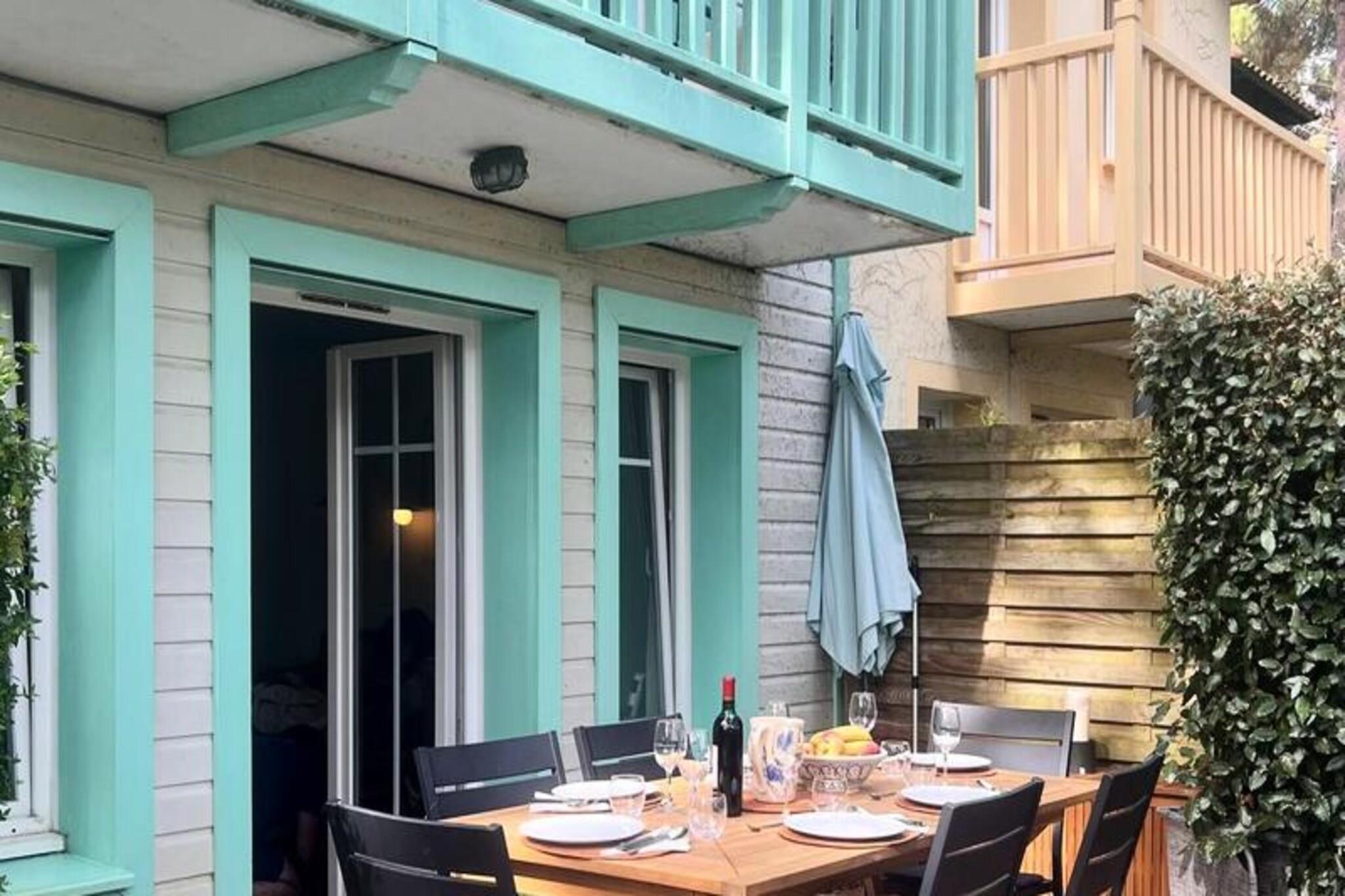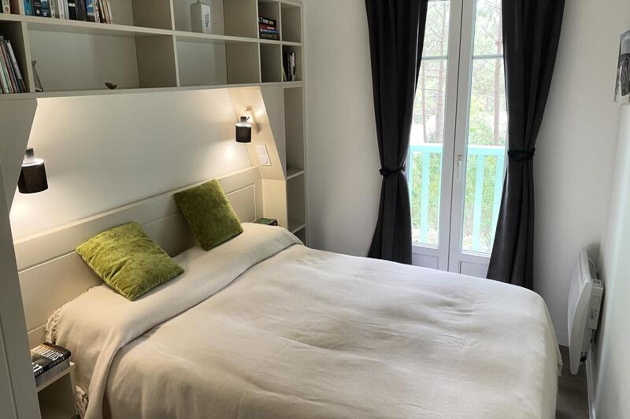 Nestled amidst a 4.6-hectare pine forest, this charming two-bedroom holiday home in Lacanau Les Pins offers a relaxing retreat just 2km from the beach. Part of Village Lacanau, the property boasts colorful architecture characteristic of the Landes region. Guests can enjoy free access to the on-site aquatic area (swimming pool + paddling pool), a beach volleyball court, a multi-sport court, and more. Bicy'cool offers bike rentals and Evolution 2 provides activities for all ages, from yoga to swimming classes. The area is a paradise for cyclists, with long stretches of beaches ideal for surfing. Lacanau town itself is also within easy reach. For an additional fee, guests can access the spa area at a partner facility, which includes discounts on massages and a free glass of champagne with dinner. This tastefully renovated duplex features a living room with a sofa bed, a well-equipped kitchen, two bedrooms, two bathrooms, a separate toilet, a terrace, a garden, and parking. The south-facing property offers beautiful forest views. The master bedroom has a double bed, the second bedroom has two single beds, and a cabin area with bunk beds provides additional sleeping space. In-bathroom amenities include a shower, bathtub, electric towel dryer, and hairdryer. Please note that Wi-Fi, bed linens, towels, and end-of-stay cleaning are all available for an additional charge.