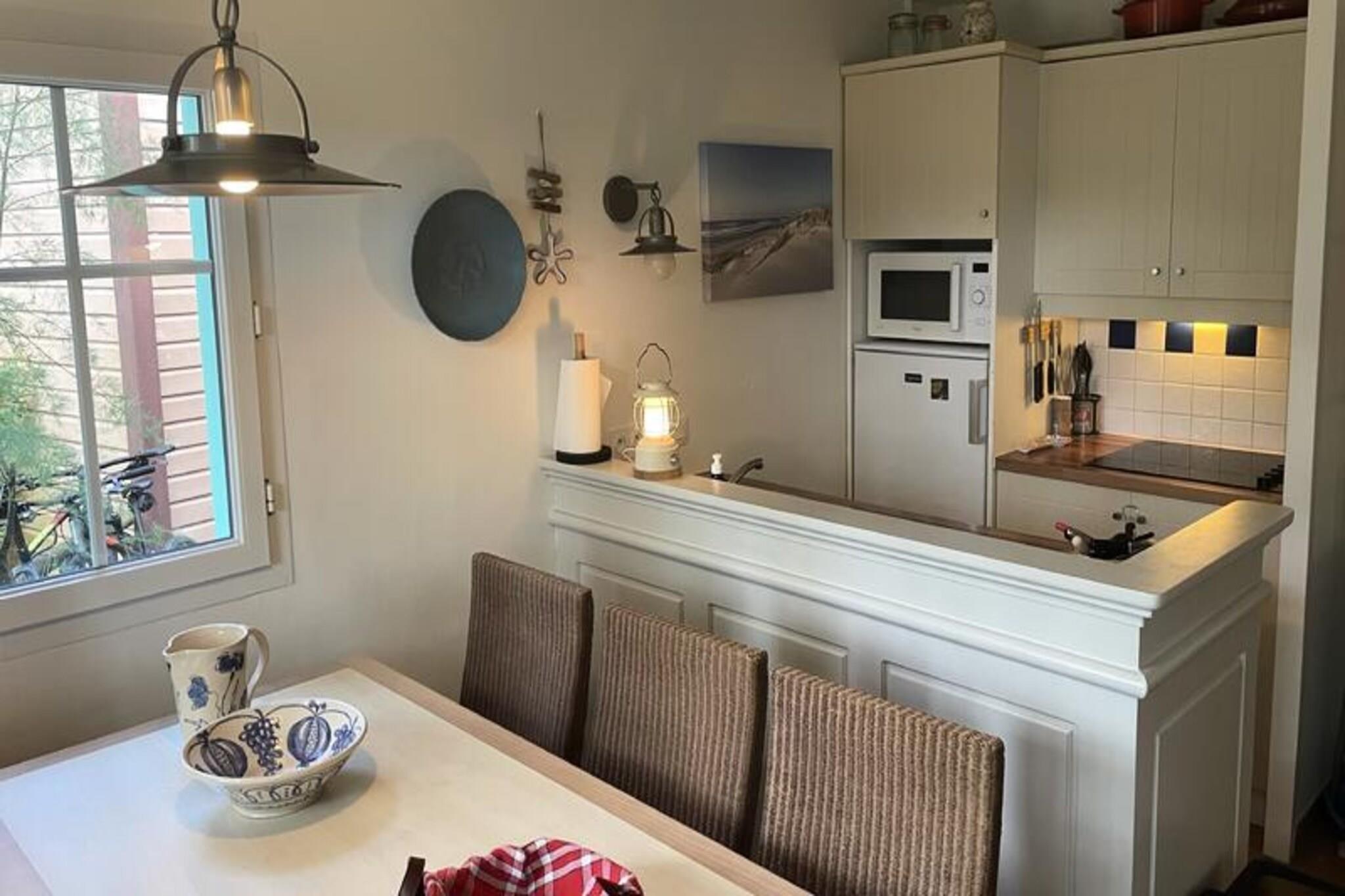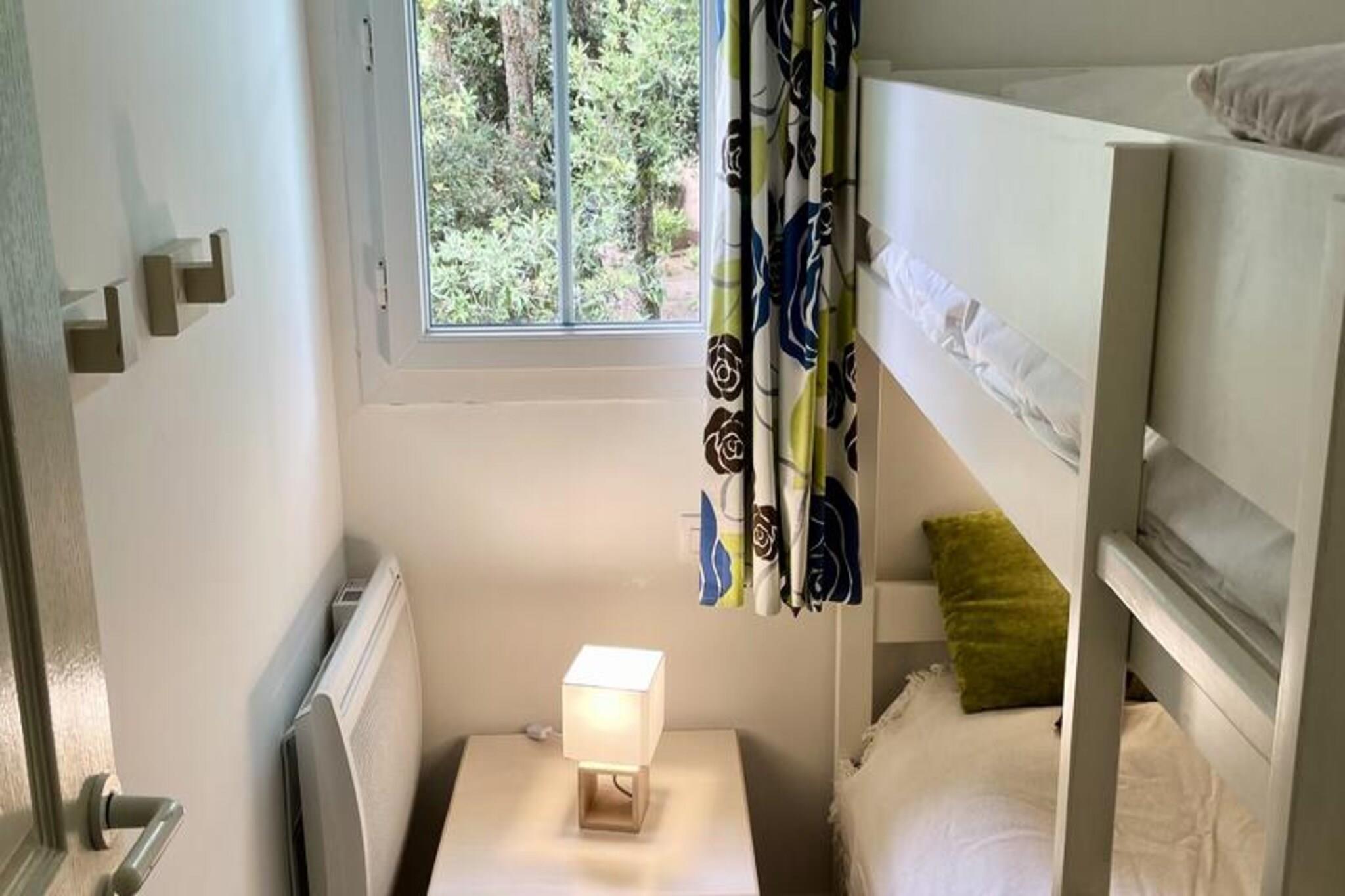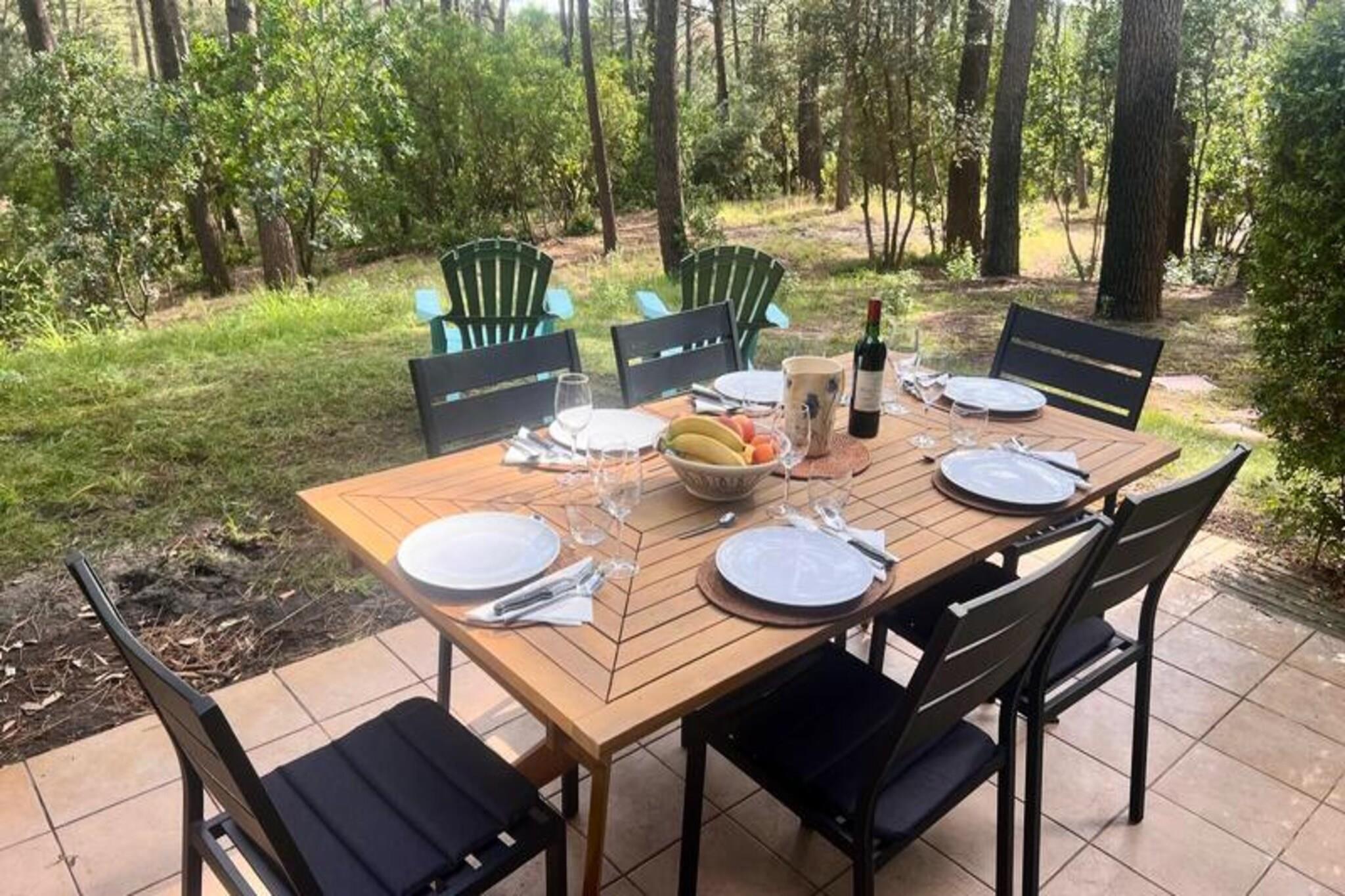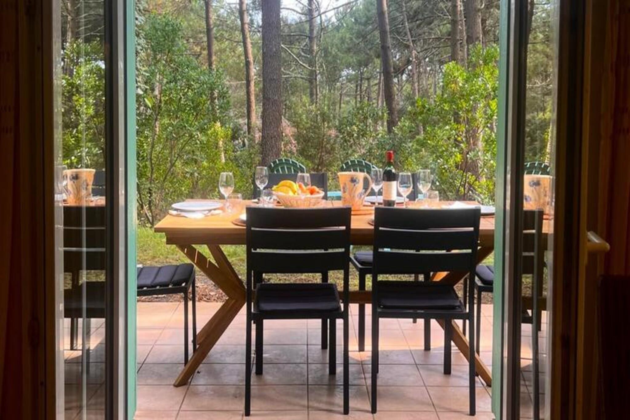 Nestled amidst a 4.6-hectare pine forest, this charming two-bedroom holiday home in Lacanau Les Pins offers a relaxing retreat just 2km from the beach. Part of Village Lacanau, the property boasts colorful architecture characteristic of the Landes region. Guests can enjoy free access to the on-site aquatic area (swimming pool + paddling pool), a beach volleyball court, a multi-sport court, and more. Bicy'cool offers bike rentals and Evolution 2 provides activities for all ages, from yoga to swimming classes. The area is a paradise for cyclists, with long stretches of beaches ideal for surfing. Lacanau town itself is also within easy reach. For an additional fee, guests can access the spa area at a partner facility, which includes discounts on massages and a free glass of champagne with dinner. This tastefully renovated duplex features a living room with a sofa bed, a well-equipped kitchen, two bedrooms, two bathrooms, a separate toilet, a terrace, a garden, and parking. The south-facing property offers beautiful forest views. The master bedroom has a double bed, the second bedroom has two single beds, and a cabin area with bunk beds provides additional sleeping space. In-bathroom amenities include a shower, bathtub, electric towel dryer, and hairdryer. Please note that Wi-Fi, bed linens, towels, and end-of-stay cleaning are all available for an additional charge.
