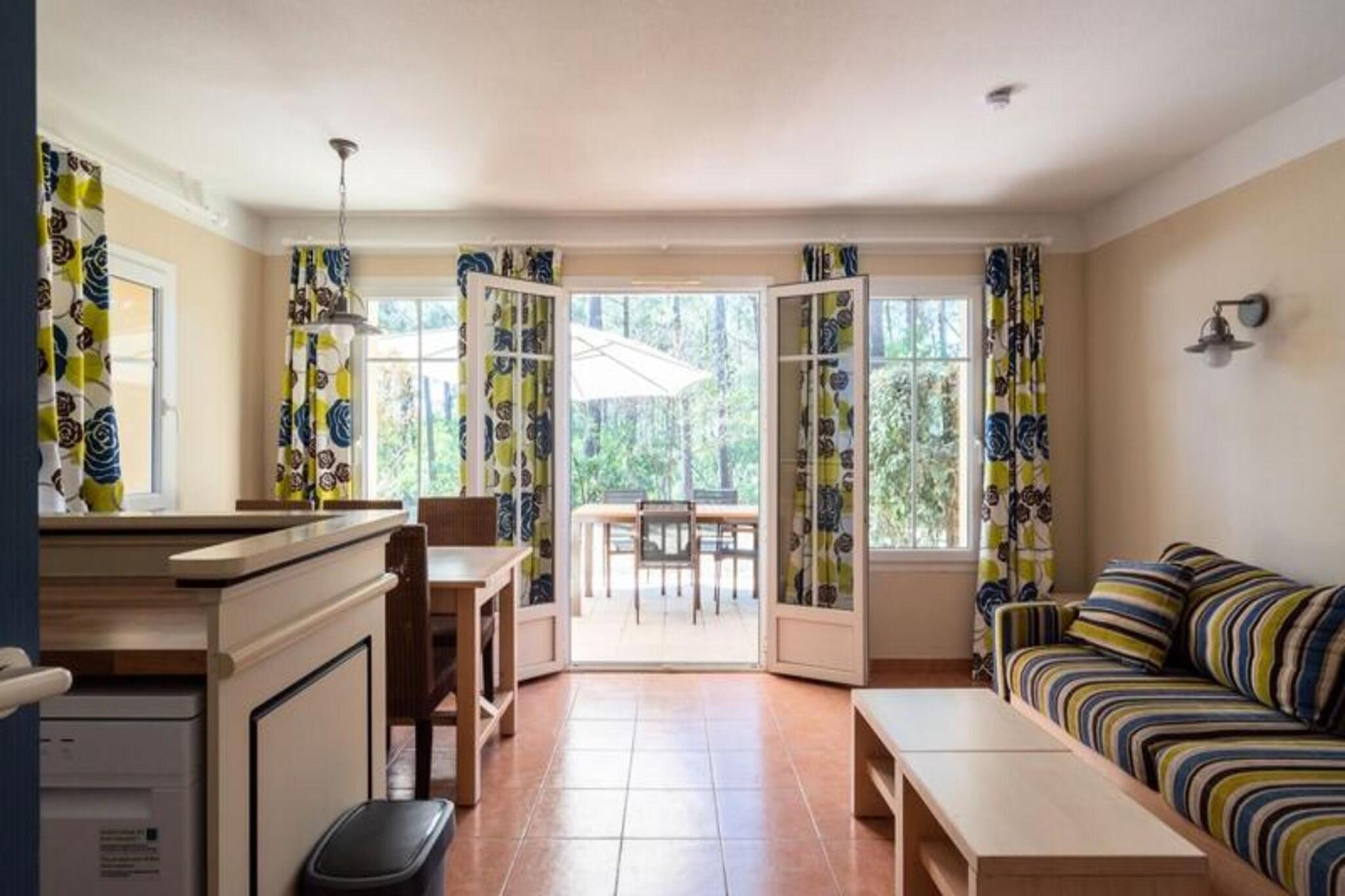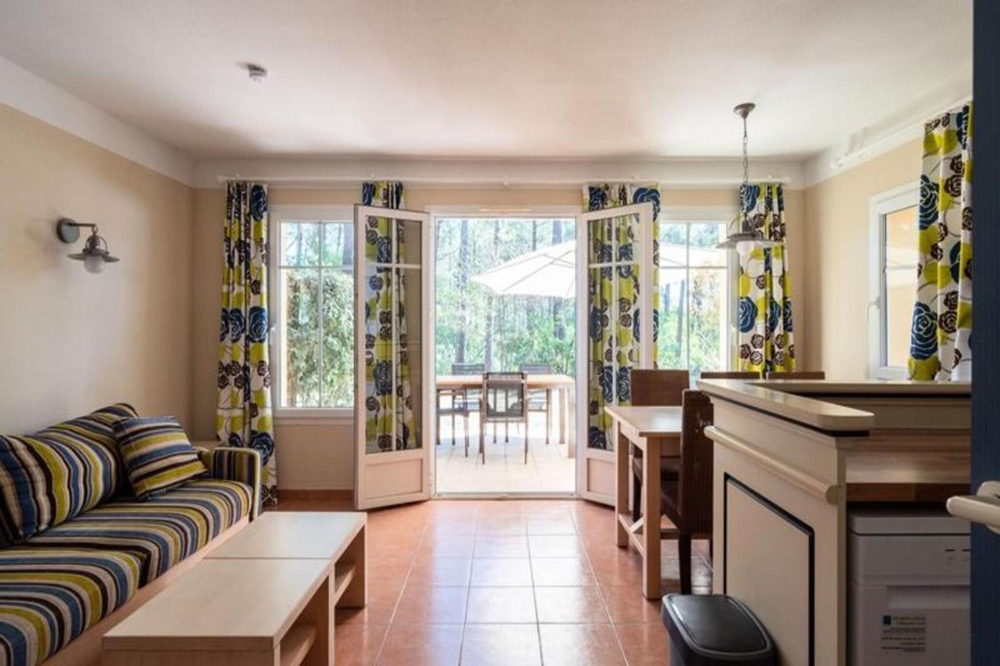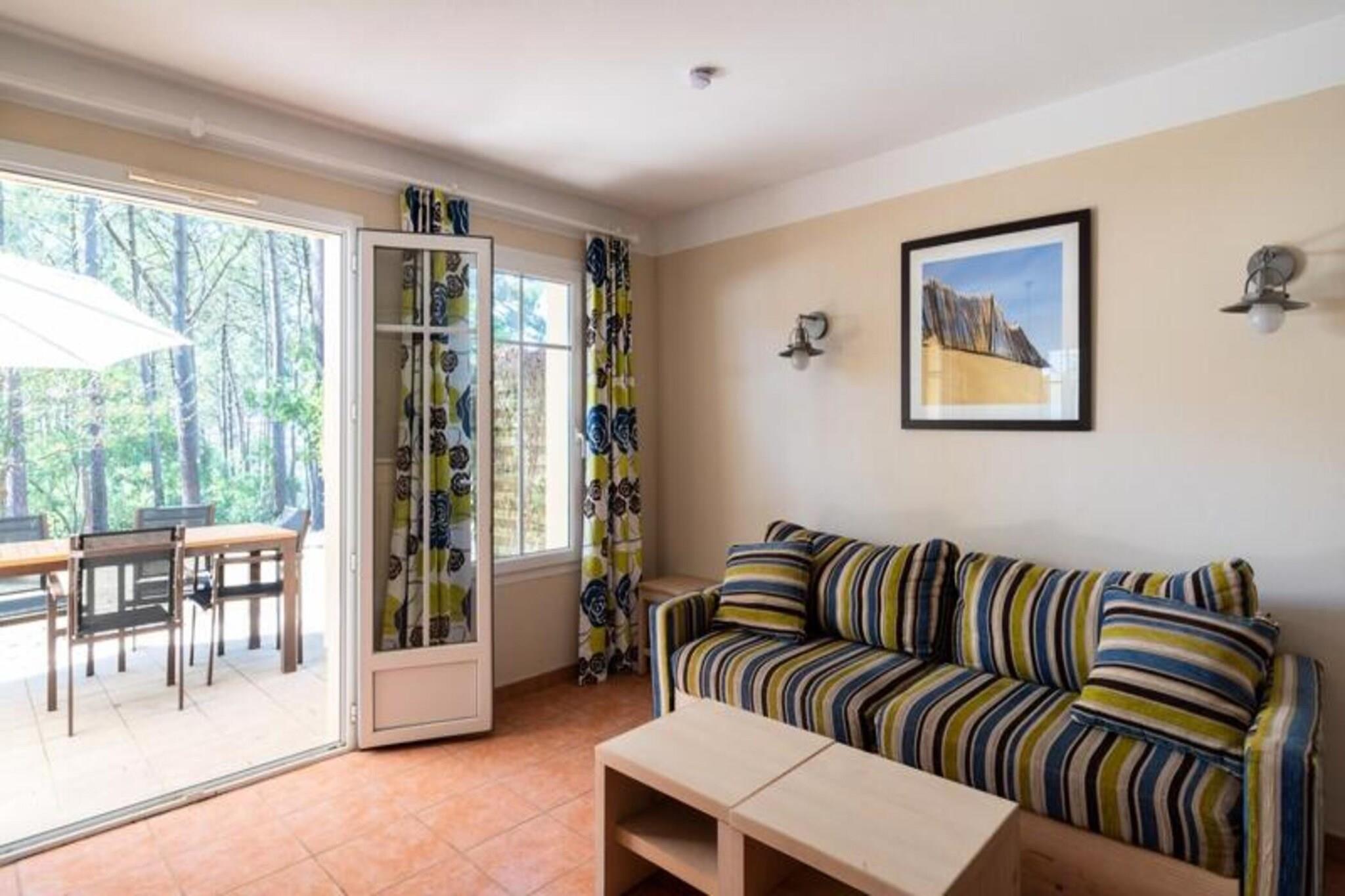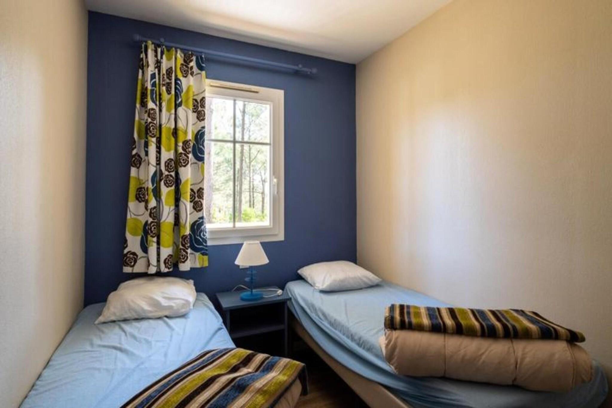 These private holiday homes, nestled within the serene pine forest of La Résidence Lacanau Les Pins, offer a charming retreat for families or small groups. The 54m² houses are designed in typical Landes-style with colorful pastel tones, and comfortably sleep up to 6 guests. The ground floor features a living room with a sofa bed, a semi-open kitchen, and a dining area with seating for 6. Upstairs, there are two bedrooms—one with a double bed and the other with two single beds—plus a cabin area with bunk beds, making it ideal for children. The property is non-pet-friendly, ensuring a peaceful stay for all guests. A separate bathroom with a bathtub-shower, a second shower room with WC, and an additional separate toilet ensure convenience for all. Just 2 kilometers from the beach, this location offers outdoor activities for all ages, including two golf courses, a swimming pool, volleyball, multi-sport, and pétanque courts. Cycling paths along the coast and Lacanau's surfing beaches are nearby. Guests can also rent bikes or join yoga and swimming lessons. This house features a fully equipped semi-open kitchen, living area, and a private garden with a terrace. Free outdoor parking is available, with additional amenities like Wi-Fi, bed linen, towels, and end-of-stay cleaning for an extra charge. Guests also enjoy free access to the aquatic area and discounts at the nearby Vital Parc spa.