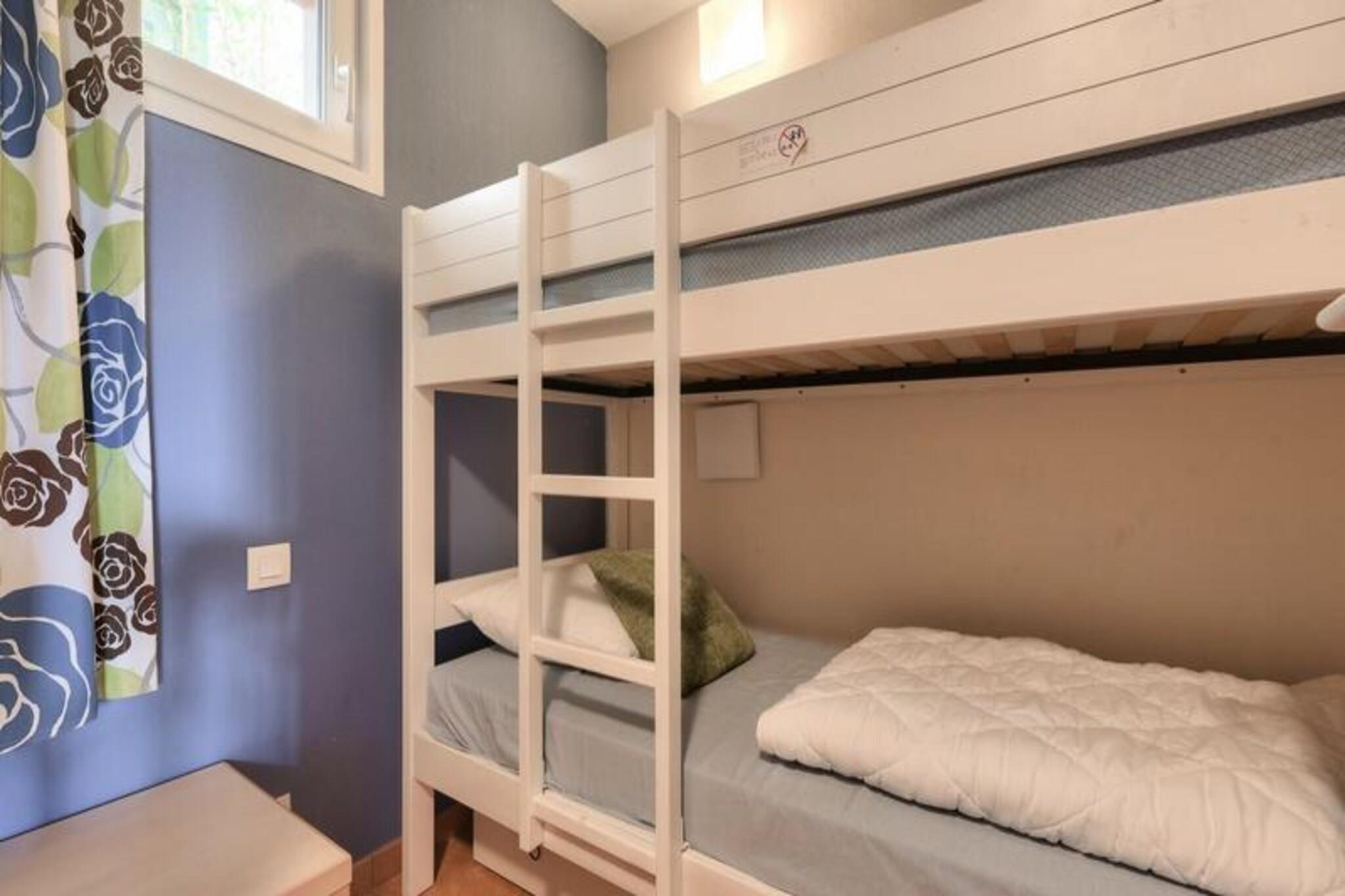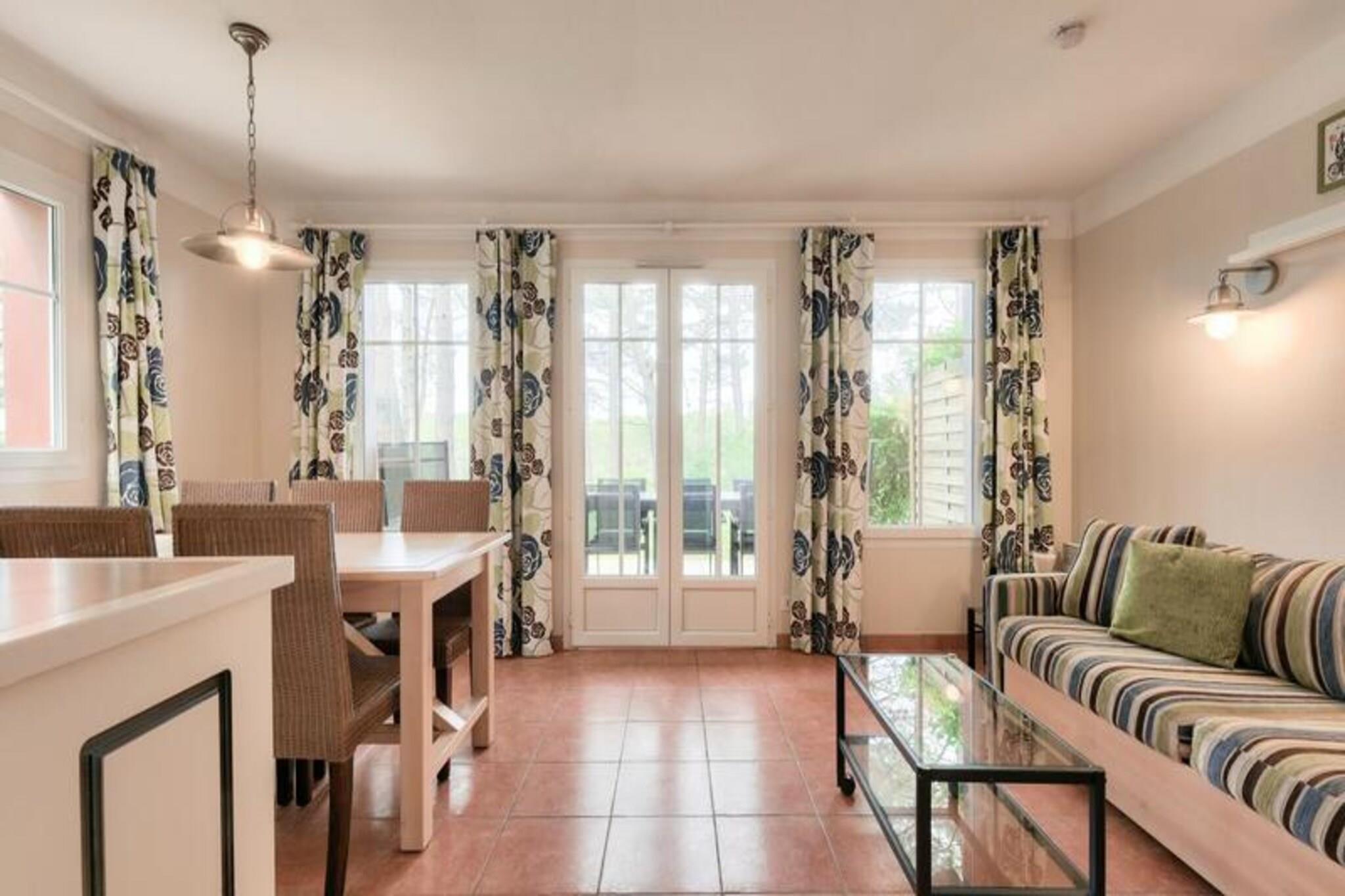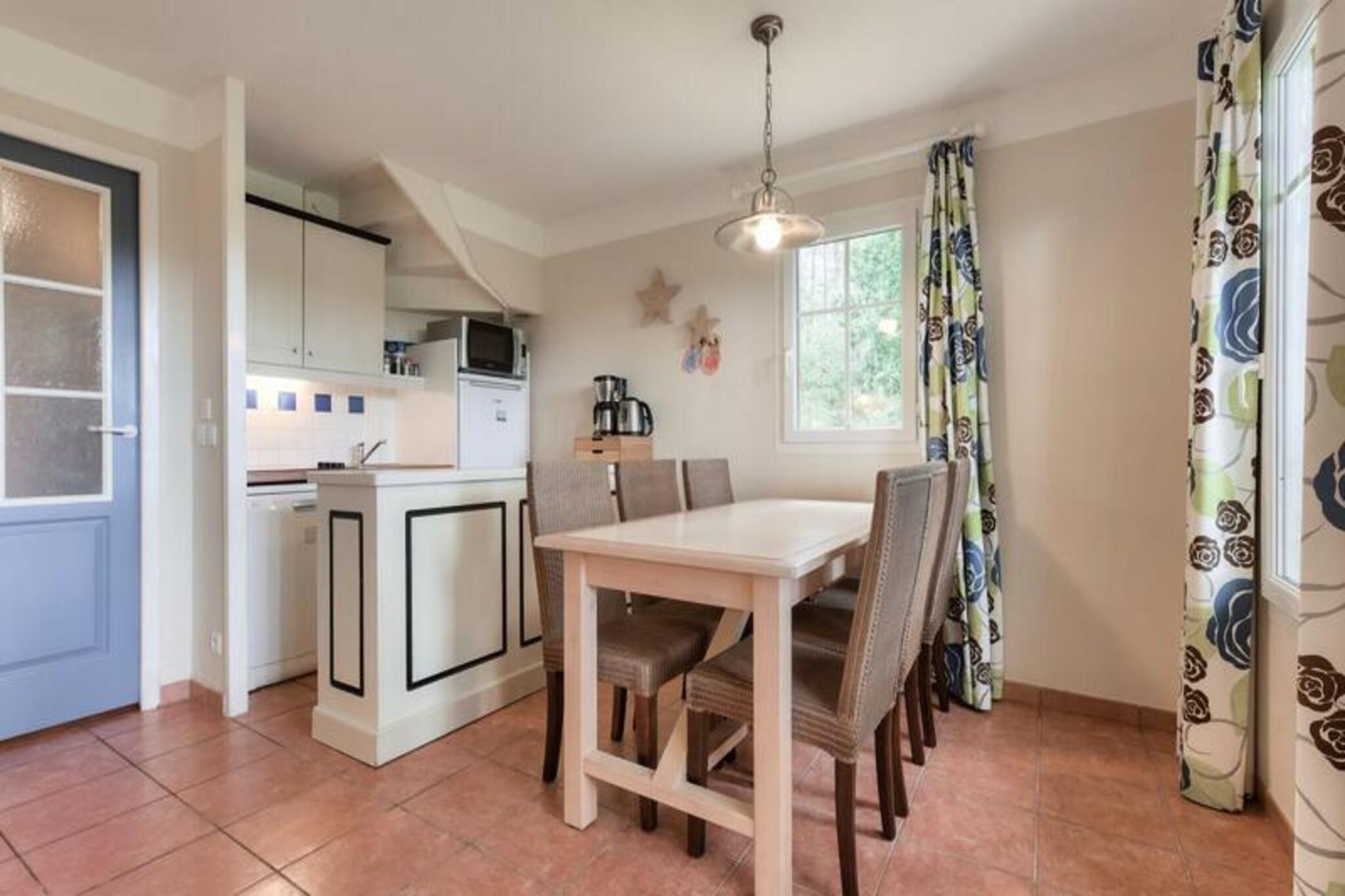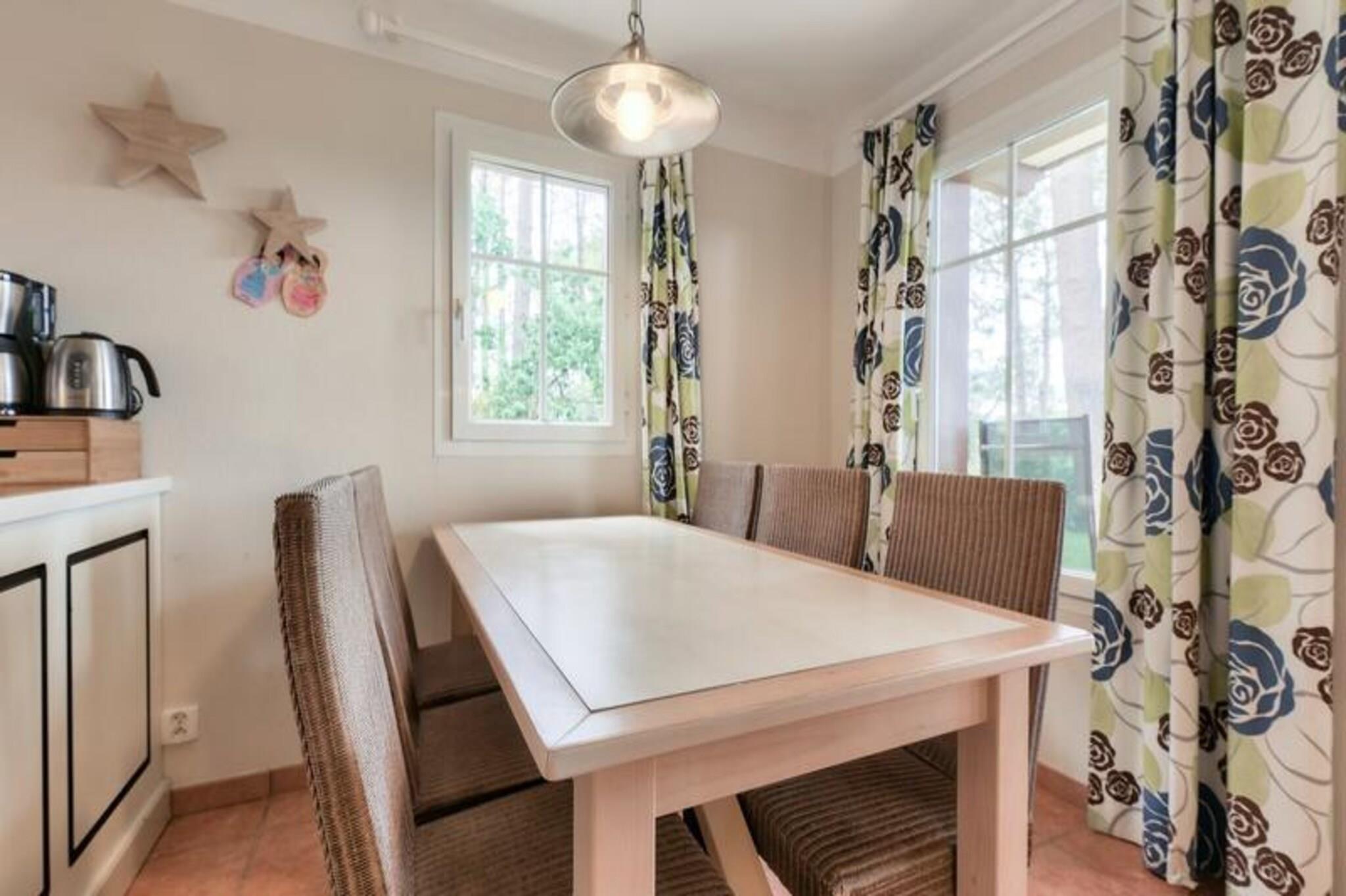 This spacious holiday home, located in a picturesque 5-hectare pine forest, is perfect for a family vacation. With a capacity for up to 8 people, it offers two comfortable bedrooms, a cabin area with bunk beds, and two bathrooms. The master bedroom has a double bed, while the second bedroom includes two single beds. The living room features a sofa bed, and the house also provides a private garden, terrace with a view of the golf course, and free outdoor parking. Situated just 2 km from the beach, this property is a paradise for outdoor enthusiasts. The surrounding area offers various activities such as cycling, surfing, and water sports. The nearby François Léotard nature base is perfect for nature walks, and there are two golf courses within the vicinity for golf lovers. A range of additional services, including bike rentals and yoga classes, is available, making it ideal for a variety of interests. The house is equipped with a fully functional American kitchen, a spacious living area, and two well-maintained bathrooms—one with a bathtub and the other with a shower. For relaxation, guests can enjoy the large swimming pool and paddling pool, open from May to September. Other amenities include a terrace with seating, a garden, and easy access to various local attractions.