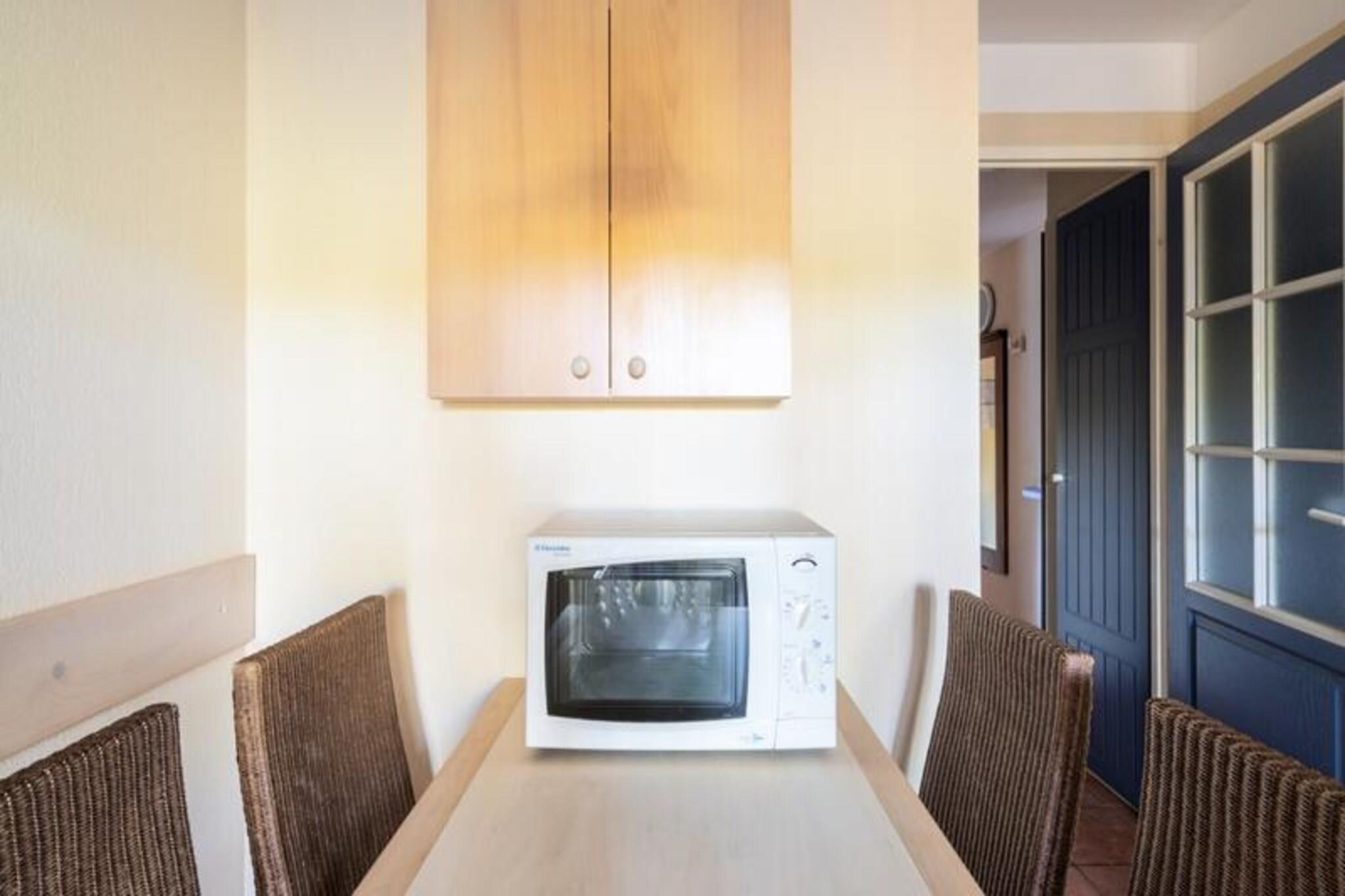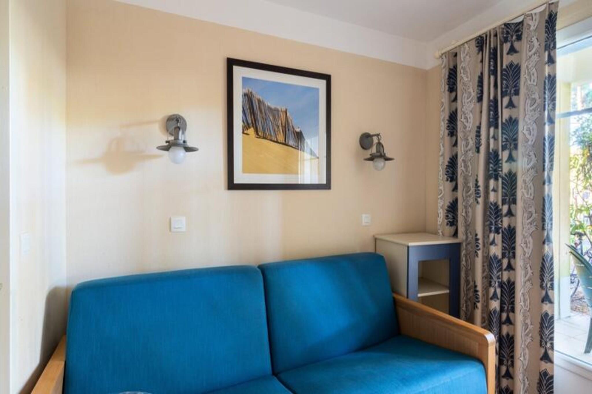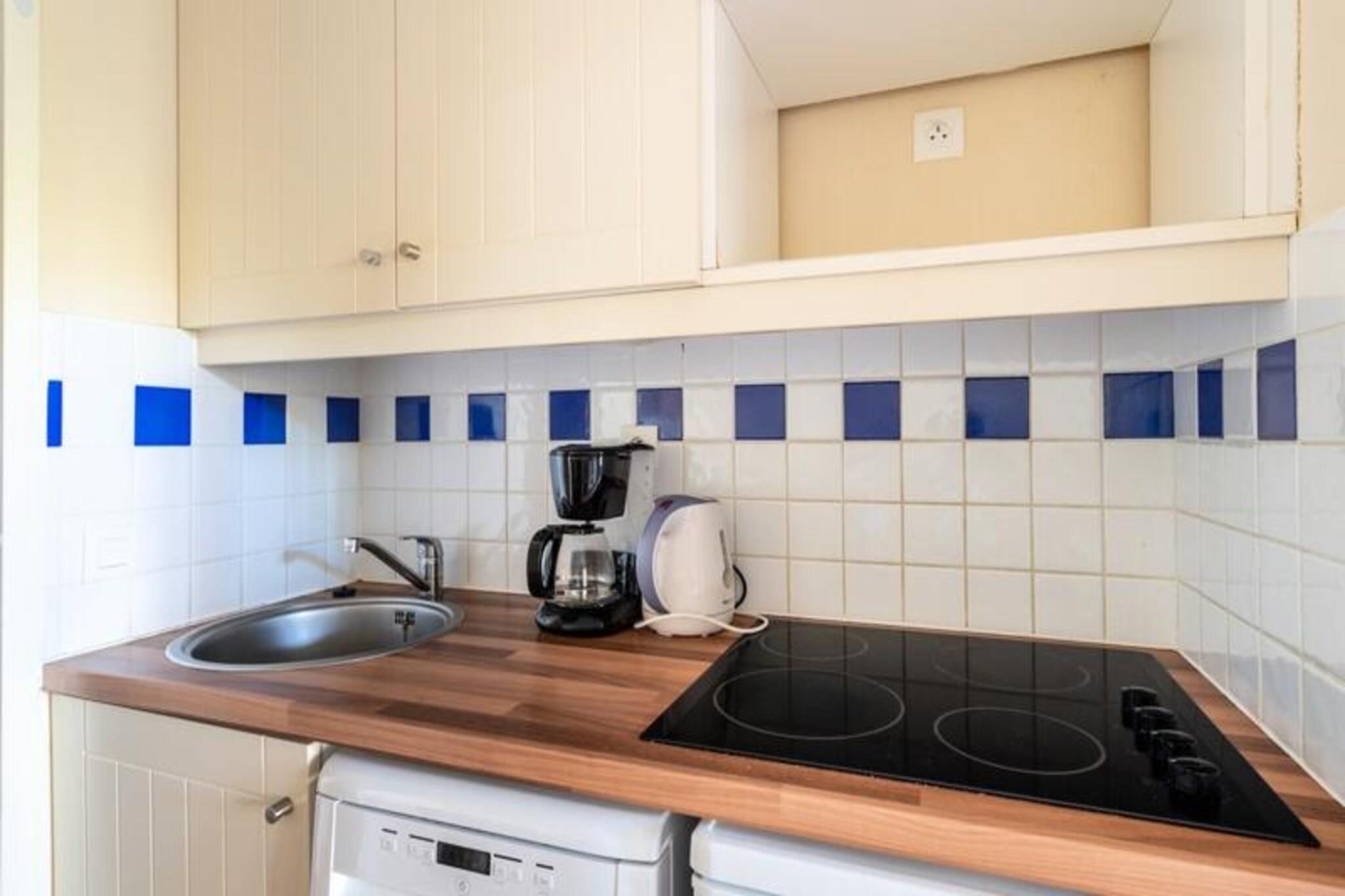 This charming holiday apartment is located on the ground floor of a building in a beautiful pine forest, offering a peaceful retreat for up to 4 guests. The living room features a sofa bed for two, and the bedroom is furnished with two single beds. The property is pet-friendly, allowing you to bring along your furry companions. End-of-stay cleaning is mandatory and can be arranged for your convenience. The apartment is just 2 km from the beach, making it an ideal location for those who love the ocean and water sports. The surrounding area is a cyclist's paradise with long, straight bike paths. In addition, guests can enjoy nearby attractions such as two golf courses, a beach volleyball court, a multi-sport field, and a small children's playground. For additional activities, the area offers bike rentals, yoga classes, and swimming lessons through local service providers. Inside, the apartment features a well-equipped open kitchen, a comfortable living area, and a bathroom with a bathtub-shower combo. The terrace and garden offer a relaxing space to enjoy the outdoors. There is also free parking available on-site, making it easy for guests to explore the region by car.