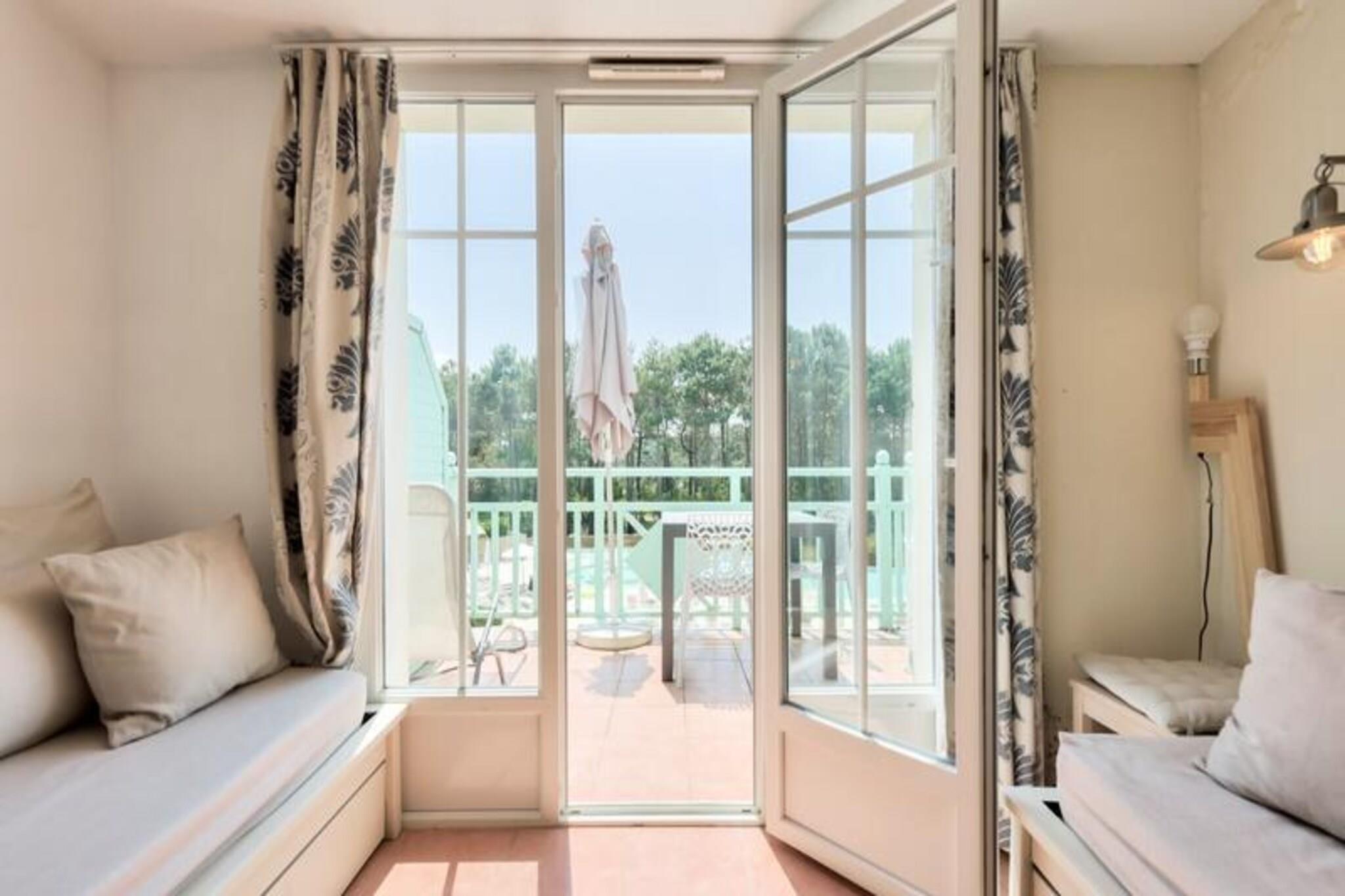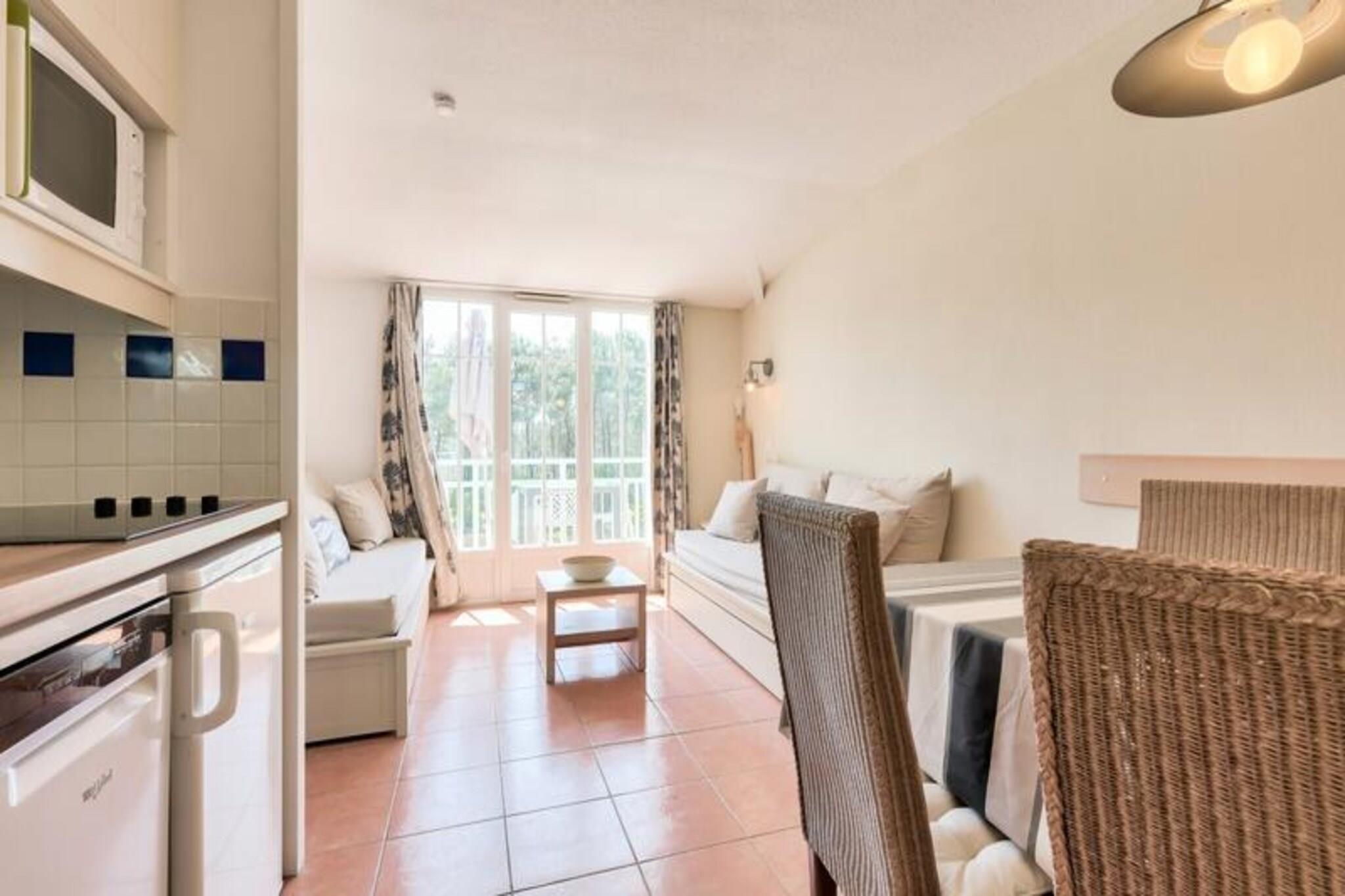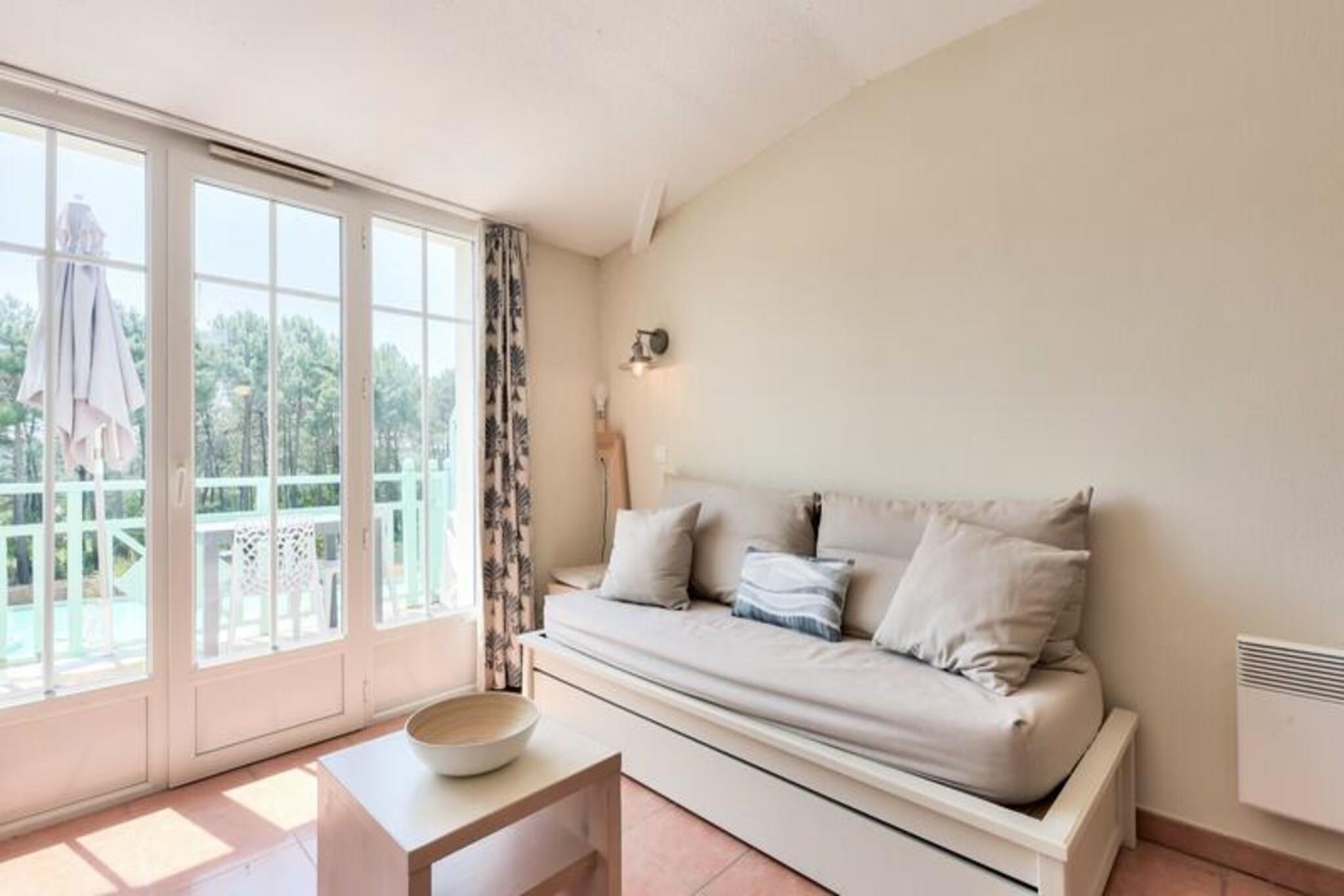 Nestled within a tranquil pine forest, this charming holiday home offers an idyllic retreat just 2 km from the beach. The accommodation features a cozy bedroom with a double bed, a spacious living area with a sofa bed, and a semi-open kitchen for your convenience. Guests can unwind on the south-facing balcony or enjoy free access to an outdoor aquatic area with a pool and paddling pool, open seasonally. Additional amenities include free outdoor parking, WiFi (available for an extra fee), and pet-friendly options upon request. Explore the surrounding area, a haven for cycling enthusiasts with scenic trails leading to nearby sandy beaches. The residence is surrounded by two golf courses, perfect for a relaxing game. Guests can also enjoy local attractions like Lacanau’s cafes, markets, and restaurants. For adventure seekers, water sports, including surfing and paddleboarding, are just a stone’s throw away. Activities like bike rentals and yoga classes are also available through nearby providers. Inside, the holiday home is thoughtfully equipped with modern conveniences. The semi-open kitchen includes a dining table and chairs, perfect for self-catering meals. The bathroom features a bathtub with an overhead shower, heated towel rails, and storage space. A separate toilet adds convenience, while the balcony provides a private outdoor space to relax and soak in the serene surroundings.