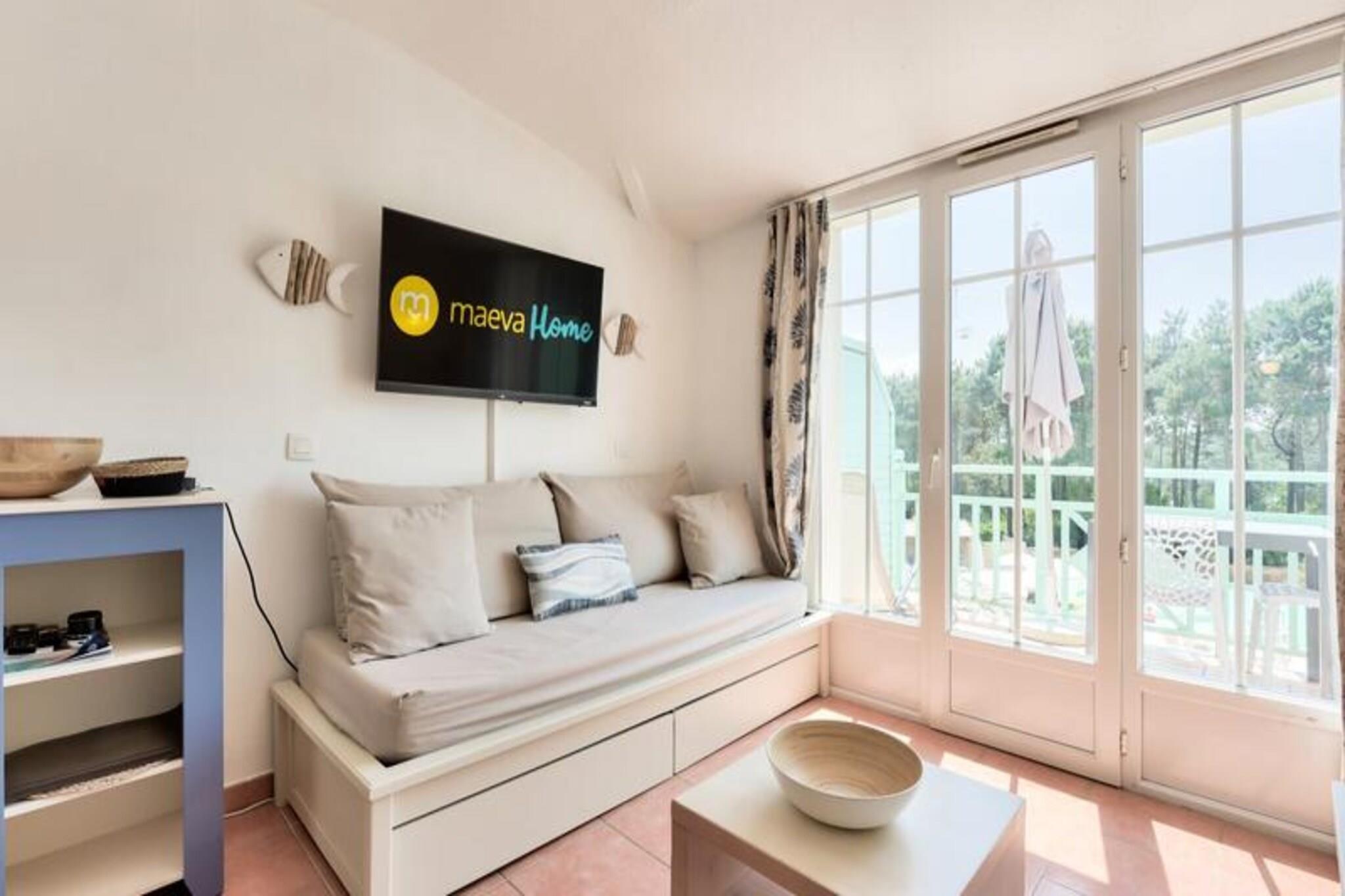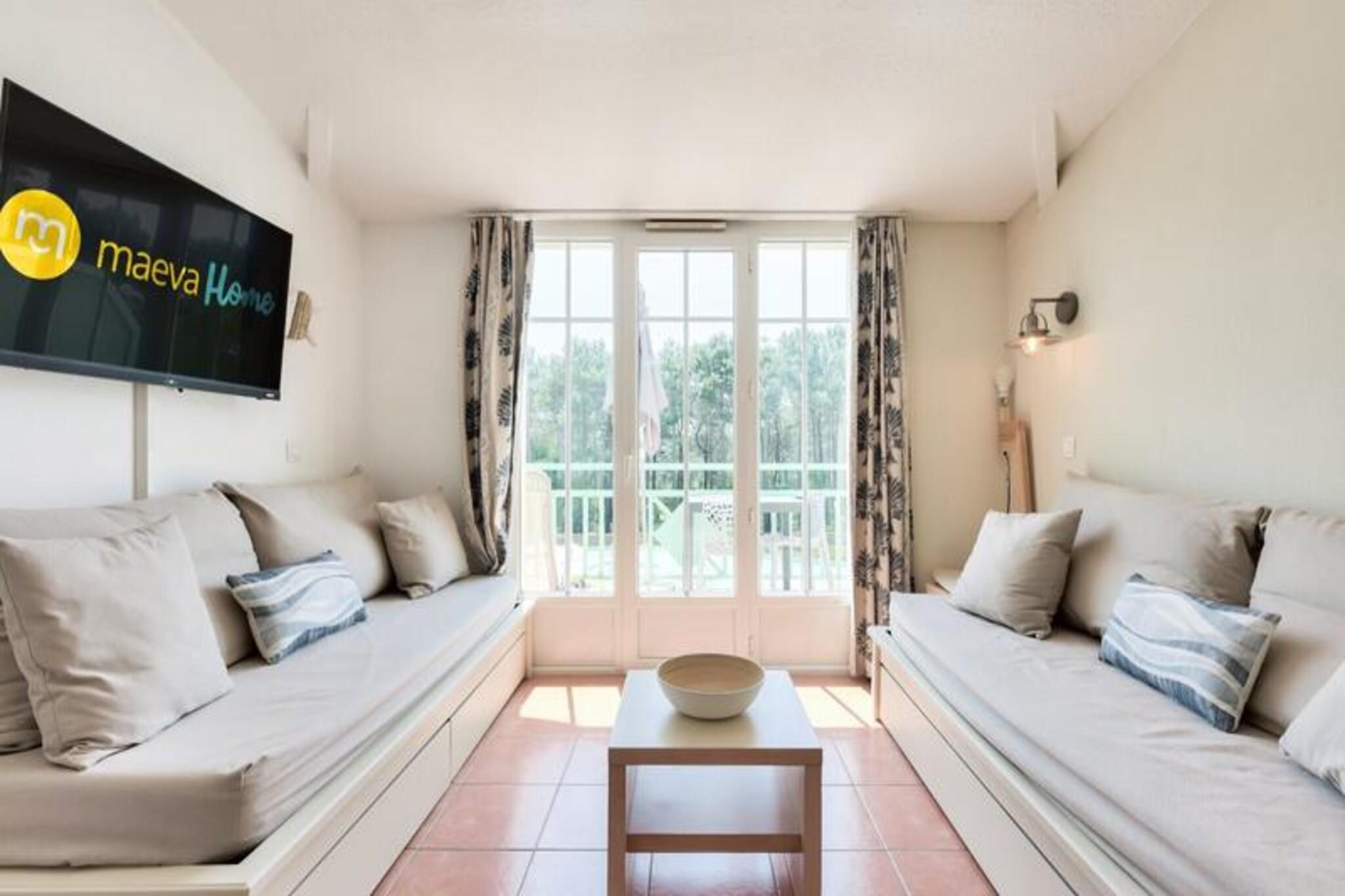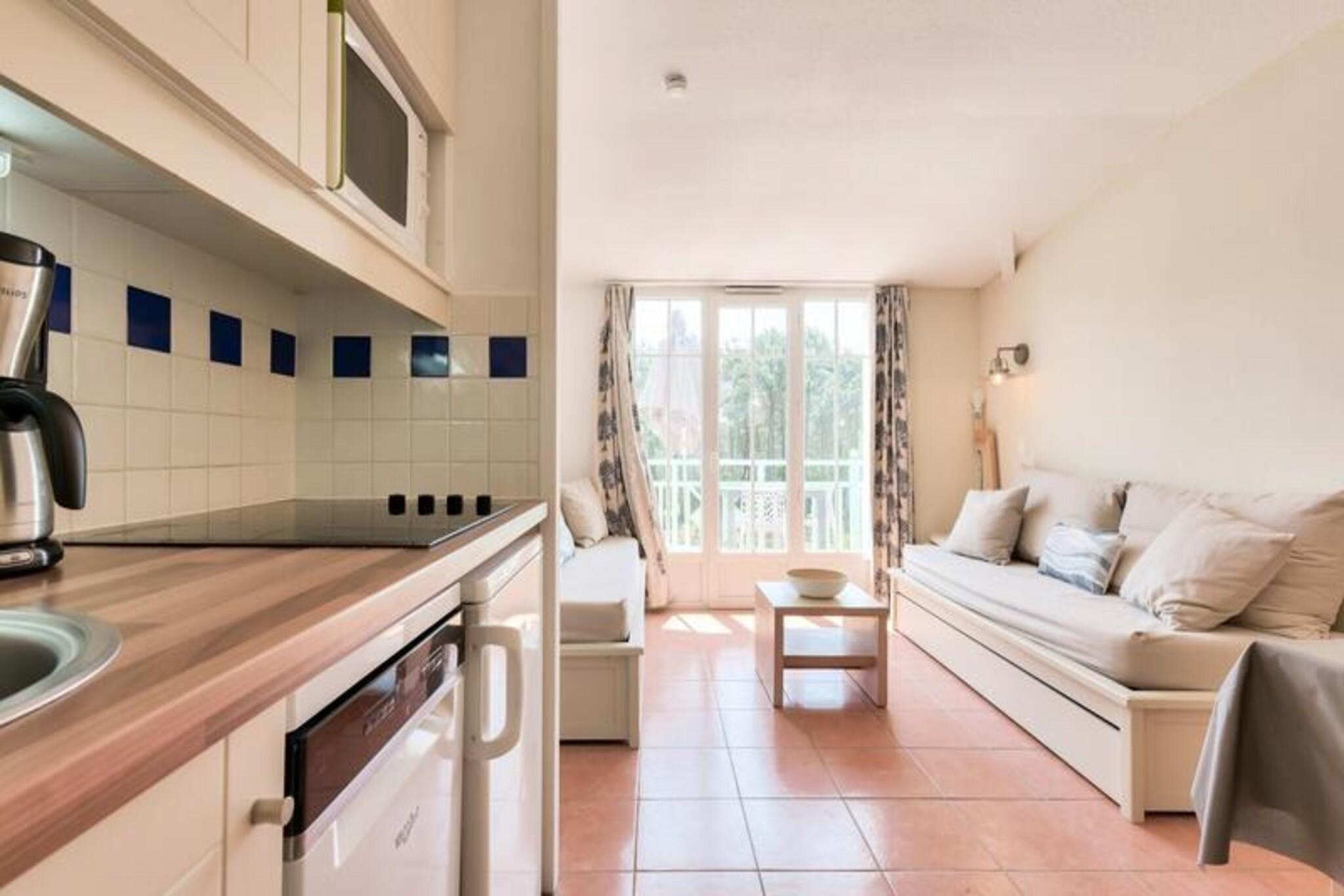 Nestled within a tranquil pine forest, this charming holiday home offers an idyllic retreat just 2 km from the beach. The accommodation features a cozy bedroom with a double bed, a spacious living area with a sofa bed, and a semi-open kitchen for your convenience. Guests can unwind on the south-facing balcony or enjoy free access to an outdoor aquatic area with a pool and paddling pool, open seasonally. Additional amenities include free outdoor parking, WiFi (available for an extra fee), and pet-friendly options upon request. Explore the surrounding area, a haven for cycling enthusiasts with scenic trails leading to nearby sandy beaches. The residence is surrounded by two golf courses, perfect for a relaxing game. Guests can also enjoy local attractions like Lacanau’s cafes, markets, and restaurants. For adventure seekers, water sports, including surfing and paddleboarding, are just a stone’s throw away. Activities like bike rentals and yoga classes are also available through nearby providers. Inside, the holiday home is thoughtfully equipped with modern conveniences. The semi-open kitchen includes a dining table and chairs, perfect for self-catering meals. The bathroom features a bathtub with an overhead shower, heated towel rails, and storage space. A separate toilet adds convenience, while the balcony provides a private outdoor space to relax and soak in the serene surroundings.
