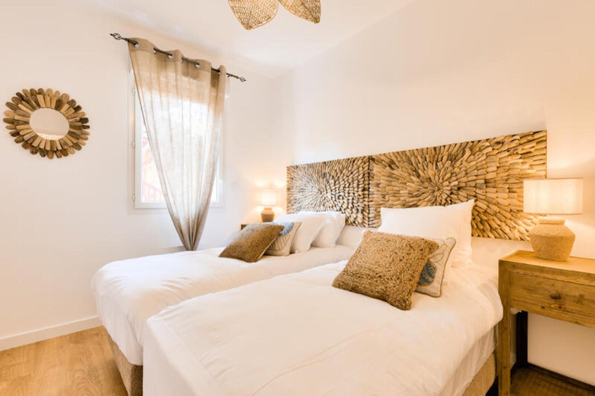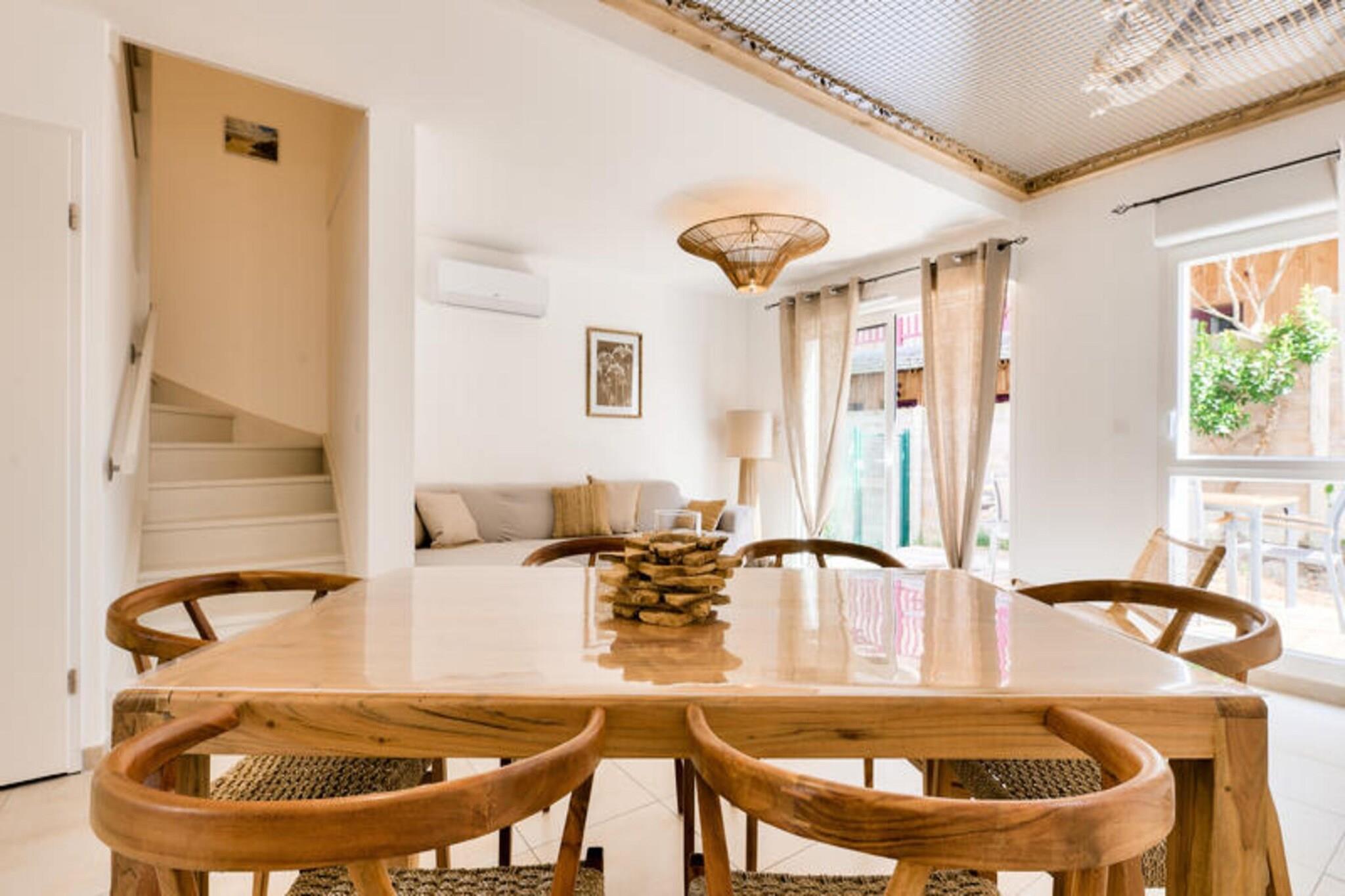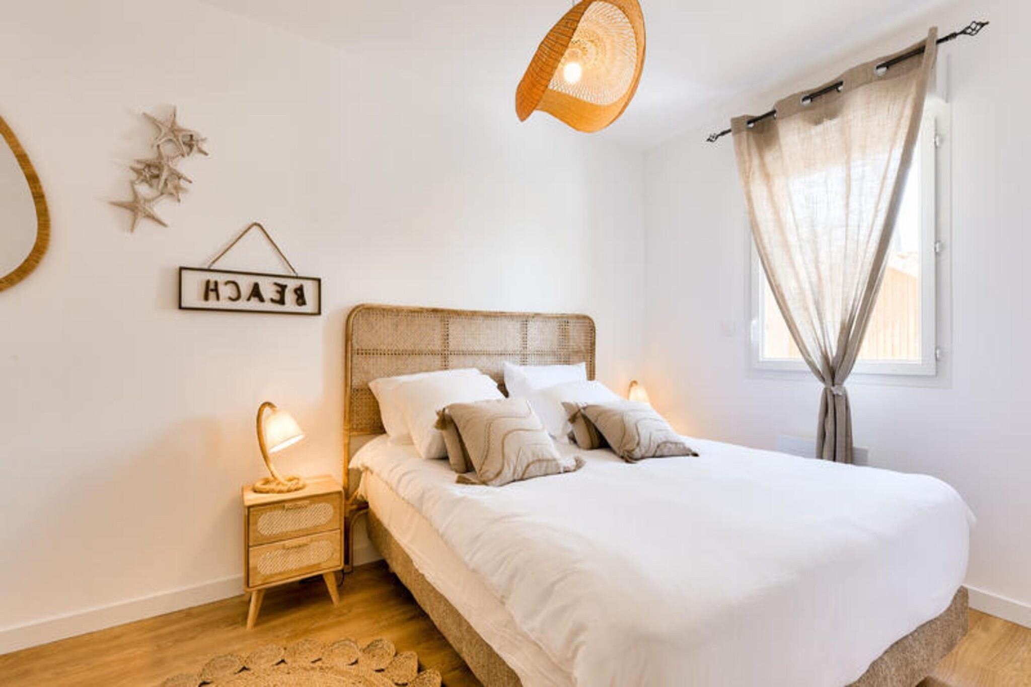 This charming 72m² holiday home offers two bedrooms, including one with a double bed and the other with two single beds. The property is pet-friendly (with a supplement) and features two bathrooms, one with a shower and the other with a bathtub. It also has a separate toilet and a mezzanine space with a suspended net, perfect for both children and adults. Two parking spaces are provided for added convenience. Located just a short walk from the city center, this holiday home is close to shops, cafes, and markets, making it easy to explore the local area. For beach lovers, the property has direct access to the sea, while several attractions and activities are just a few hundred meters away, ensuring there’s always something to do nearby. The home features a semi-open kitchen equipped with all the essentials, including a washing machine for added convenience. The living area opens onto a sunny south-facing terrace, ideal for enjoying the outdoors. The garden provides a peaceful retreat, making it perfect for relaxation and outdoor meals.