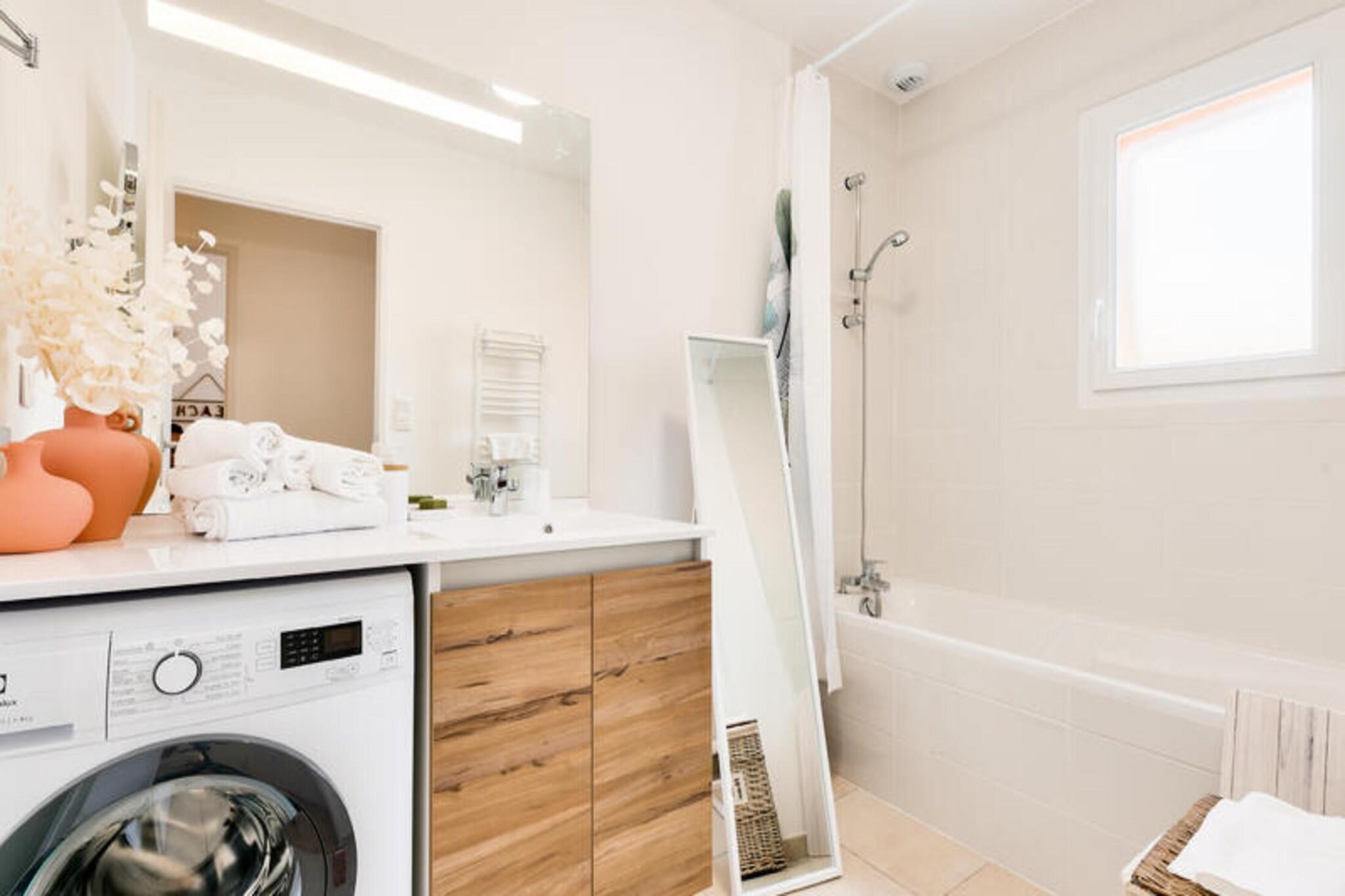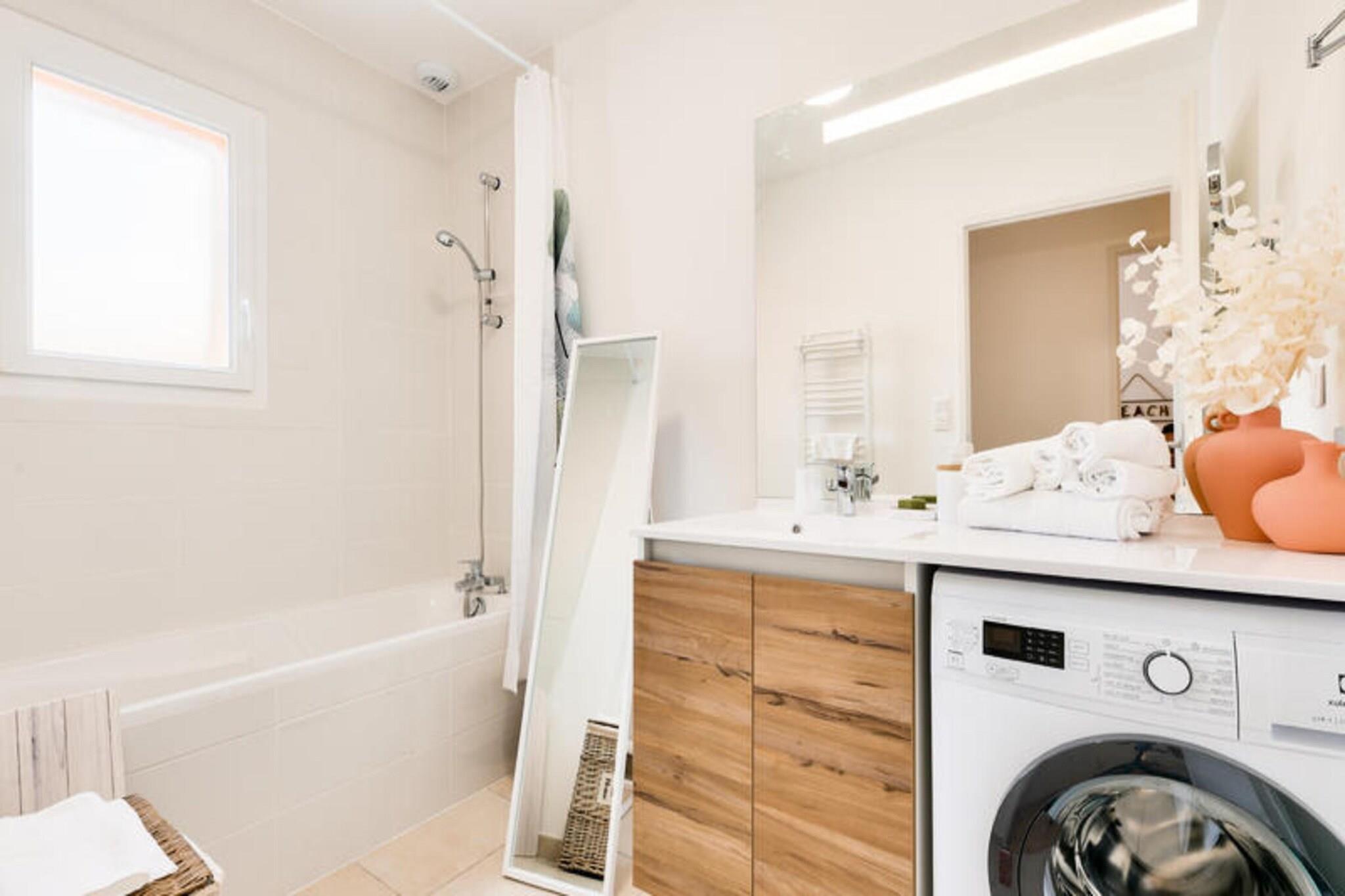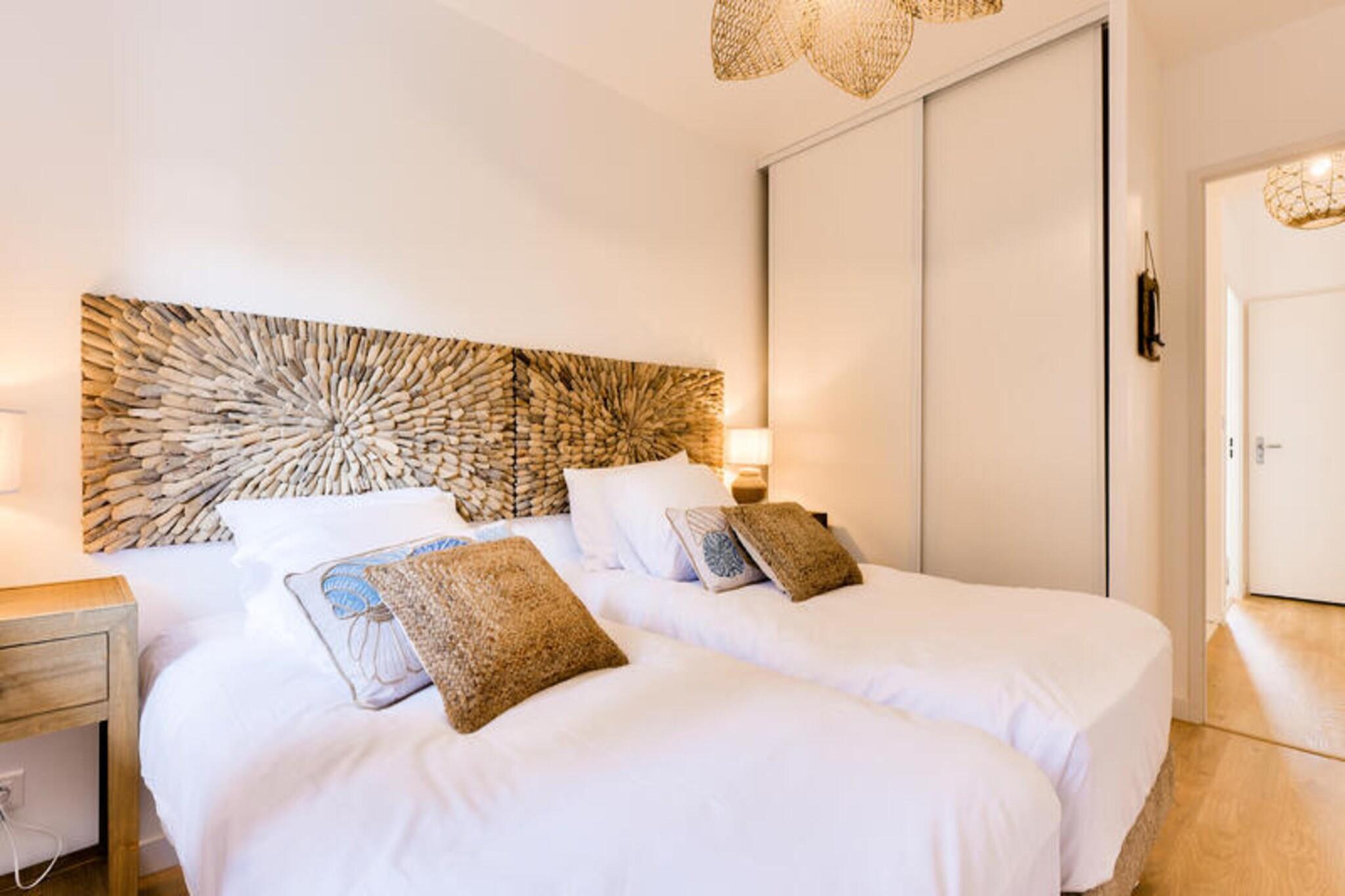 This charming 72m² holiday home offers two bedrooms, including one with a double bed and the other with two single beds. The property is pet-friendly (with a supplement) and features two bathrooms, one with a shower and the other with a bathtub. It also has a separate toilet and a mezzanine space with a suspended net, perfect for both children and adults. Two parking spaces are provided for added convenience. Located just a short walk from the city center, this holiday home is close to shops, cafes, and markets, making it easy to explore the local area. For beach lovers, the property has direct access to the sea, while several attractions and activities are just a few hundred meters away, ensuring there’s always something to do nearby. The home features a semi-open kitchen equipped with all the essentials, including a washing machine for added convenience. The living area opens onto a sunny south-facing terrace, ideal for enjoying the outdoors. The garden provides a peaceful retreat, making it perfect for relaxation and outdoor meals.