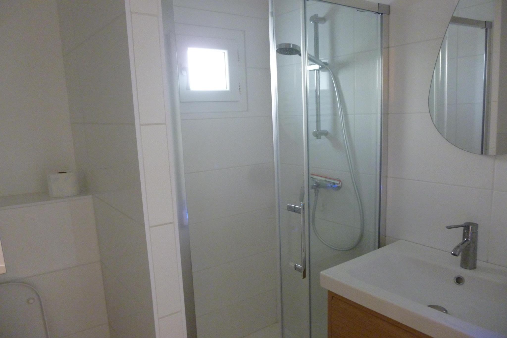 Ground floor: (Kitchen(toaster, cooker, coffee machine, dishwasher, fridge), Living/diningroom(TV, dining table, seating area), bedroom(double bed(140 x 190 cm)), bathroom(shower), toilet) terrace, parking