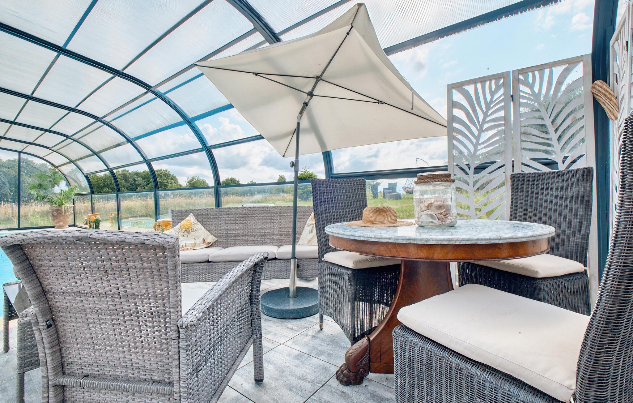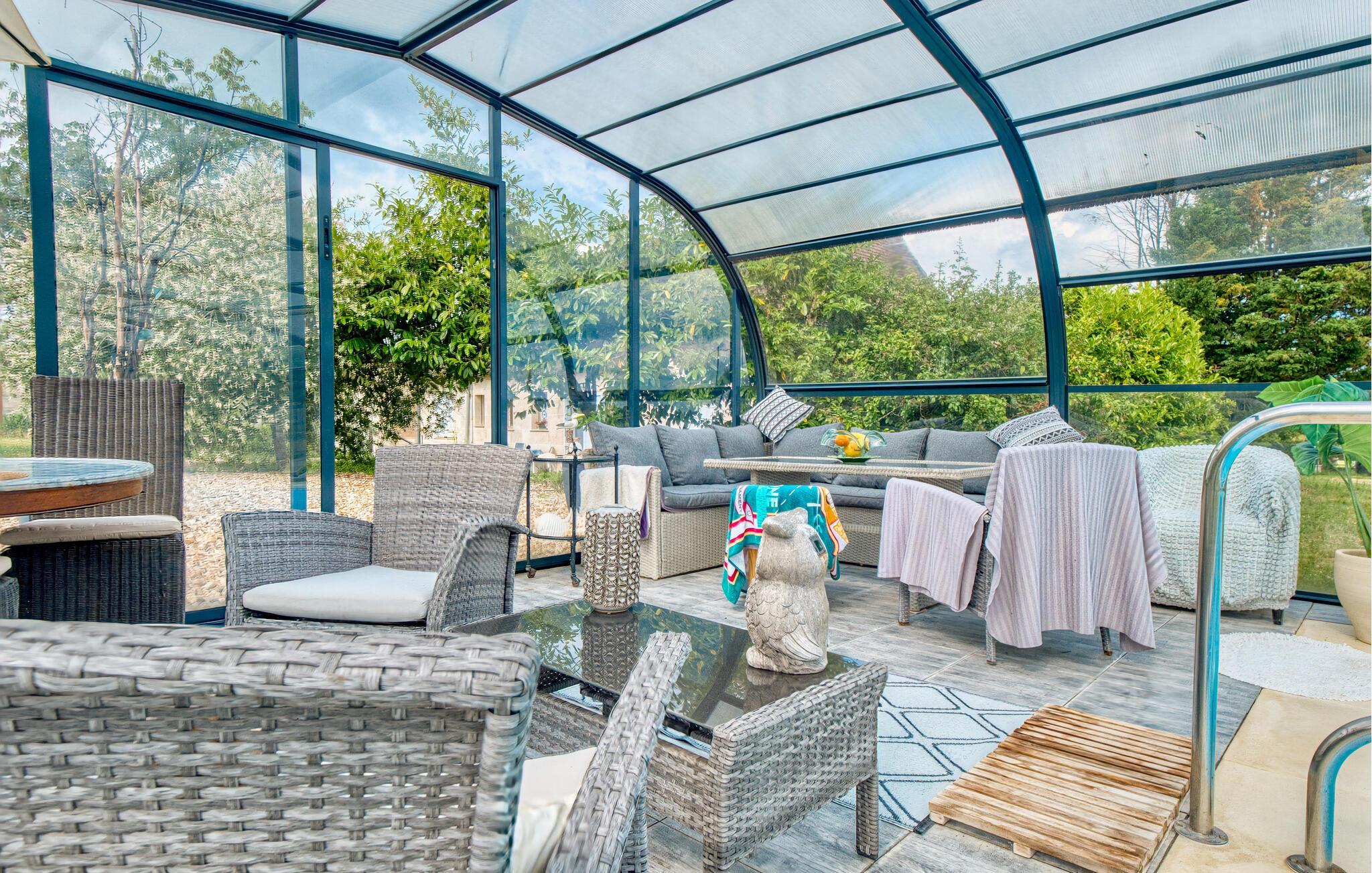 Genießen Sie auf der überdachten Terrasse ein herrliches Frühstück oder ziehen Sie in der milden Morgensonne gemächlich Ihre Bahnen im Pool. Lassen Sie Ihre Kinder im weitläufigen Garten toben, spielen Sie Tischtennis, Boule oder Badminton und entfachen Sie abends den Grill.