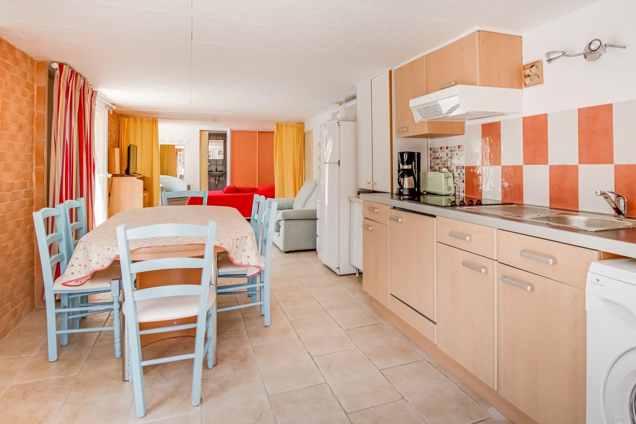 Ground floor: (Entrance, open kitchen(toaster, coffee machine, oven, microwave, dishwasher, fridge-freezer, washing machine), Living/diningroom(60 m2)(TV, dining table(10 persons), fireplace, seating area), bedroom(double bed, air conditioning), bedroom(double bed or 2 single beds, air conditioning), Bedroom with bathroom(double king size bed, bath tub, washbasin, air conditioning), toilet, toilet, balcony or terrace, heating, air conditioning) Guest house ground floor: (Large kitchen(dining table(6 persons)), Living/bed room(double bed), bathroom(bath tub, shower, toilet, iron, hairdryer), recreation room, double sofa bed) carport, balcony, terrace, garden(private, fenced, illuminated, 4600 m2), BBQ(gas), deckchairs, parasol, swimming pool(private, 10 x 5 m.), play equipment, slide, Garden shed, plancha grill, Swing set
