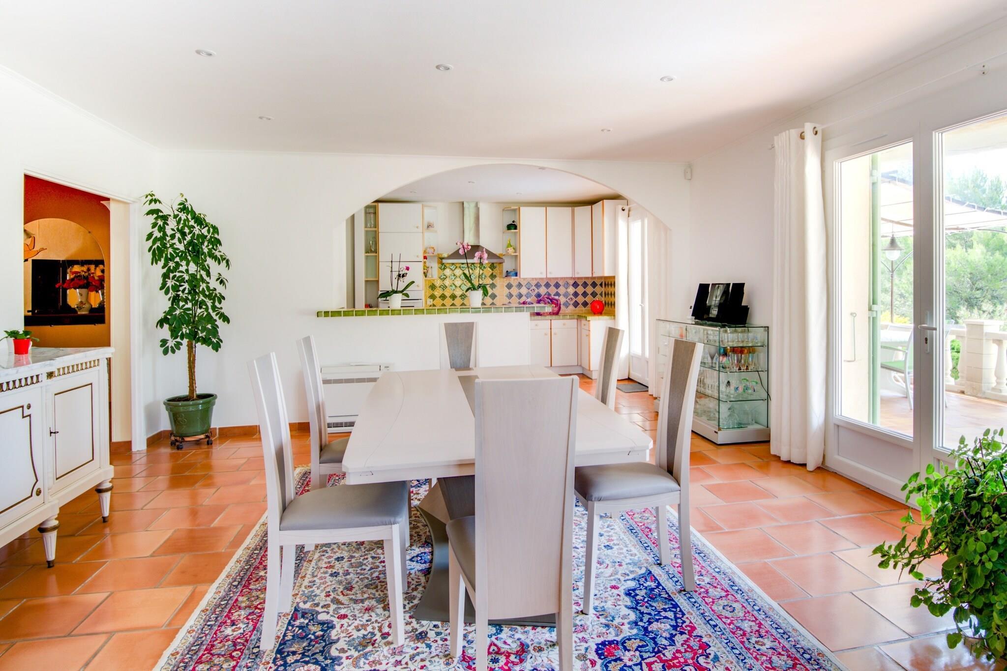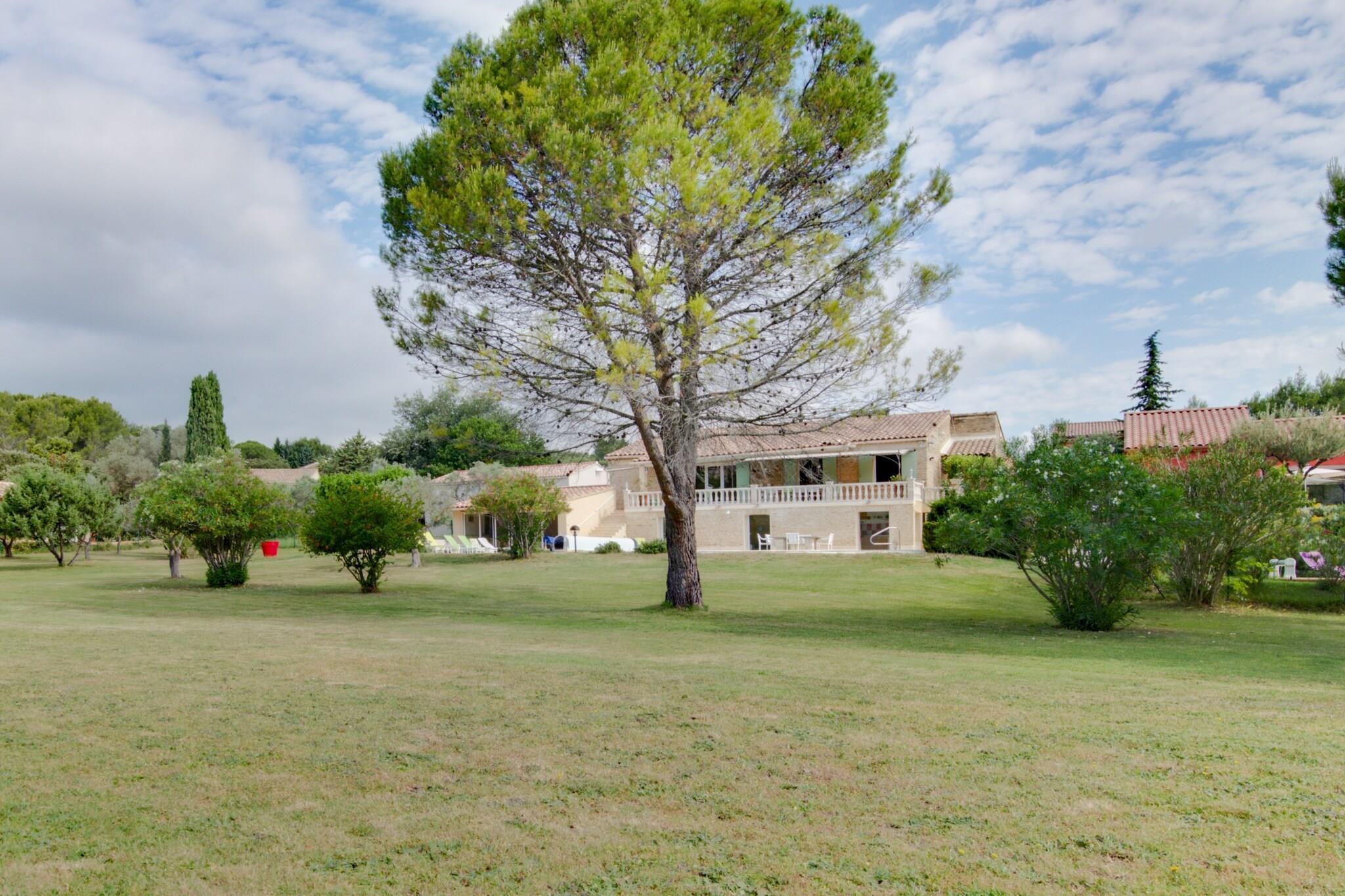 Discover this beautiful holiday villa set in huge, fenced and green grounds. It is located in a charming village with stunning views over the valley, 14 km from the Roman city of Orange and on the border of the Drôme department. The property is ideal for 2 families who want to spend a quiet holiday together. Lagarde Paréol is so small that some streets have no name. You will find few shops, but you will appreciate the peace and quiet! All amenities can be found in Bollène, 11 km away. Enjoy the garden and the large pool from the lovely terrace. Three of the four bedrooms, one with bathroom, and the living rooms are accessible via 2 steps from the courtyard. A final bedroom with bed, sofa bed and shower room is at garden level and can be accessed from outside or inside. It is ideal for families with children, especially as it offers two small climbing walls, a swing and pool games.