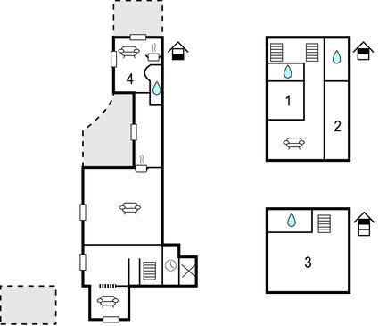 Badezimmer (nr. 4) - WC. Warmes und kaltes Wasser. Dusche