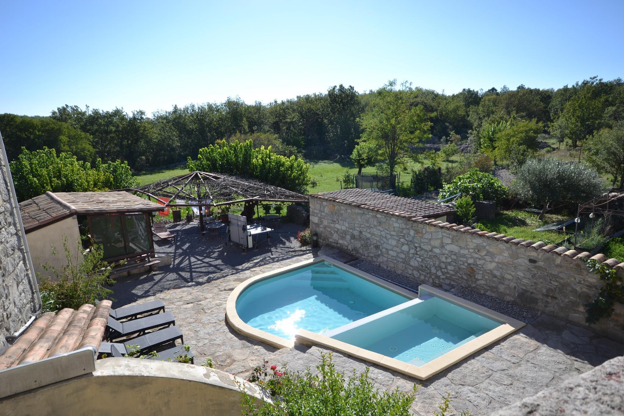This charming holiday home in Lanas welcomes up to 5 guests and is nestled in the heart of the garrigue landscape, offering a peaceful retreat with a heated pool and private terrace. The fenced pool area is shared with one other home and includes a trampoline and ping-pong table—perfect for families with children. The terrace features stylish furniture and a plancha grill for relaxed outdoor dining. Just 8 km from Balazuc and 40 km from Privas, Lanas is a picturesque village with a lively Sunday market and a September festival with fireworks. Nearby attractions include the iconic Pont d’Arc, the prehistoric Chauvet Cave, and the scenic Ibie Valley, all ideal for day trips and nature lovers. For drinks and local flavor, unwind at Action Lounge, The Beer Cafe, or Rebound - Cafe Lounge & Bar. You can also check out Bookers, Lana's Place, or C J Moloney's for a relaxed evening. For a lively vibe, HUGO BAR PUB and Lana Live Music offer great atmospheres. This home blends rustic charm with family-friendly amenities for a memorable Ardèche escape.