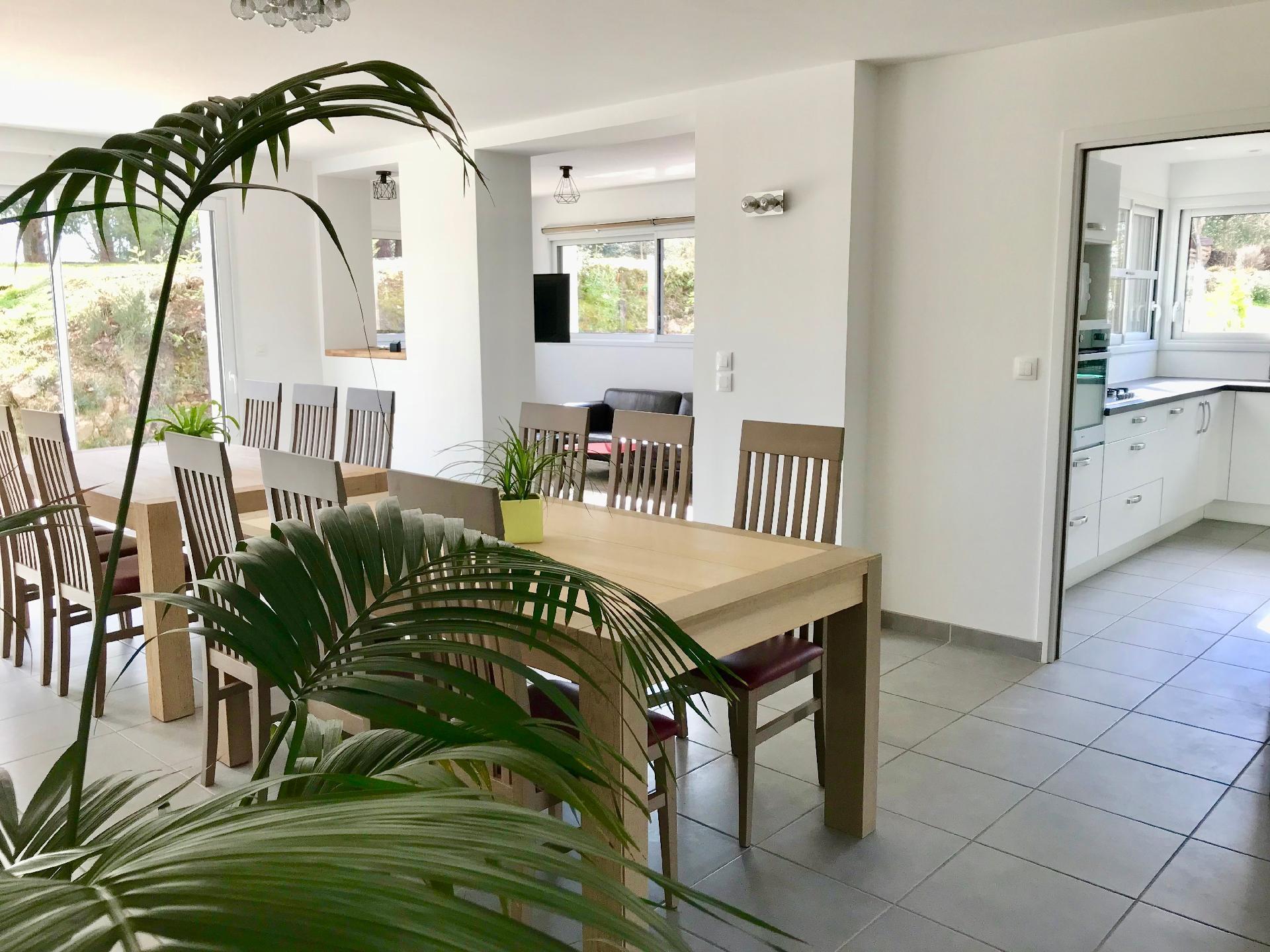 Outside, the house opens onto a charming terrace and balcony, perfect for relaxing outdoors or enjoying a family meal under the Breton sky. The private garden offers a tranquil setting in which to unwind, with a play area that will delight the youngest guests. Situated on the edge of a wood, the property offers a peaceful environment, ideal for reconnecting with nature. What's more, the house is equipped with an electric vehicle charging station and access ramp, ensuring a hassle-free arrival and stay for all.