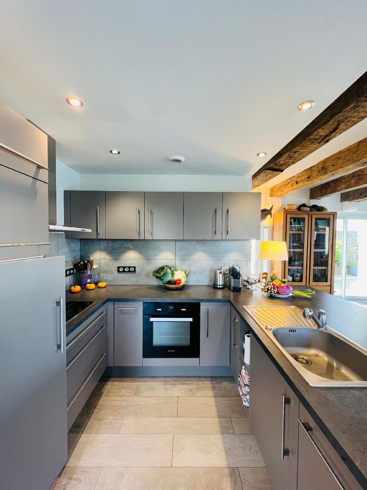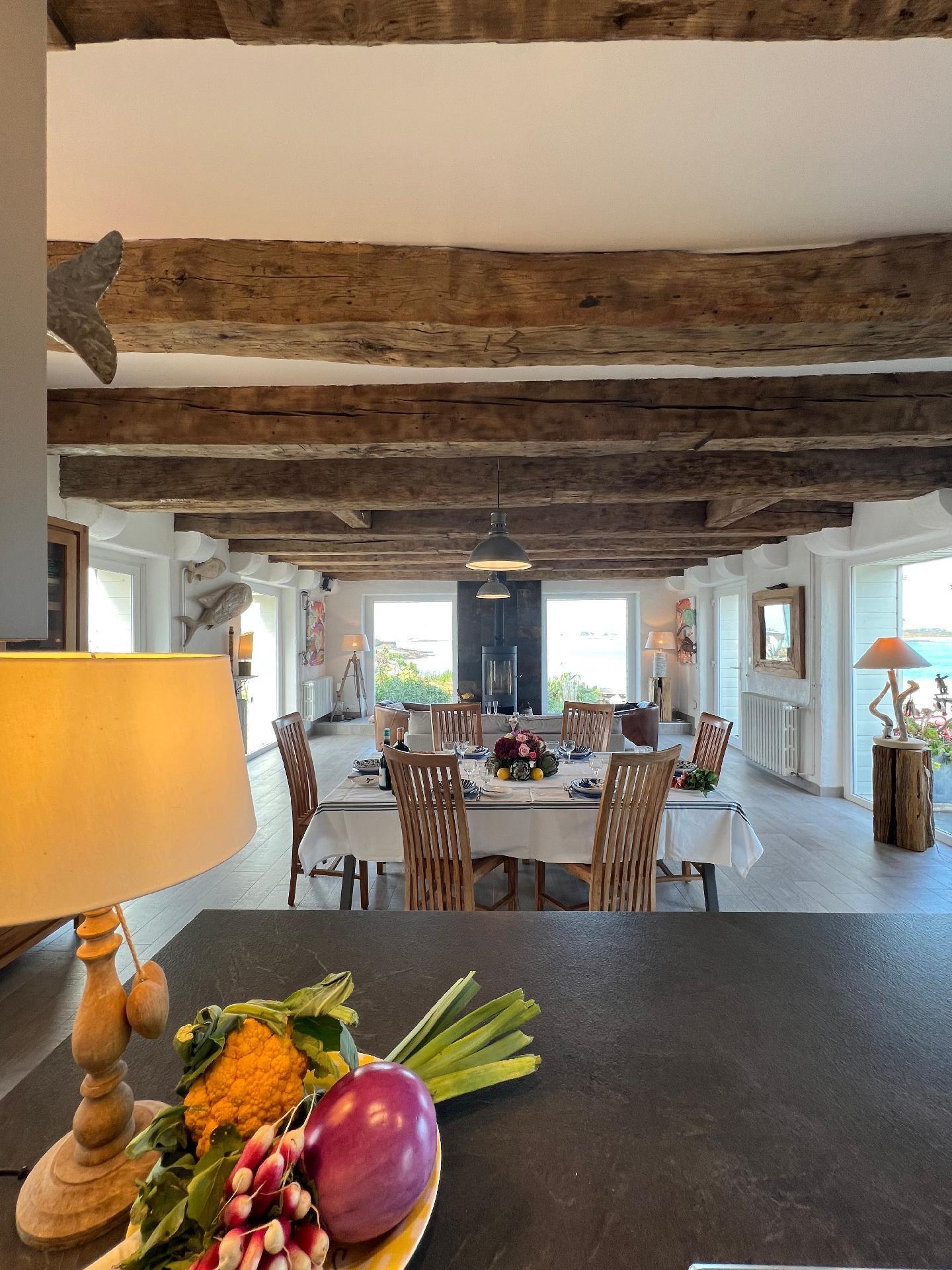 Yes, where to start? - With such a bombastic location? Your house is wonderfully quiet and surrounded by the sea at the end of a narrow country lane surrounded by the sea. The house is modern with a new open-plan kitchen, a wonderfully large elongated living/dining area - with a multitude of sea view windows - the cosy crowning glory of the living area is the strong beams adorning the living space and between the front windows facing the sea there is a wood-burning stove. The house has several sheltered terraces - and an enclosed garden of approx. 3500m² and private gate with access to the sea/beach. For the maximum of 6 adult guests (+max. 2 kids under 12) there are 3 double bedrooms, 2 showers and 2 toilets.A beautiful modern holiday home, with an incredibly unique sea view location and then all alone and quiet - this is really breathtaking as a holiday home - then a large fenced garden - a four-legged friend is also allowed - sea views from all bedrooms from the living area; several terraces for every sun position one - own gate to the beach and sea and then a kayak or a standup for free use ....da you can only wish dreamlike and relaxing holidays.