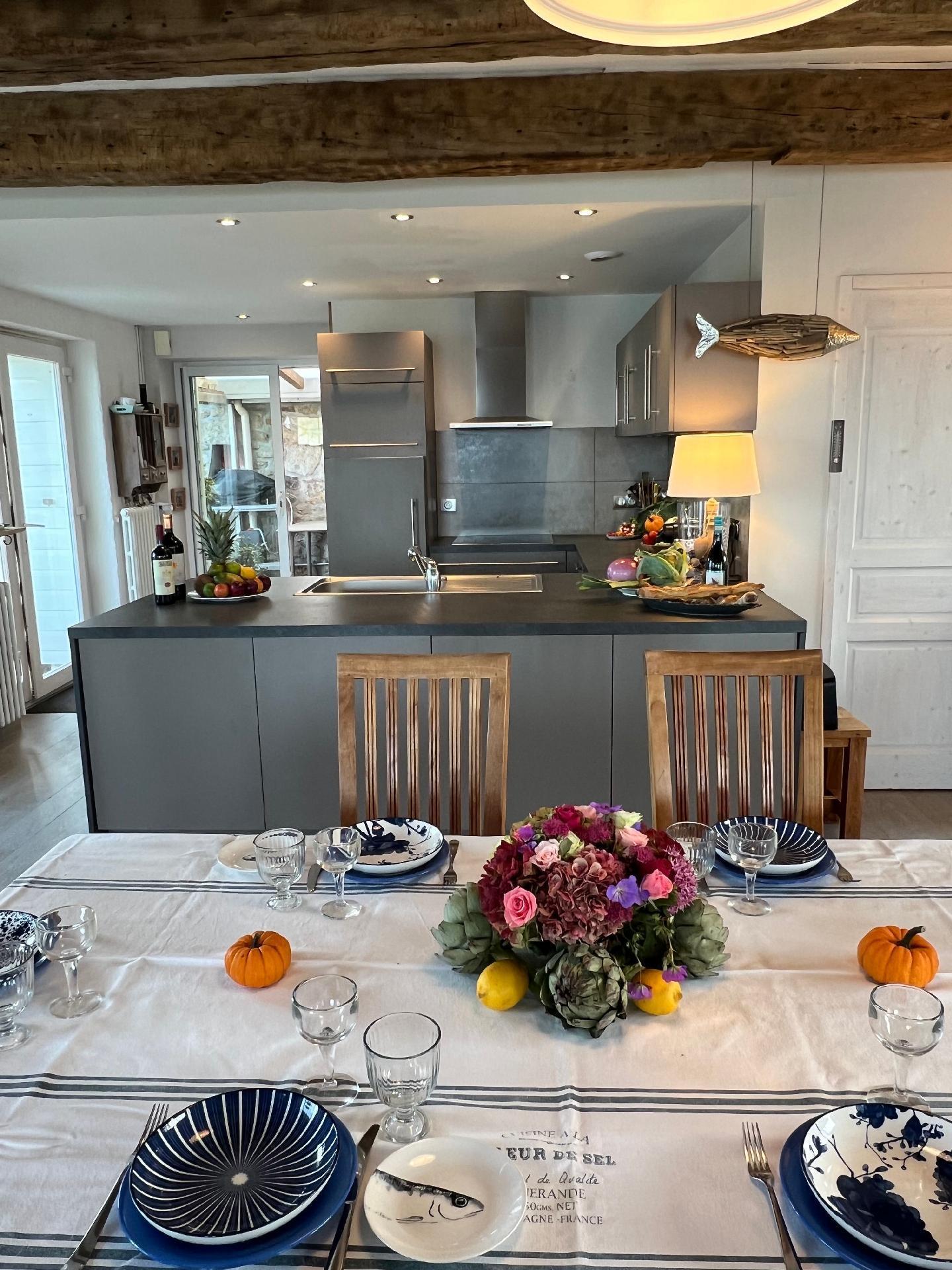 What a marvellous location - there is no other place like it! You live all alone on a fenced 3500m² property - beautifully secluded and very quiet on a small elongated arm of land "Kergoz" in the rearmost house directly by the sea. All around you can see the sea at about 280 degrees - not a room in the house from which you cannot see the sea. - As the French say "les pieds dans l'eau" meaning "right on the water". You have your own gate from your garden with your own personal access to the sea / beach - all to yourself.