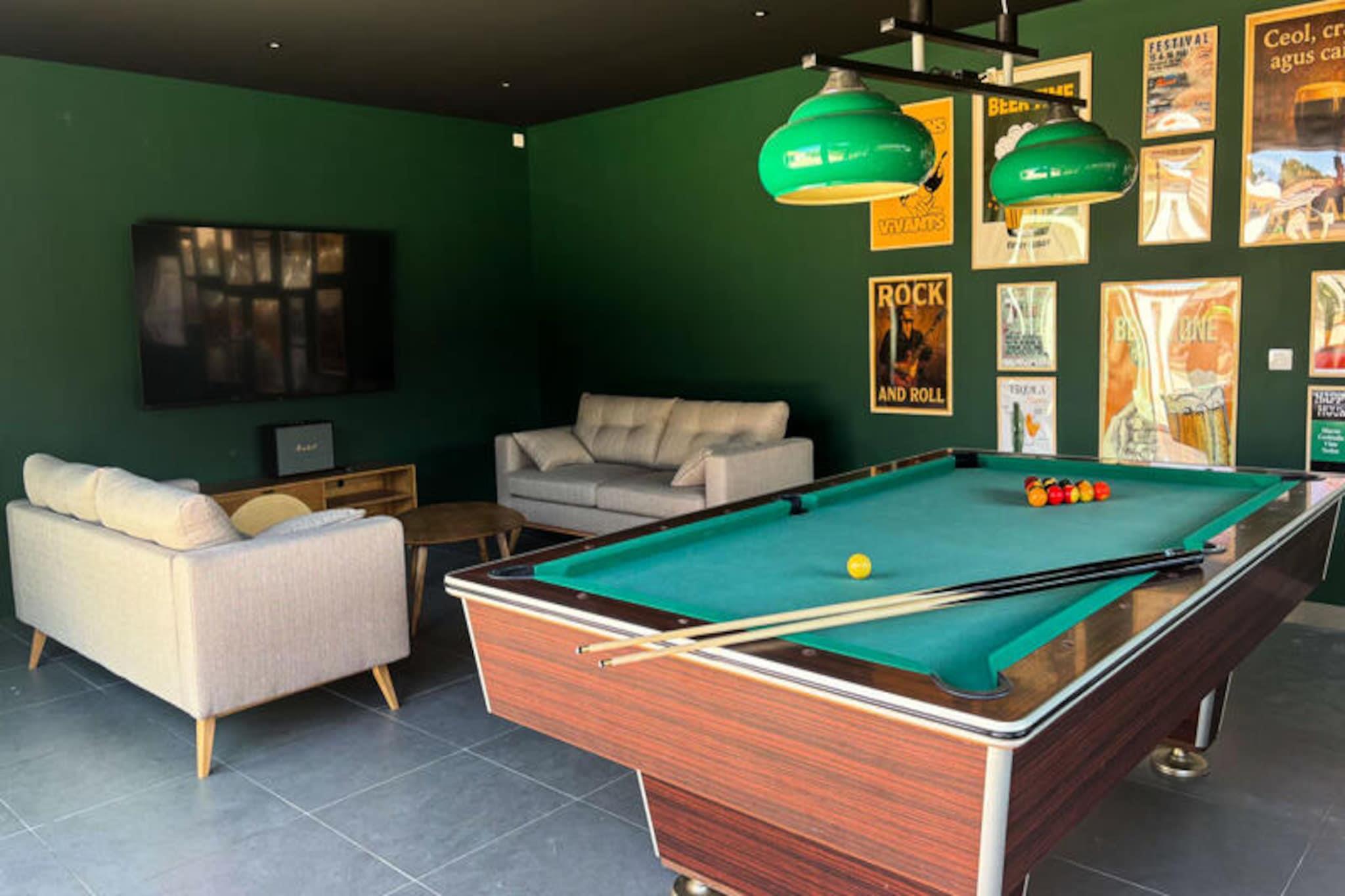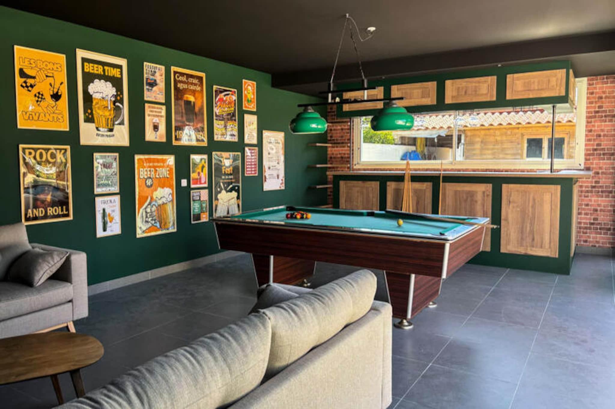 In the heart of the Vendée countryside, this magnificent villa offers an oasis of tranquility and luxury, perfect for creating unforgettable memories with family or friends. Surrounded by lush greenery and just a short drive from local amenities, this spacious retreat invites you to unwind and reconnect with nature in a serene and secure environment. Whether you’re seeking relaxation or adventure, this property caters to every need with its exceptional facilities and warm, inviting atmosphere. Spanning an impressive 365 m², the villa comfortably accommodates up to 14 guests with its thoughtfully designed sleeping arrangements. Each of the five bedrooms is a haven of comfort, featuring plush bedding, ample storage, and modern touches like televisions and en-suite amenities. The family bedroom and suite offer additional flexibility, while the two extra beds ensure everyone has a place to rest. The open-plan living area, modern kitchen, and bright interiors create a welcoming space for shared meals, games, or quiet evenings by the pool table. Step outside to discover your private paradise. The heated swimming pool, year-round jacuzzi, and sauna promise ultimate relaxation, while the gym and games room provide endless entertainment. The secure garden is perfect for children to play freely, and the pool house offers a shaded retreat for sunny afternoons. With a concierge service to ensure a seamless stay, every detail has been considered for your comfort. Located in a region rich with natural beauty and cultural charm, this villa is your gateway to the best of the Vendée. From sandy beaches to historic villages, there’s something for everyone to explore. Book your stay today and experience the perfect blend of luxury and nature.