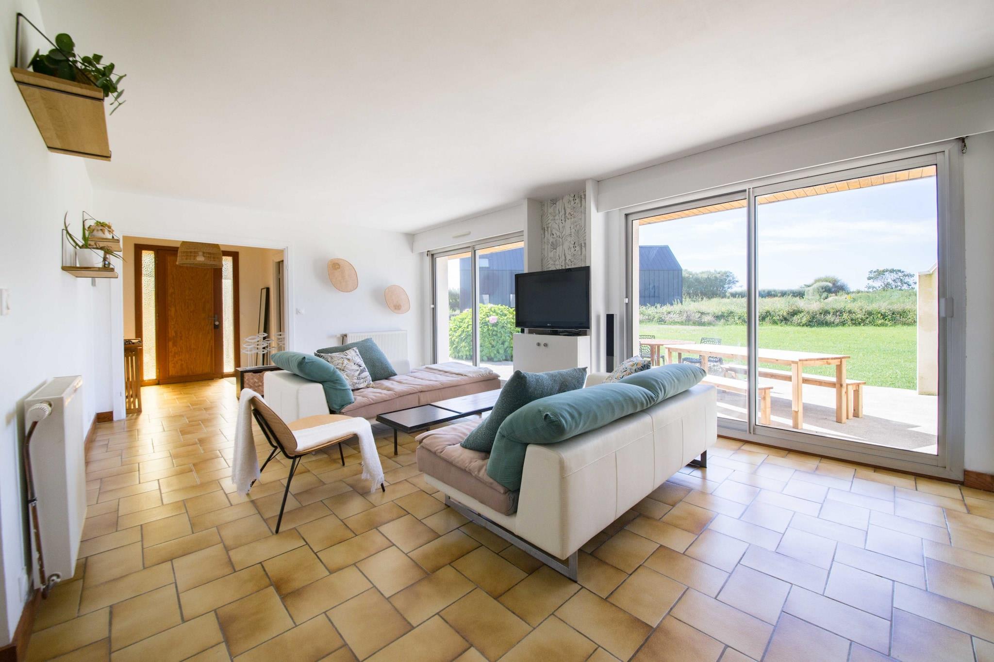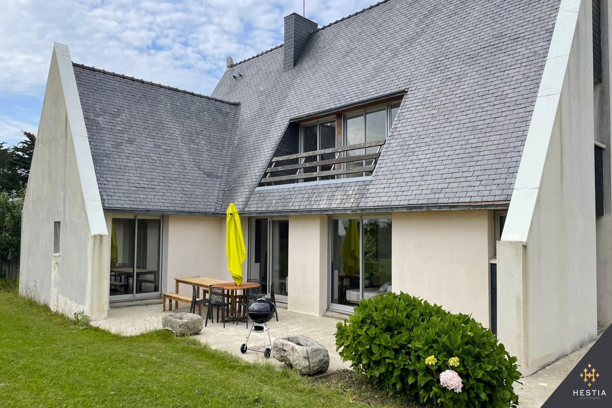 This cozy 180 m² house in Landunvez offers a comfortable stay for up to 10 guests, with 5 bedrooms and a family-friendly atmosphere. Perfectly located near the sea, the property features a lovely garden, a 20 m² terrace, and outdoor furniture to enjoy the surrounding views. It’s an ideal spot for families or groups seeking a relaxing getaway by the beach. The house is conveniently located just 2 meters from the popular "Restaurant Le Caïman" and within walking distance of several beautiful sandy beaches, including "Plage de Gwisselier" (600 m), "Plage du château" (700 m), and "Plage de Trémazan" (1 km). Nearby amenities include supermarkets, local restaurants, and golf courses. Attractions like the "Parc d'attraction La récré des 3 curés" and "Golf de Brest les Abers" are also within a short distance. For those traveling by plane or train, the Brest airport and train station are about 30 km away. The property is well-equipped with a wide range of amenities, including a washing machine, dryer, barbecue, Wi-Fi, satellite TV, and hair dryer. The house also features a heat pump for added comfort and a children’s area for the little ones. The open-plan kitchen, which is equipped with modern gas appliances, includes a refrigerator, microwave, oven, freezer, dishwasher, and all necessary utensils to prepare meals with ease. This charming home offers everything you need for a memorable and enjoyable stay in Landunvez.