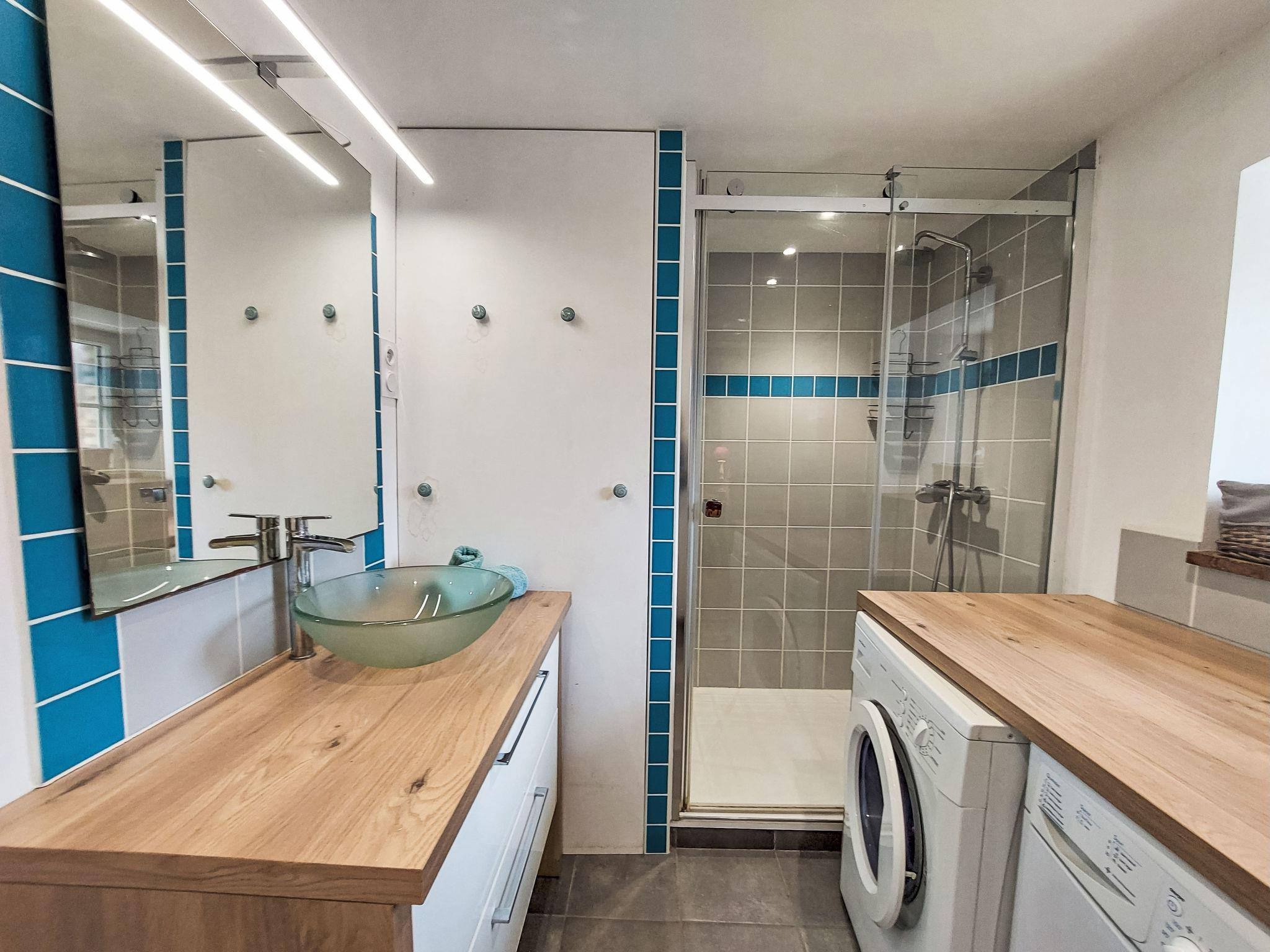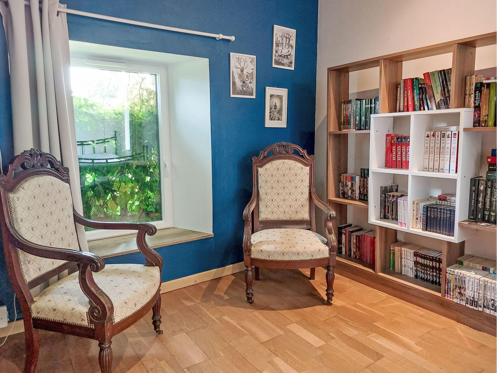 5-room house 150 m2 on 2 levels. Beautiful furnishings: large living/dining room 25 m2 with open-hearth fireplace, TV, hi-fi system and DVD. Exit to the terrace. Kitchen (oven, dishwasher, 4 gas rings, toaster, kettle, microwave, freezer, electric coffee machine, Capsules for coffee machine (Nespresso), cooking island). Exit to the garden, to the terrace. Shower, sep. WC. Electric heating. Upper floor: 1 children's room with 1 bed (90 cm), 1 pull-out bed (2 pers. 2 x 90 cm). 2 rooms, each room with 1 french bed (160 cm). Gallery with 2 beds (90 cm). Bath/shower, sep. WC with corner bath. Terrace 20 m2. Terrace furniture, barbecue, deck chairs (6), box-room. View of the garden. Facilities: washing machine, dryer, children's high chair, baby cot for up to 2 year olds. Internet (WiFi, free). Parking at the house. Please note: suitable for families. Non-smoking house. Maximum 1 pet/ dog allowed. Smoke alarm. From the single room and 1 sofa bed, access to the gallery with 2 beds, via stairs. Instead of an enclosed bedroom, some sleeping areas are located in an open-plan area (gallery, alcove, etc.).