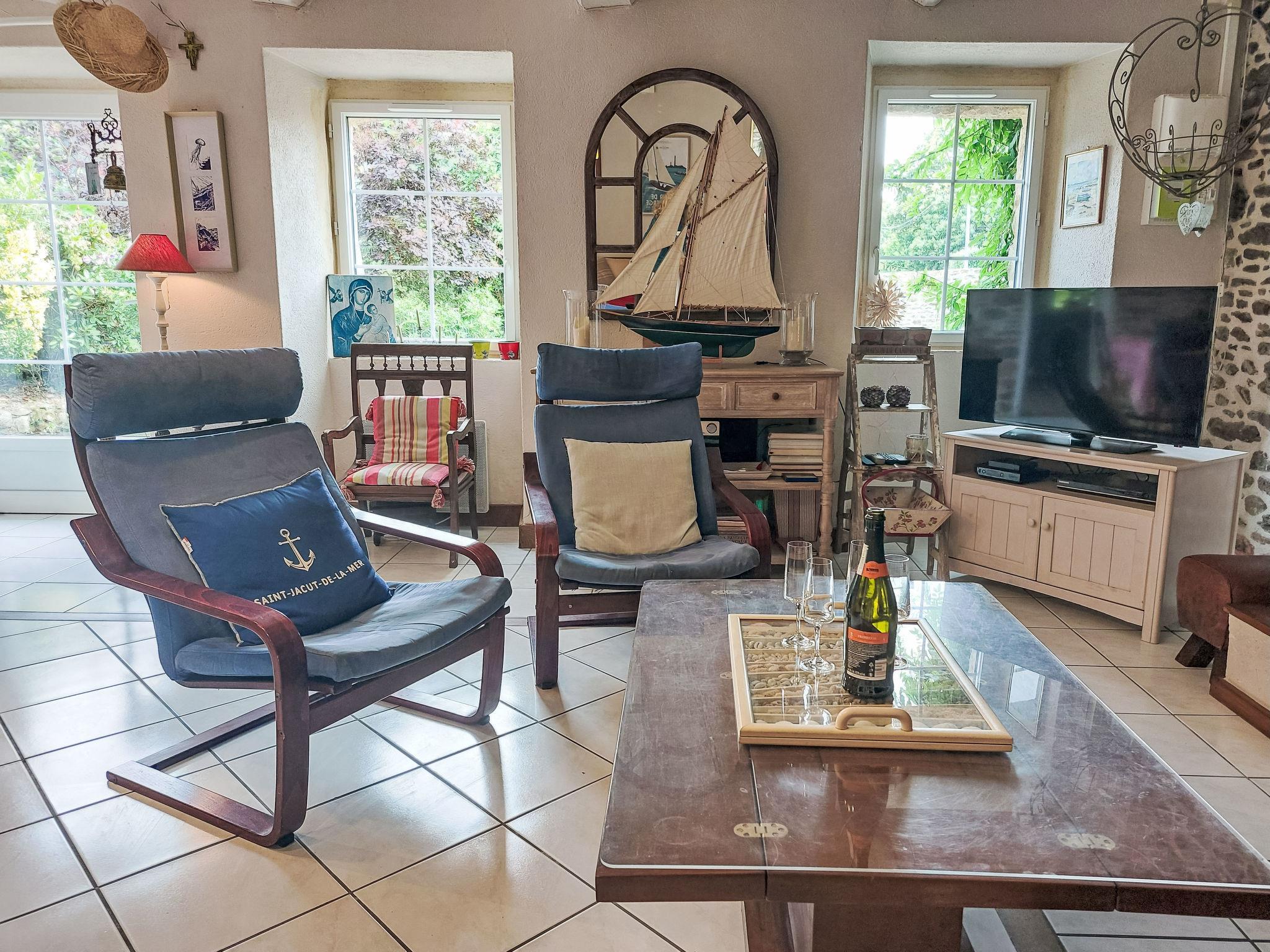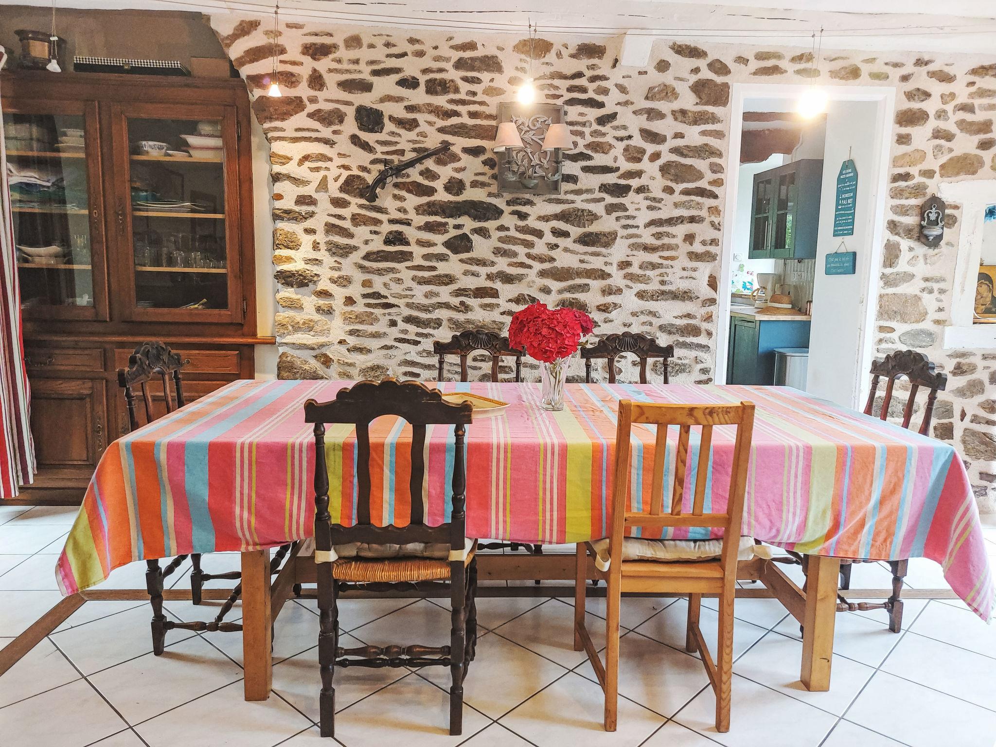 Languenan: Beautiful single-family house "Les Agapanthes", 2 storeys, surrounded by fields. Outside the resort, 2 km from the centre, 12 km from the sea, 12 km from the beach, in the countryside. Private: garden (not fenced) with lawn 1'500 m2 wildlife garden. Grocery 8 km, supermarket 8 km, shopping centre 8 km, restaurant 12 km, bus stop 2 km, sandy beach "Saint Jacut de la Mer" 12 km. Nearby attractions: Dinan 10 km, Vallée de la Rance, St Malo 27 km, Cap Fréhel 34 km, Mont St Michel 58 km. Please note: car recommended. Object suitable for 6 adults + 3 children.