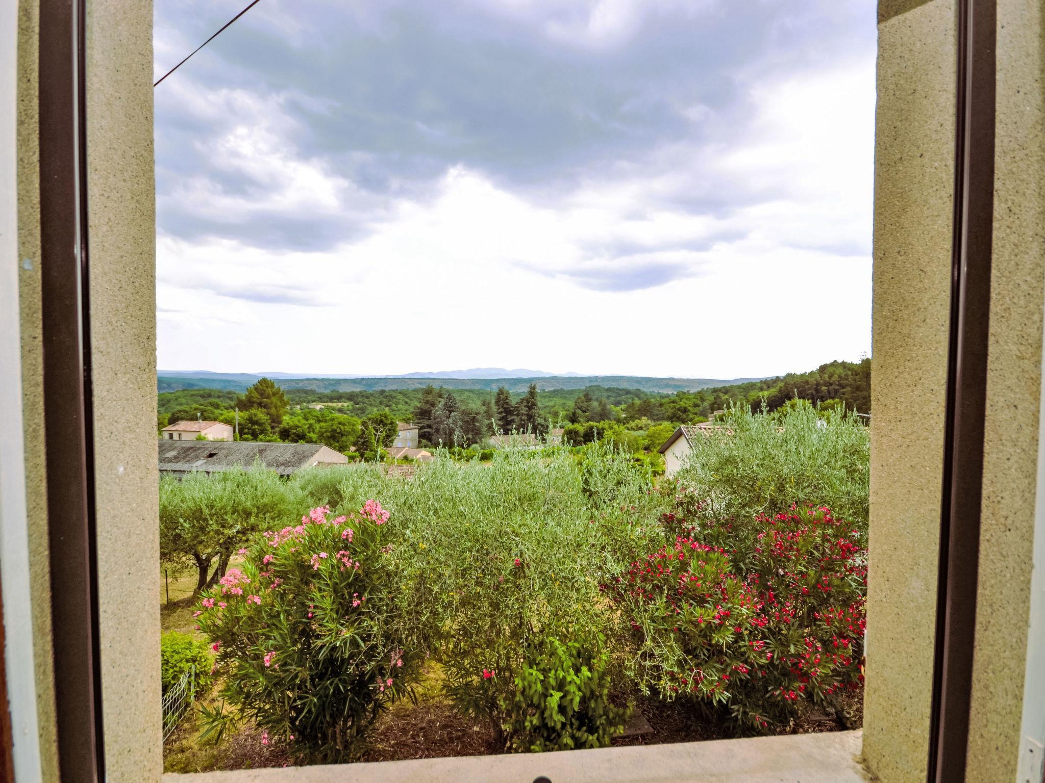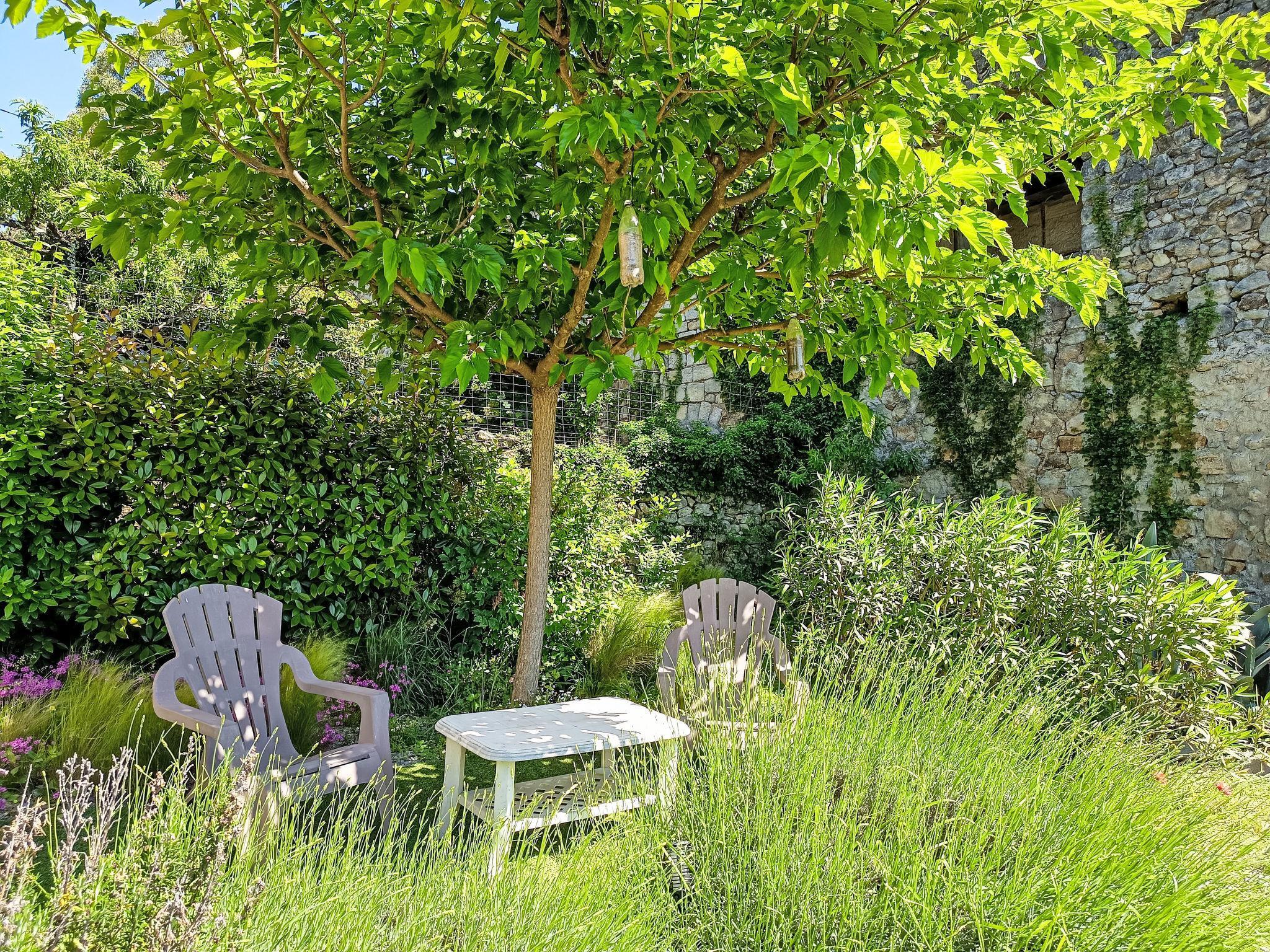 "Les Lauriers Roses", 3-room house 80 m2 on 2 levels. Practical and cosy furnishings: living room with TV (flat screen), CD-player, hi-fi system and fan. Exit to the garden. Kitchen (1 hot plate, oven, dishwasher, 3 gas rings, toaster, kettle, microwave, freezer, electric coffee machine) with dining table and wood-burning stove. Upper floor: 1 open room with 1 french bed (140 cm, length 190 cm), shower/WC. Electric heating. Terrace, patio. Terrace furniture, barbecue, deck chairs (4). Beautiful view of the mountains and the countryside. Facilities: washing machine, children's high chair, baby cot. Please note: non-smoking house. Maximum 2 pets/ dogs allowed. Smoke alarm. Offer by a private individual according to Art. 155, IV of CGI.