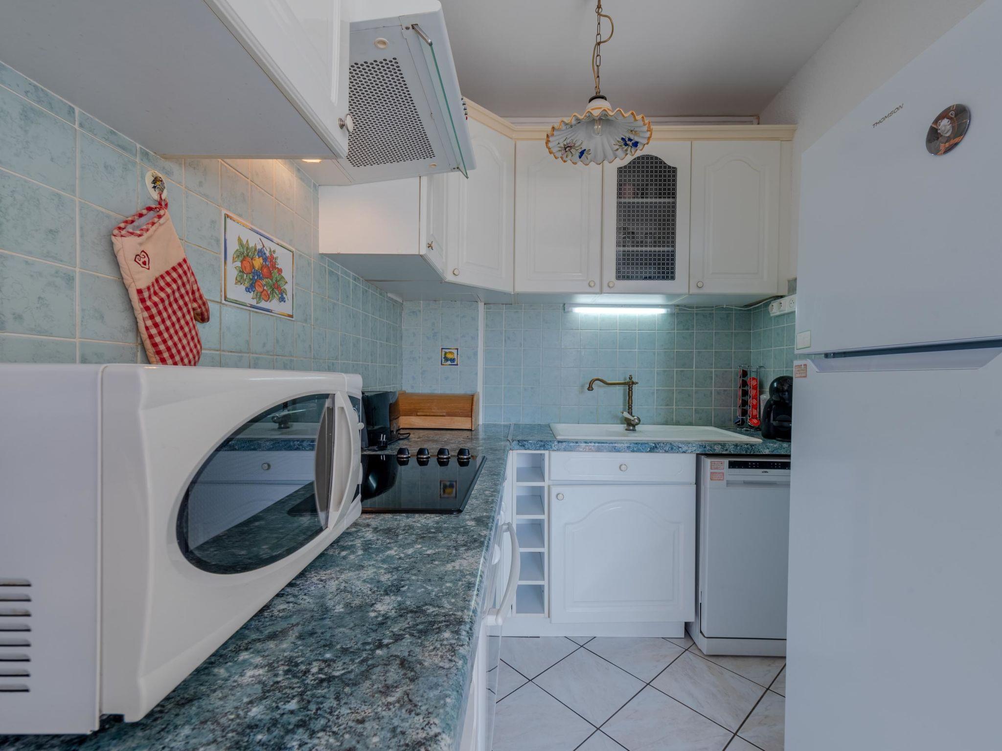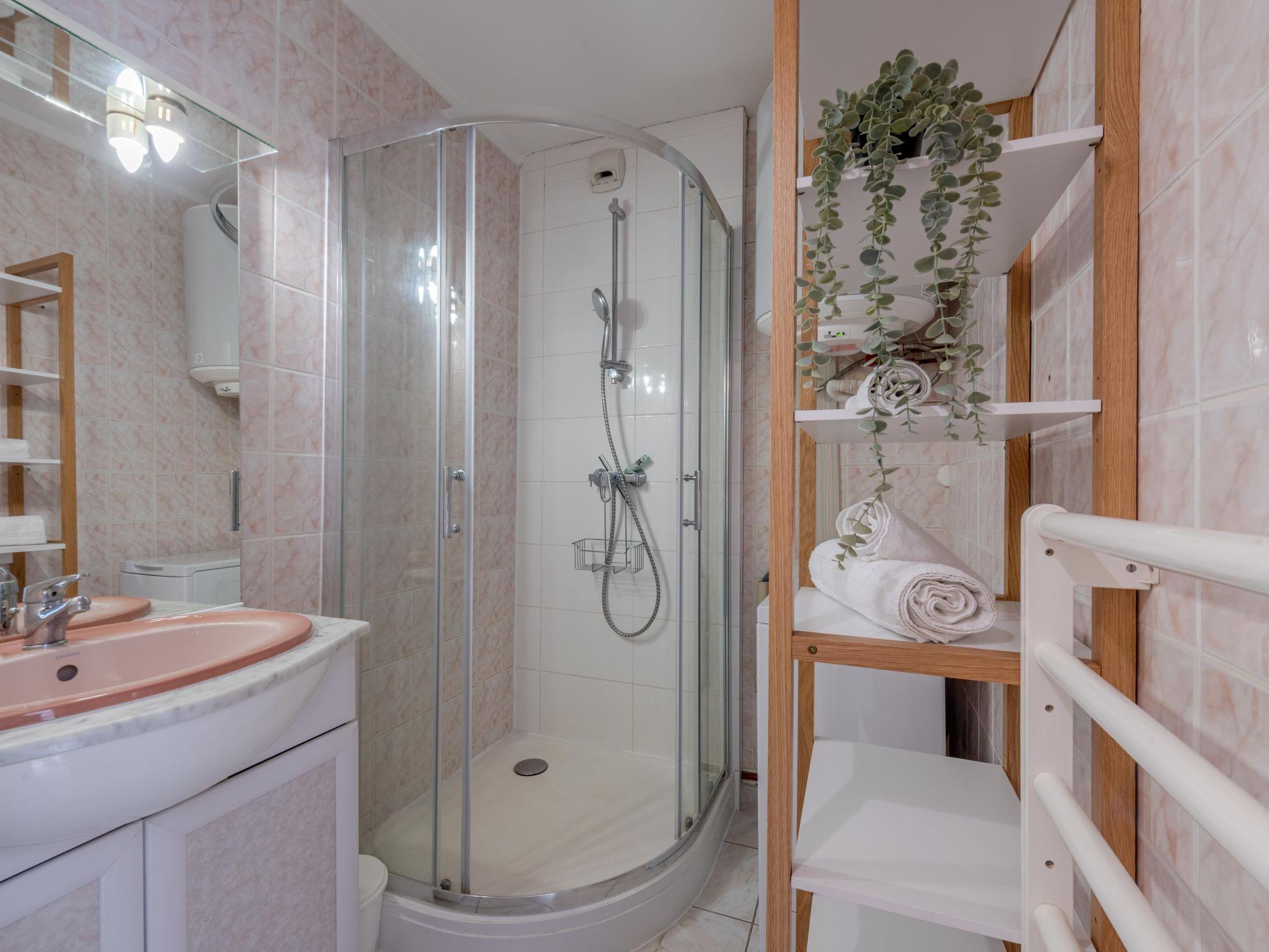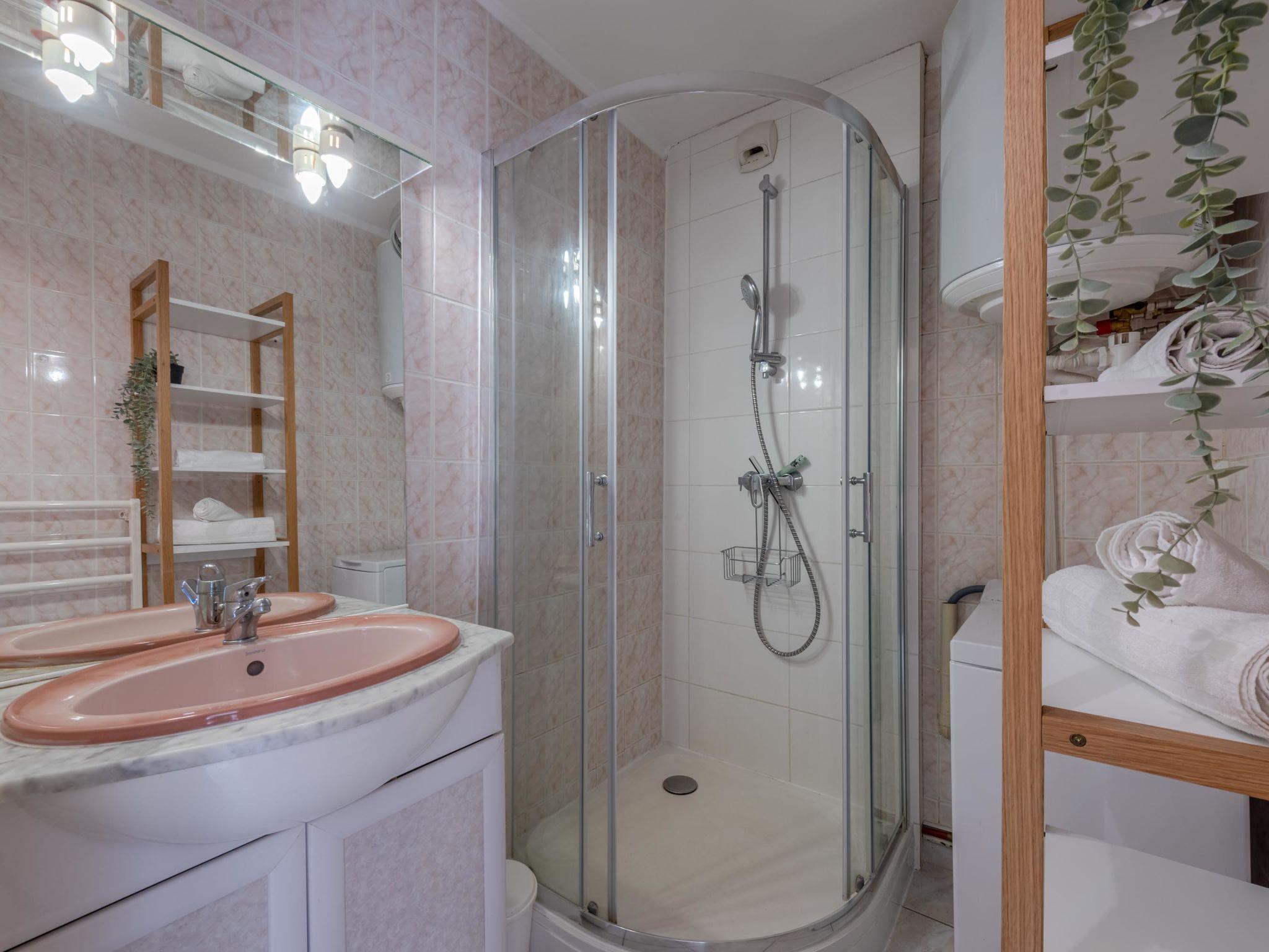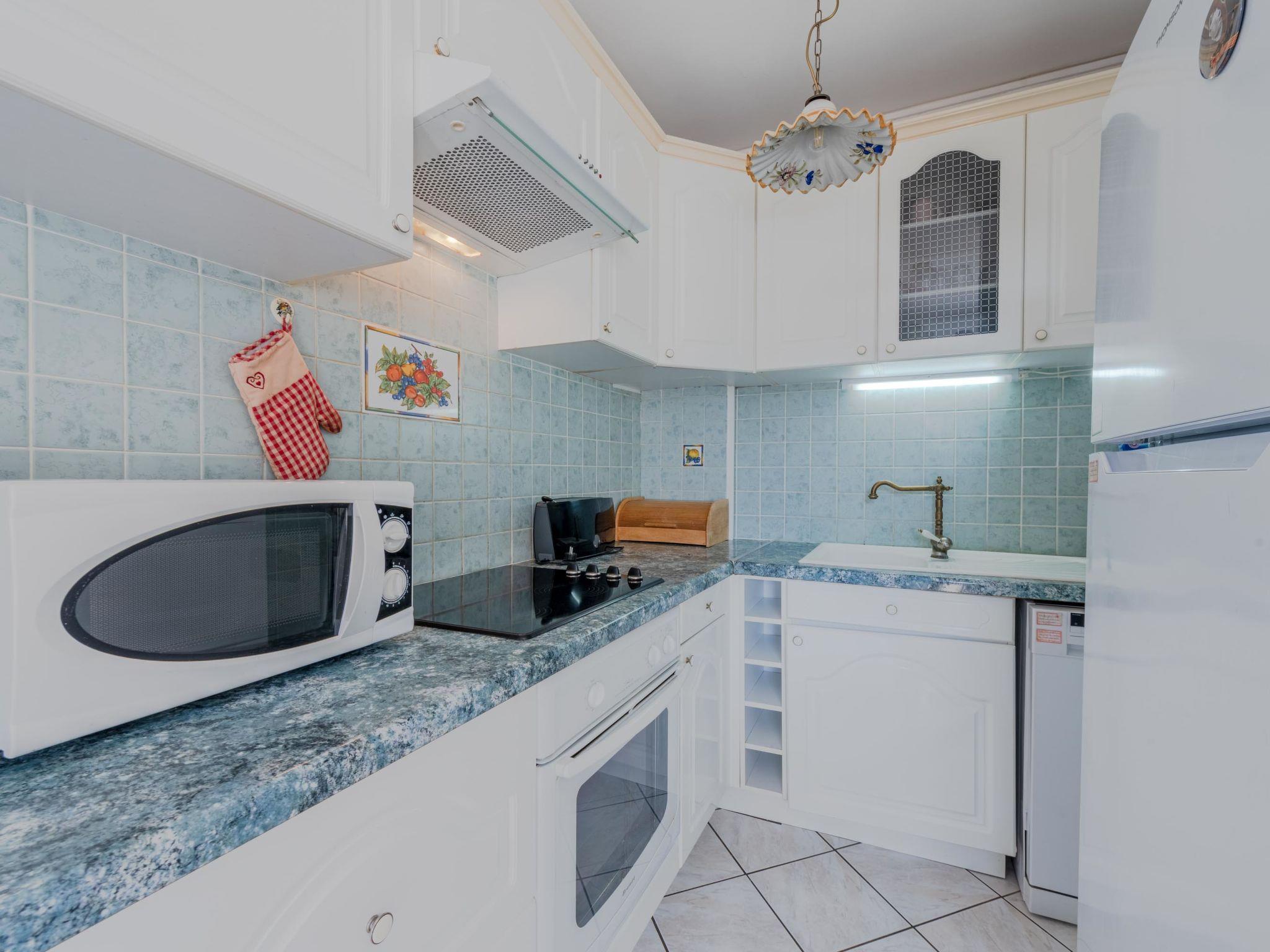 2-room apartment 35 m2 on 2nd floor. Beautiful furnishings: living/dining room with 1 double sofabed and TV (flat screen). Exit to the terrace. 1 room with 1 french bed (140 cm). Exit to the loggia. Kitchenette (3 hot plates, oven, dishwasher, microwave, freezer). Shower, sep. WC. Heating. Balcony 7 m2, west facing position. Terrace furniture. View of the sea. Facilities: washing machine. Internet (WiFi, extra). Parking. Please note: maximum 1 pet/ dog allowed. Smoke alarm.