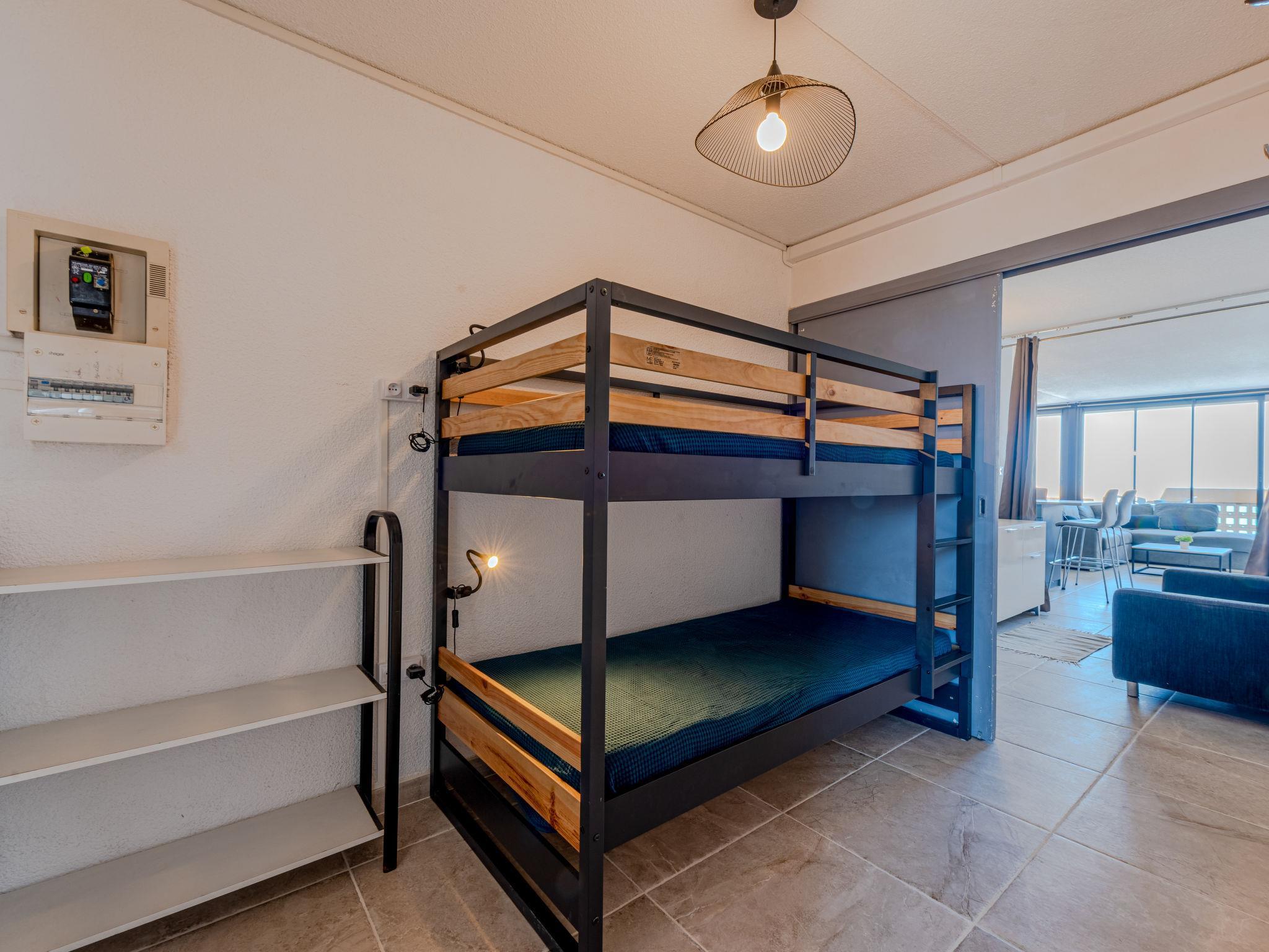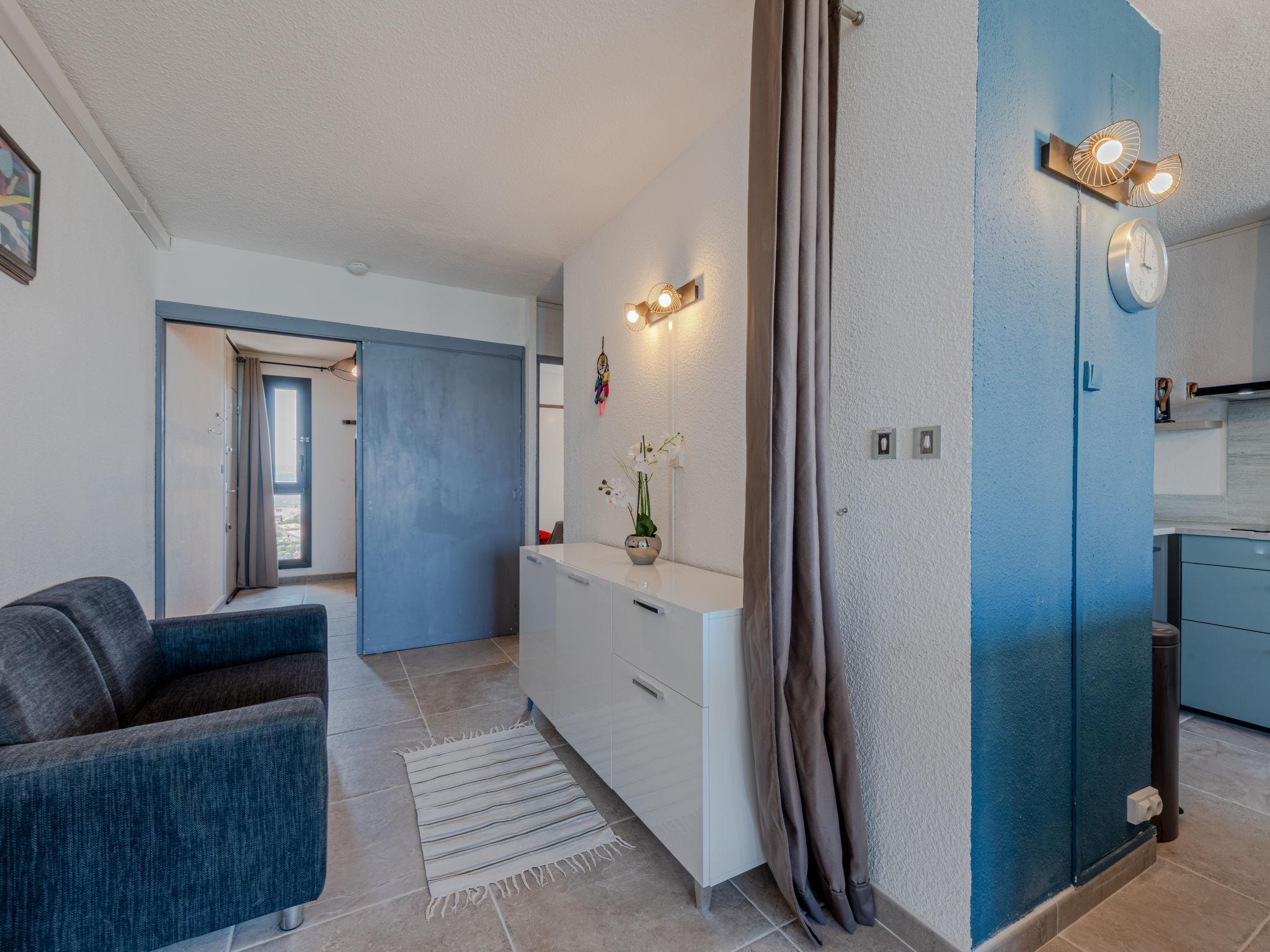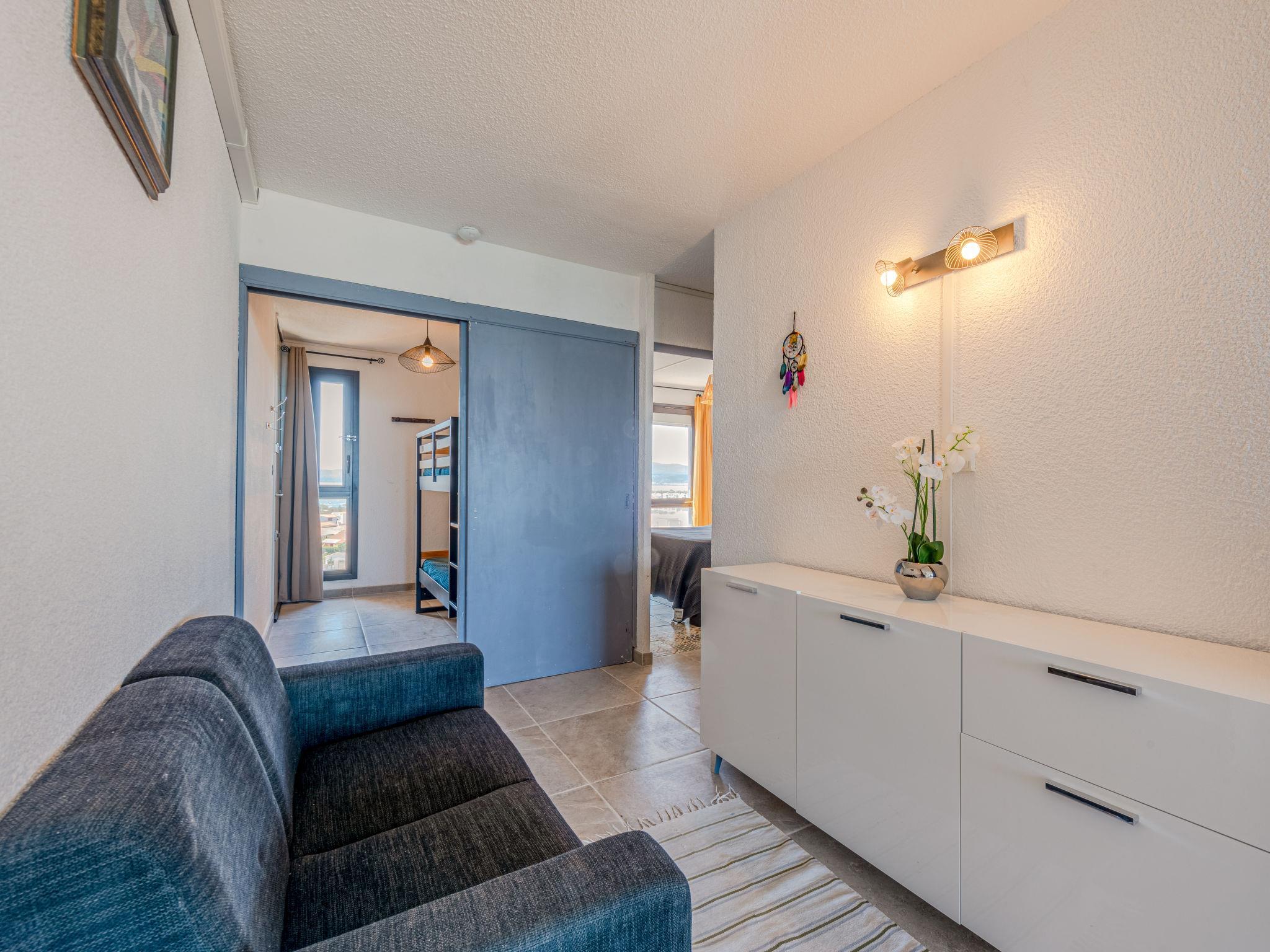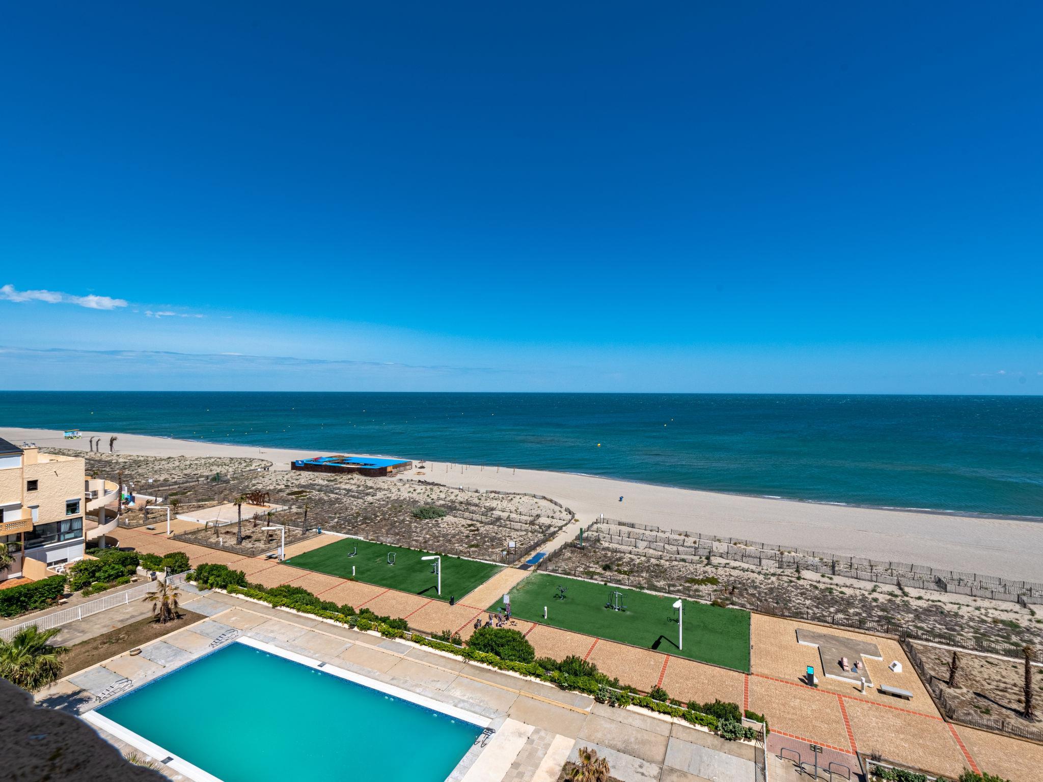 As part of the water restriction measures linked to drought in some of our departments, please note that the rental swimming pool may be closed by prefectural decree. Residence "Les Argonautes", 7 storeys. In the district of La Grande Plage, 50 m from the sea, 2.5 km from the lake, 50 m from the beach, direct access to the beach. For shared use: swimming pool angular (25 x 11 m, depth 150 - 220 cm, seasonal availability: 01.Jun. - 30.Sep.). In the complex: lift. Parking. Shop, grocery 80 m, supermarket 5 km, shopping centre, restaurant, bar, bakery, café 80 m, pedestrian zone 50 m, bicycle rental 80 m, bus stop "Lydia" 100 m, railway station "Perpignan" 22 km, sandy beach 50 m, diving center 5 km, outdoor swimming pool 7 km, nudist beach 10 km. Sports harbour 7 km, surf school 2 km, sailing school 3 km, tennis 3 km, indoor tennis centre 3 km, minigolf 2.5 km, riding stable 12 km. Nearby attractions: Aqualand Port Leucate 5 km, Réserve Africaine de Sigean 41 km, Parcours Aventure 5 km, cinéma 1.4 km, Téleski nautique site des dosses 5 km, Spot de windsurf 4 km. Well-known lakes can easily be reached: Etang de Leucate ou Salses 3 km, Lac de Villeneuve de La Raho 34 km. Hiking paths: Sentier du guetteur 8 km, La forteresse de salses 15 km, Sentier du littoral Collioure 40 km. Please note: entertainment in the season.