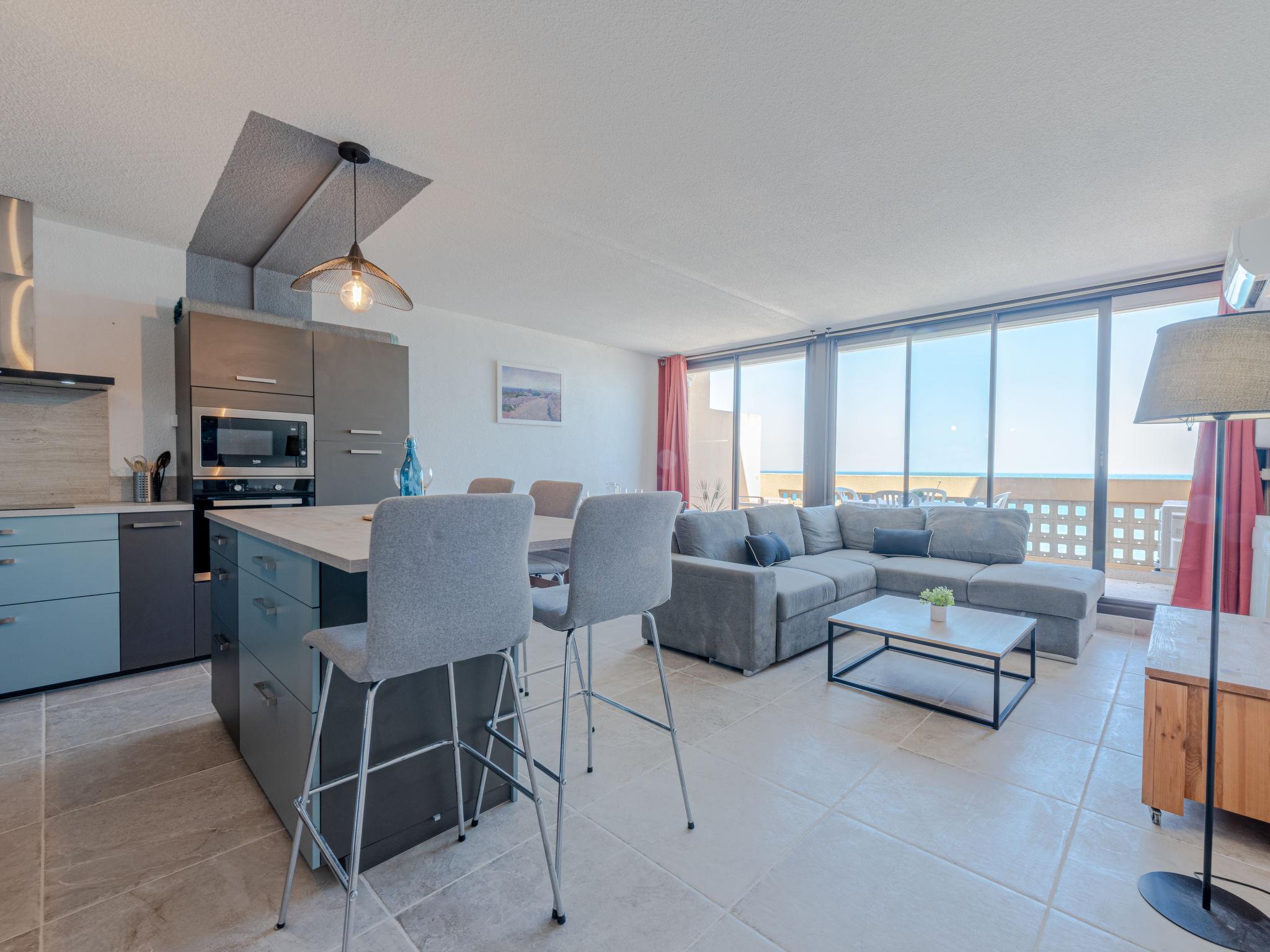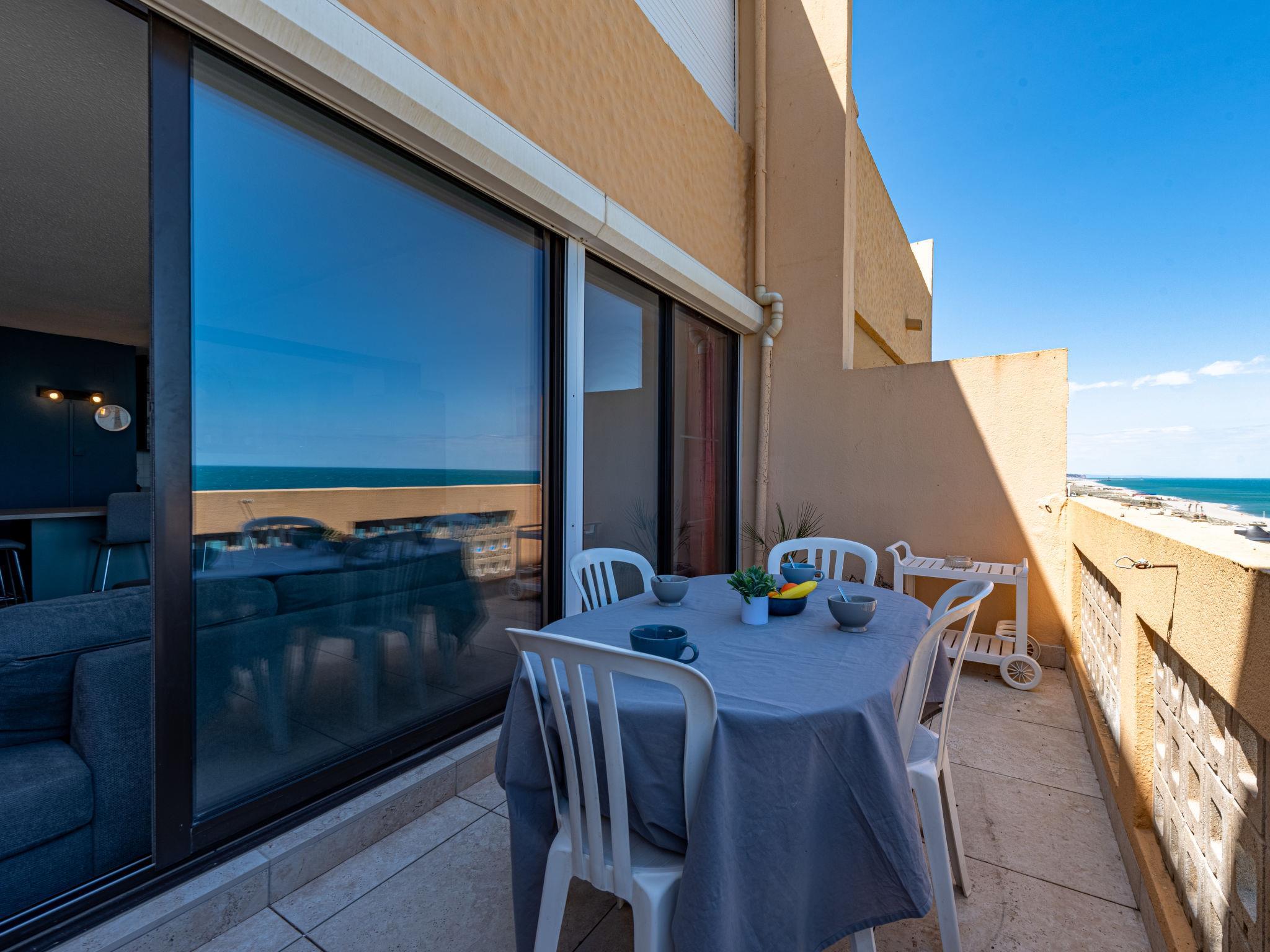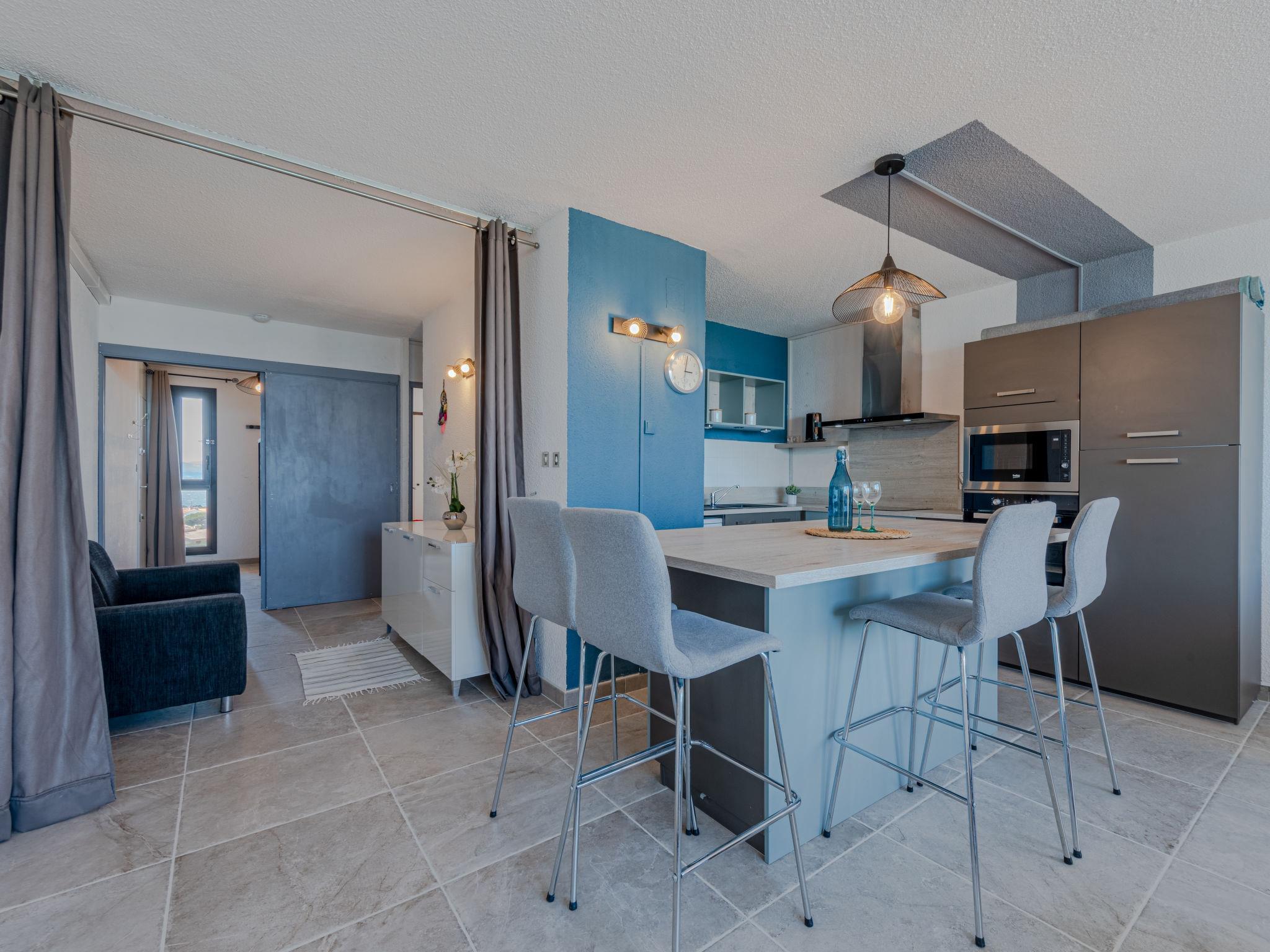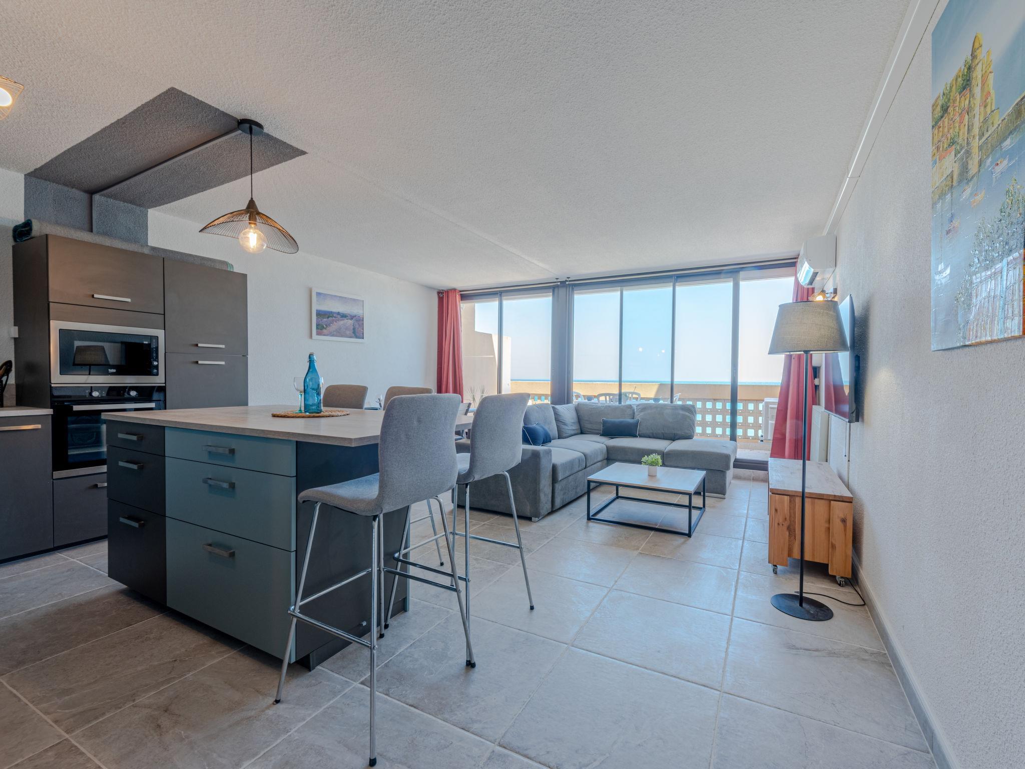 As part of the water restriction measures linked to drought in some of our departments, please note that the rental swimming pool may be closed by prefectural decree. Residence "Les Argonautes", 7 storeys. In the district of La Grande Plage, 50 m from the sea, 2.5 km from the lake, 50 m from the beach, direct access to the beach. For shared use: swimming pool angular (25 x 11 m, depth 150 - 220 cm, seasonal availability: 01.Jun. - 30.Sep.). In the complex: lift. Parking. Shop, grocery 80 m, supermarket 5 km, shopping centre, restaurant, bar, bakery, café 80 m, pedestrian zone 50 m, bicycle rental 80 m, bus stop "Lydia" 100 m, railway station "Perpignan" 22 km, sandy beach 50 m, diving center 5 km, outdoor swimming pool 7 km, nudist beach 10 km. Sports harbour 7 km, surf school 2 km, sailing school 3 km, tennis 3 km, indoor tennis centre 3 km, minigolf 2.5 km, riding stable 12 km. Nearby attractions: Aqualand Port Leucate 5 km, Réserve Africaine de Sigean 41 km, Parcours Aventure 5 km, cinéma 1.4 km, Téleski nautique site des dosses 5 km, Spot de windsurf 4 km. Well-known lakes can easily be reached: Etang de Leucate ou Salses 3 km, Lac de Villeneuve de La Raho 34 km. Hiking paths: Sentier du guetteur 8 km, La forteresse de salses 15 km, Sentier du littoral Collioure 40 km. Please note: entertainment in the season.