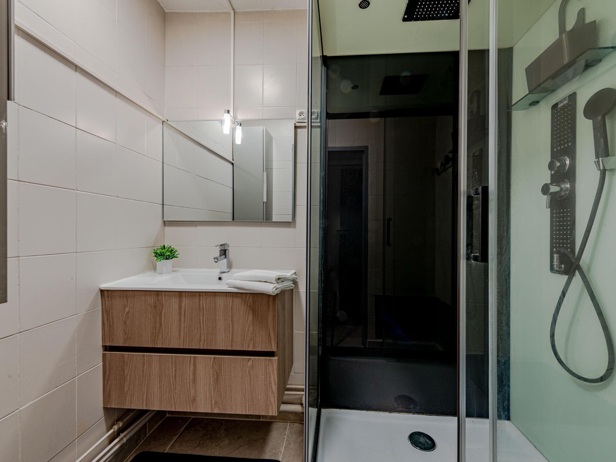 2-room apartment 57 m2 on 7th floor. Bright: living/dining room with TV (flat screen). Exit to the terrace. Interconnecting room with 1 x 2 bunk beds (90 cm, length 190 cm), TV. 1 room with 1 double bed (1 x 160 cm, length 200 cm). Open kitchen (dishwasher, 3 ceramic glass hob hotplates, toaster, kettle, microwave, electric coffee machine). Shower, sep. WC. Electric heating, air-conditioning. Terrace 10 m2, east facing position. Terrace furniture. Marvellous view of the sea. Facilities: washing machine, iron. Internet (WiFi). Parking. Please note: smoke alarm. Offer by a private individual according to Art. 155, IV of CGI.